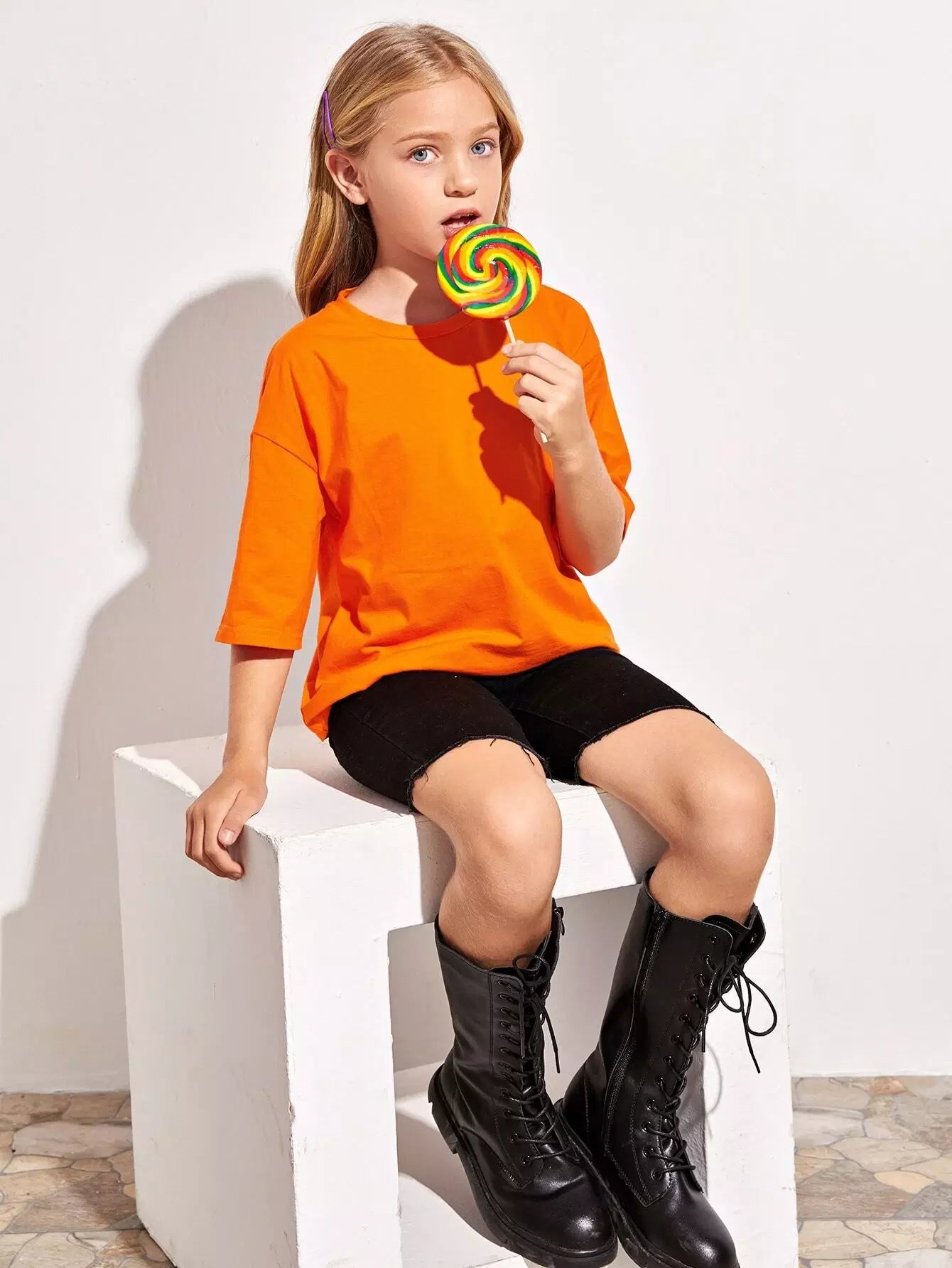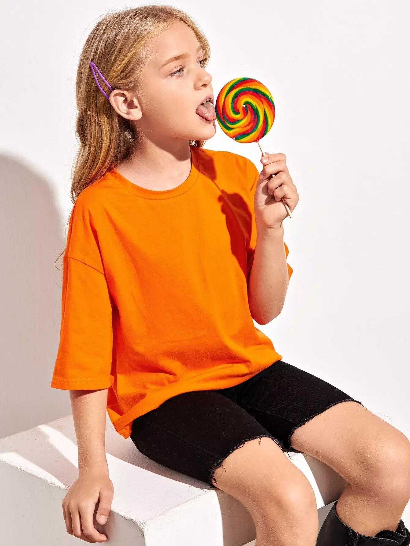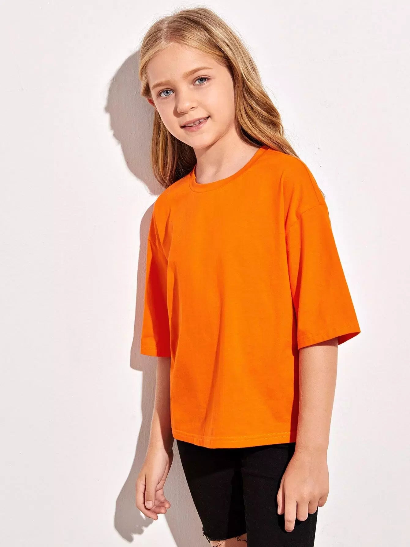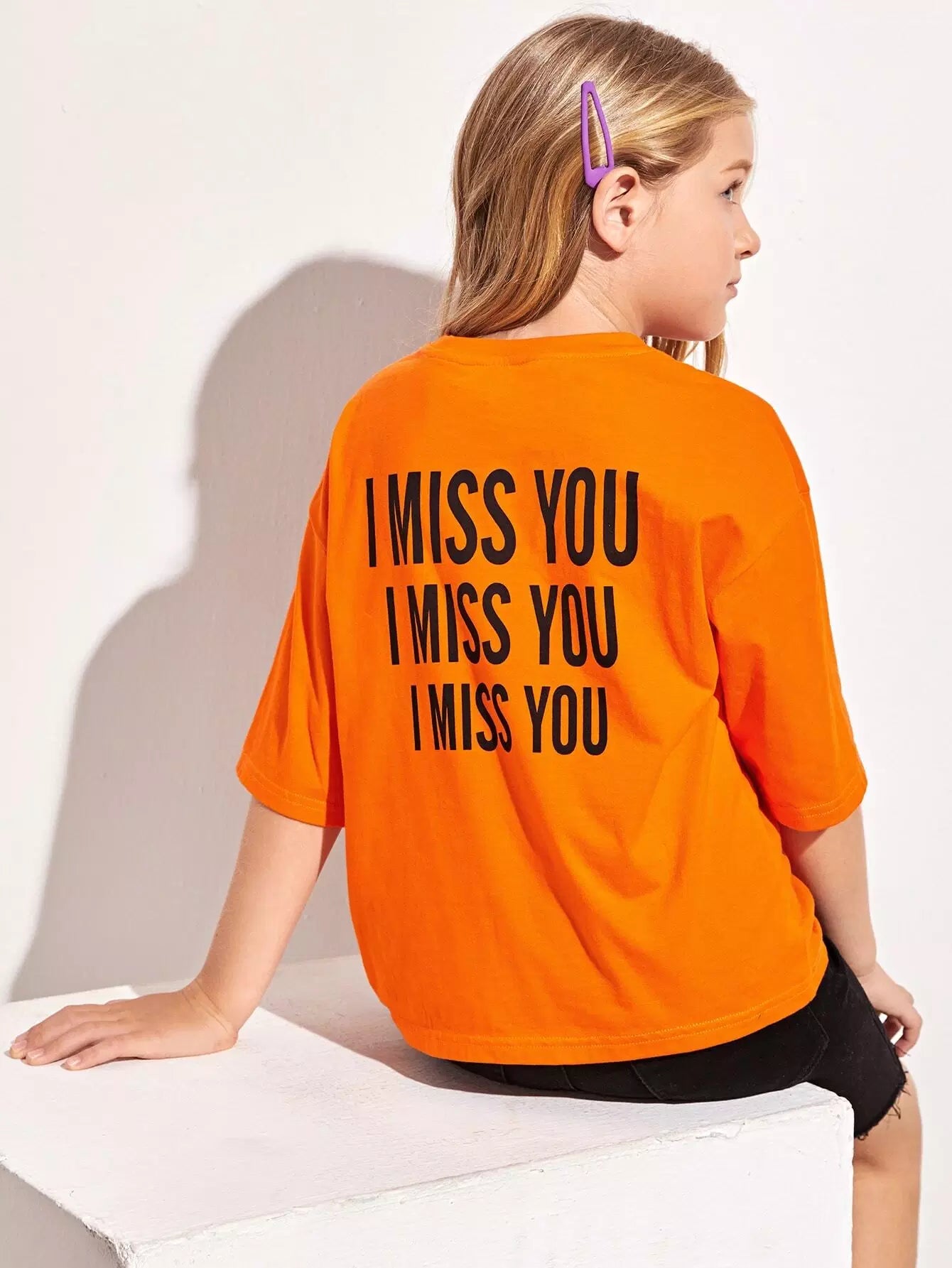 تي شيرت بناتي برسومات شعار منسدلة على الكتف