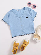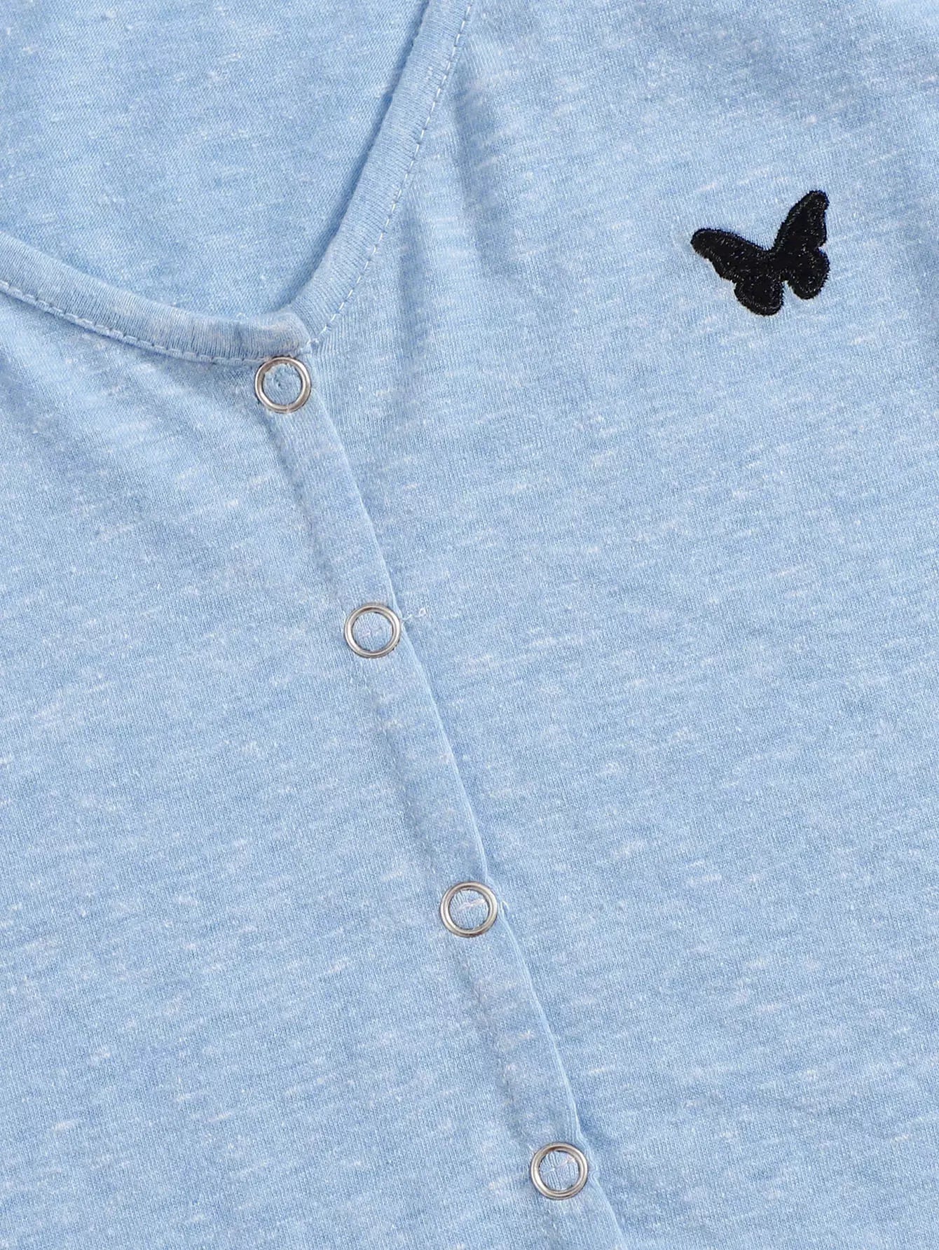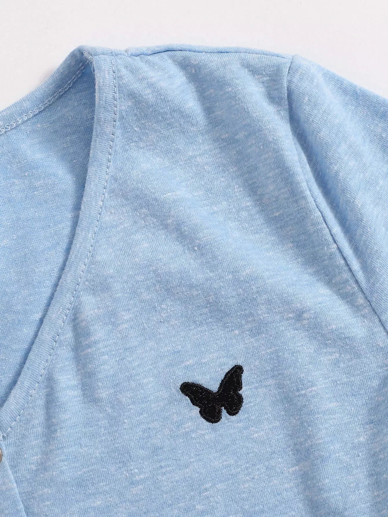 بلوزة بناتية بأزرار كبس وتطريز على شكل فراشة