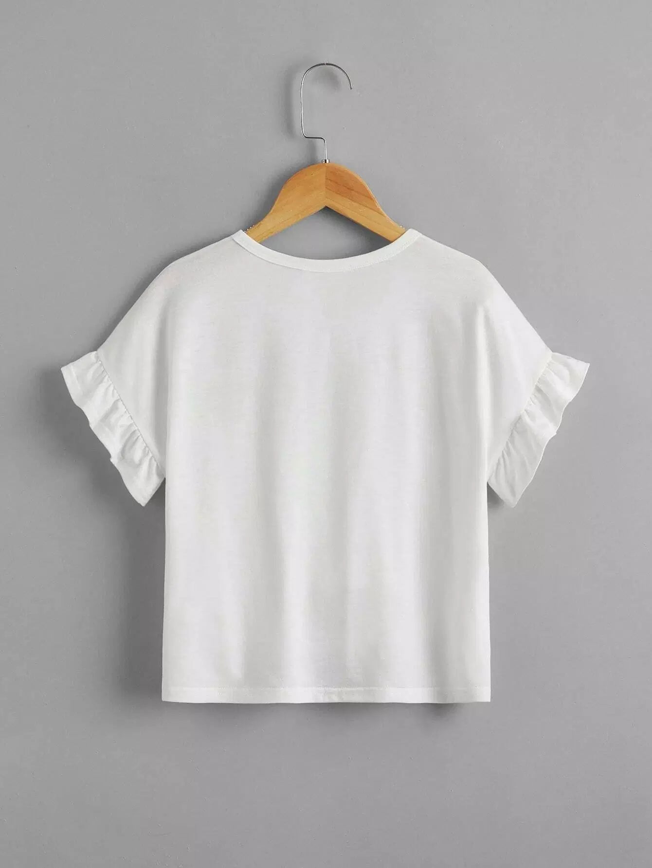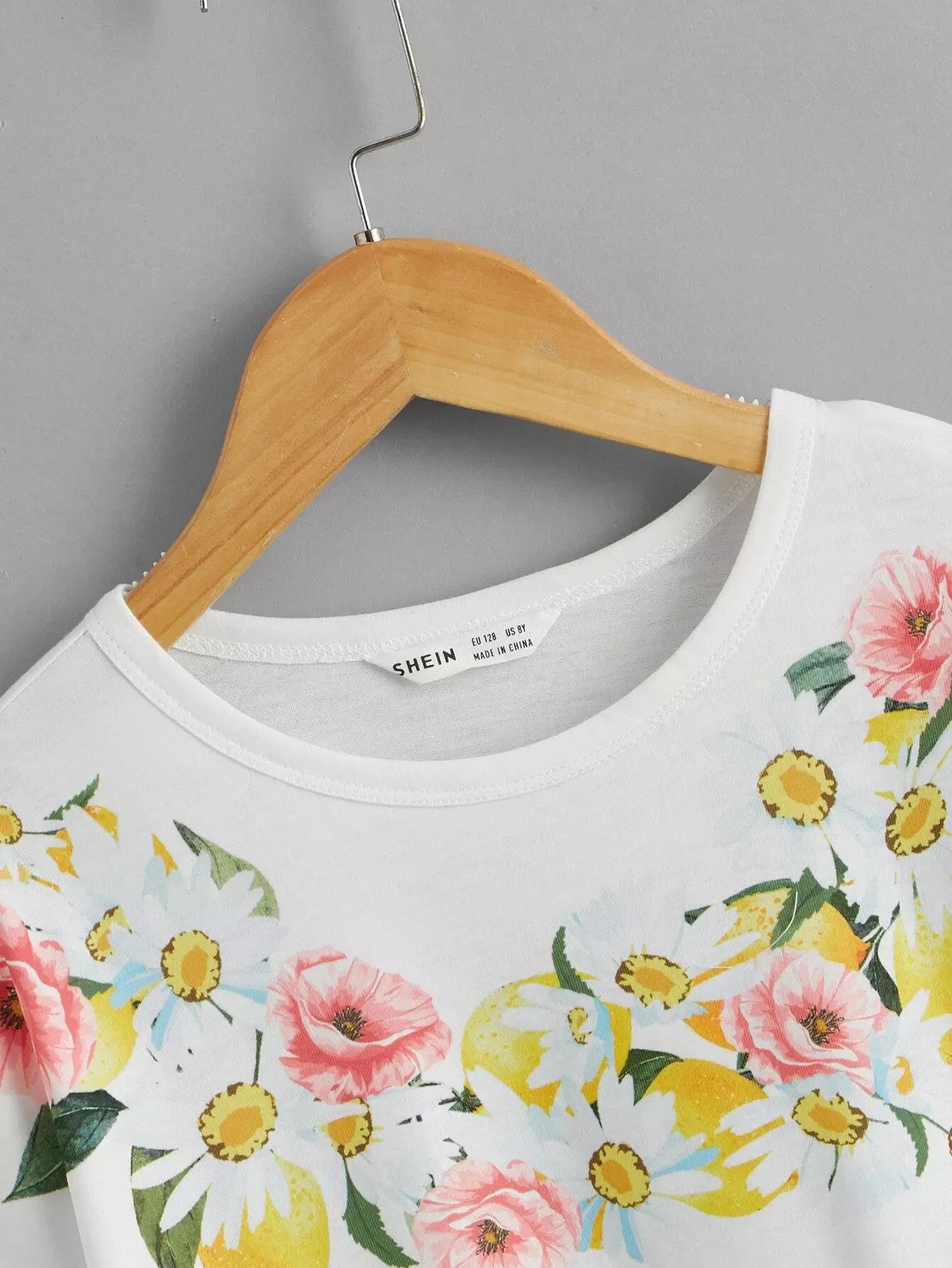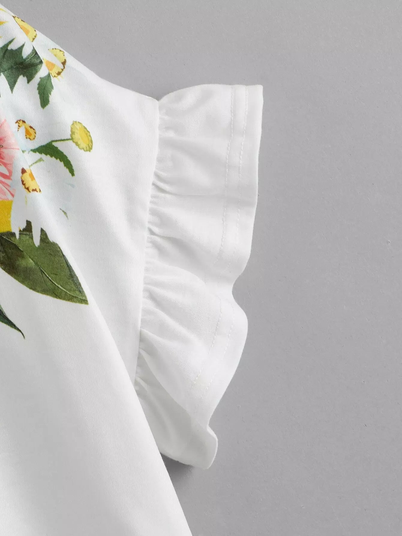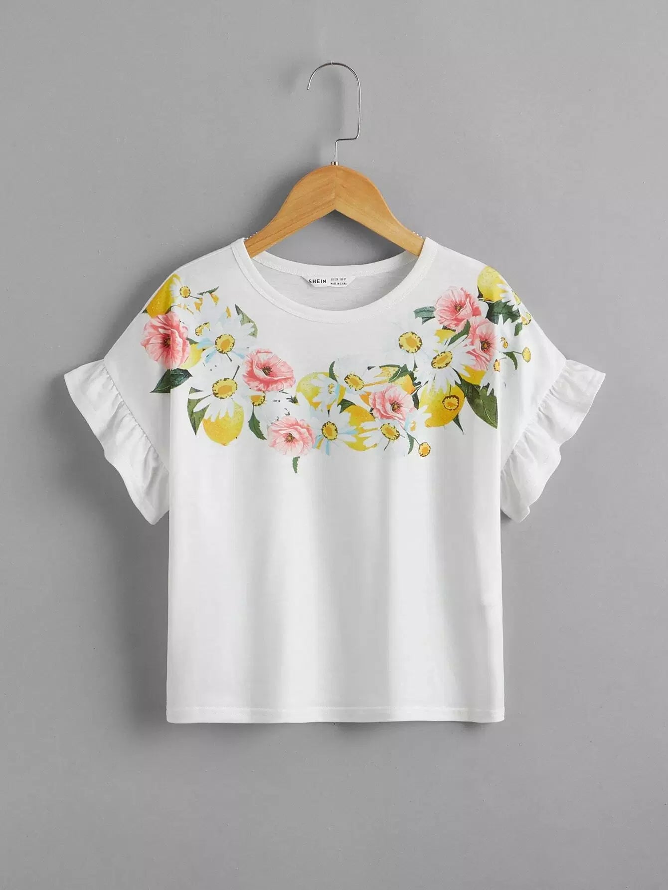 بلوزة بناتية بطبعة زهور مع كشكشة
