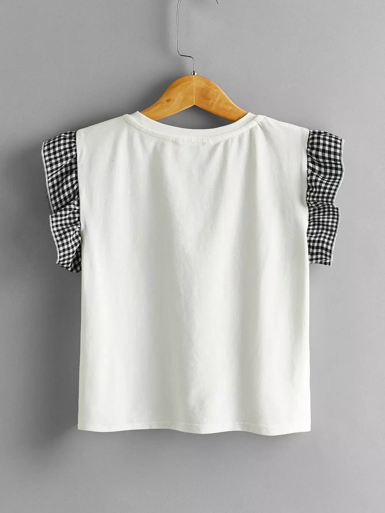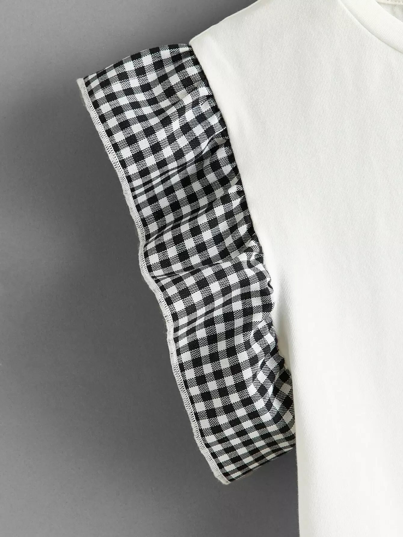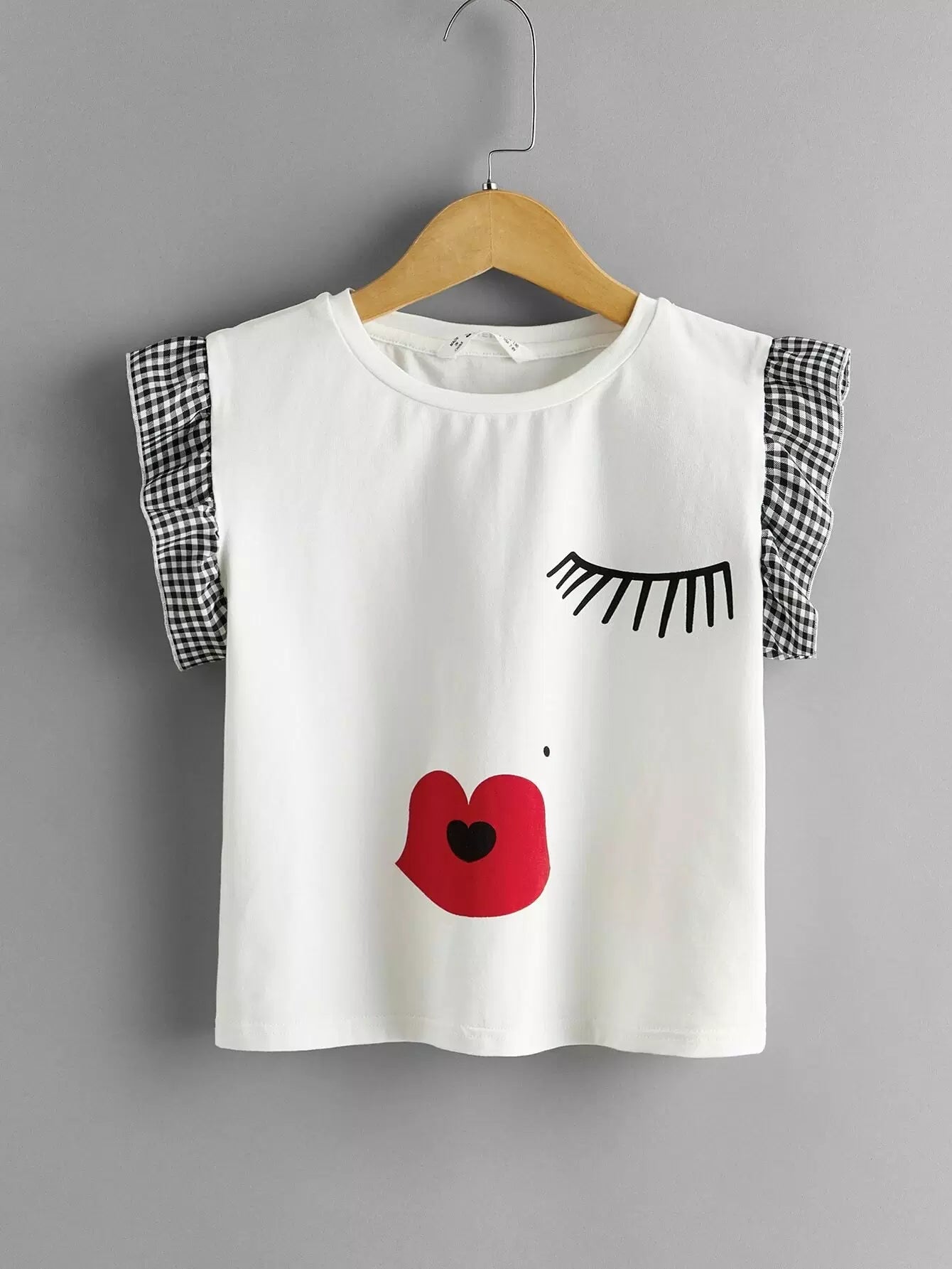 بلوزة بناتية برسومات مربعات مزينة بكشكشة