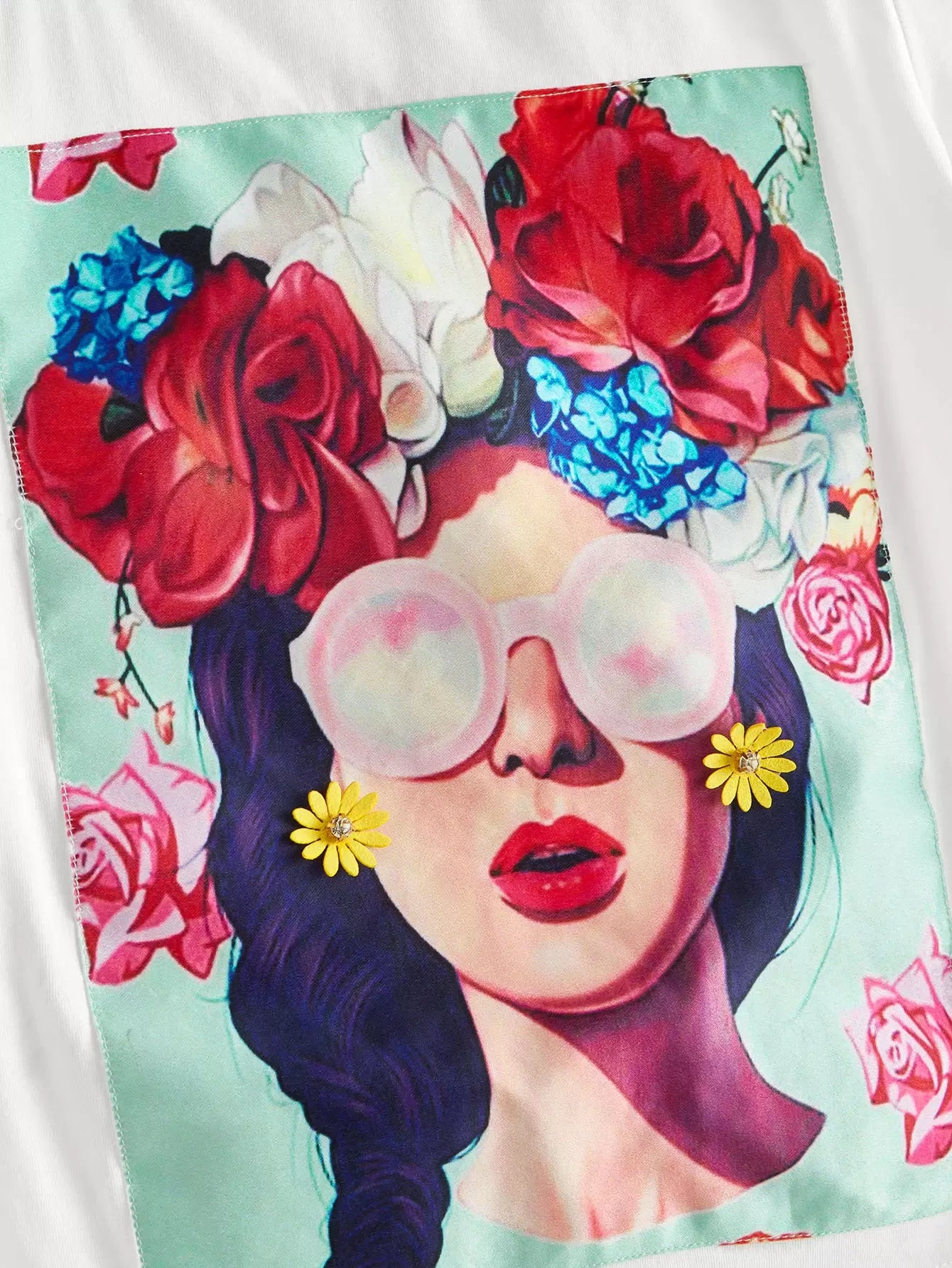 بلوزة رسومية بأشرطة شريطية للفتيات