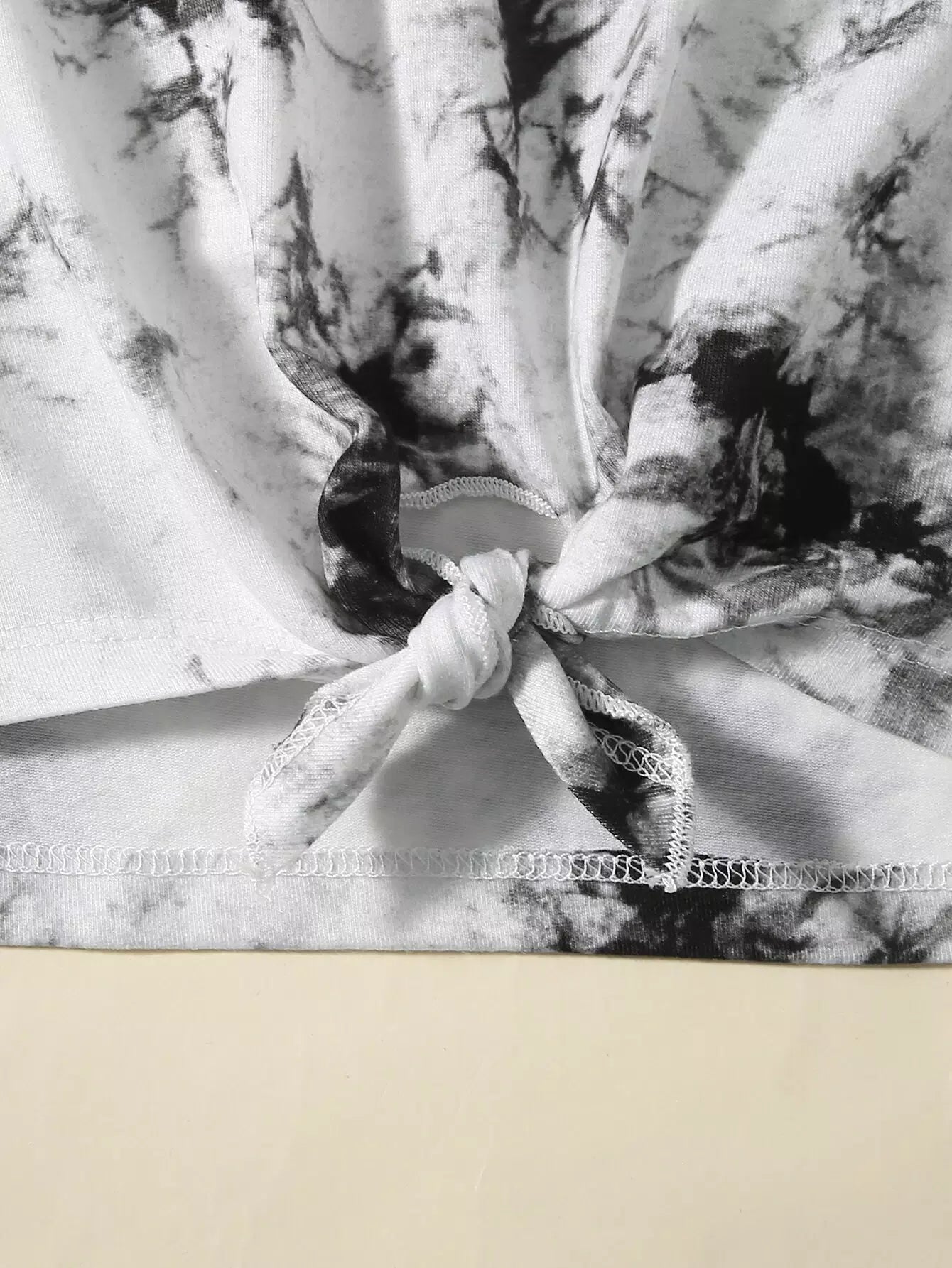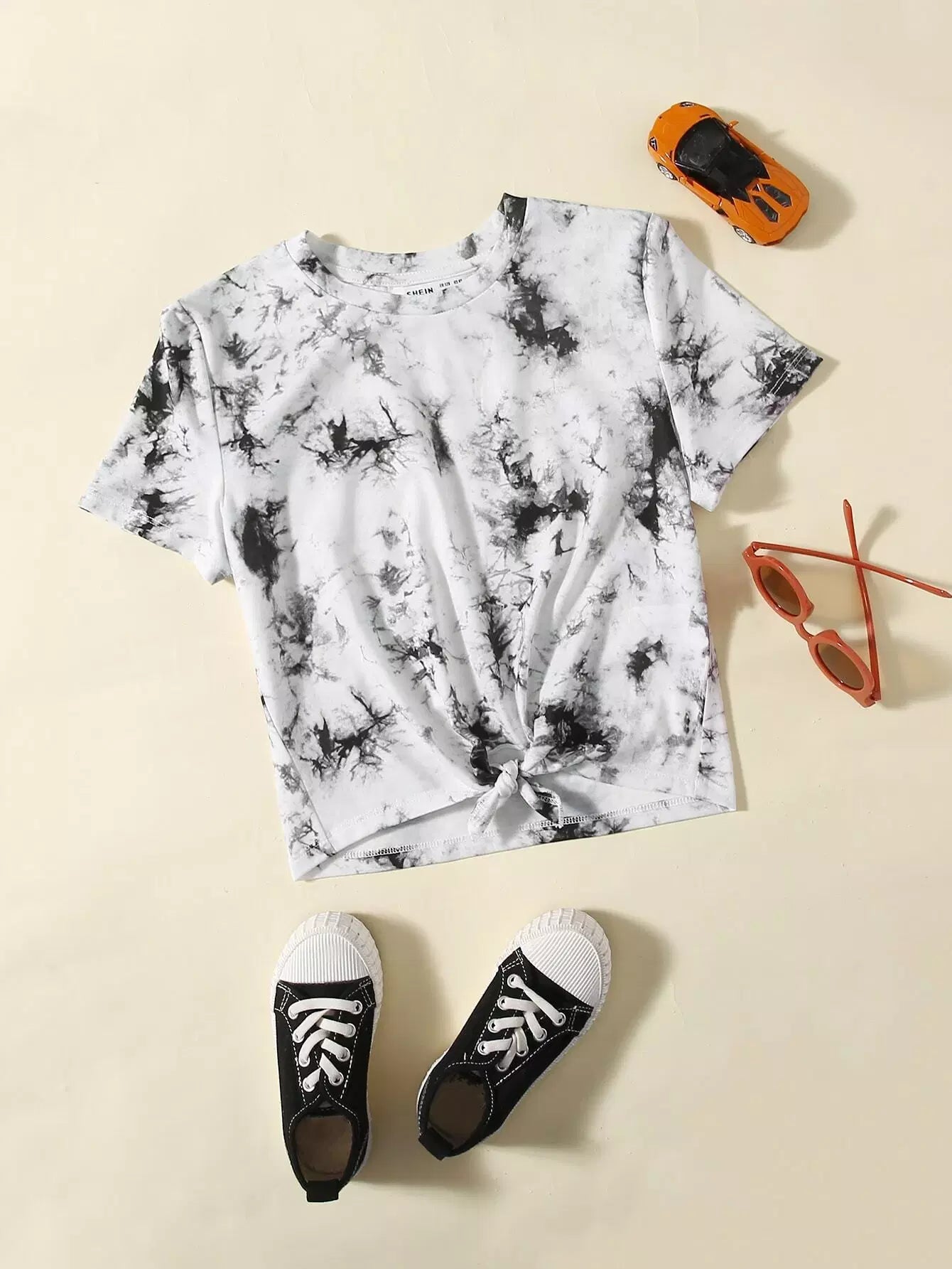 تي شيرت بناتي بعقدة أمامية مصبوغة بالربطة