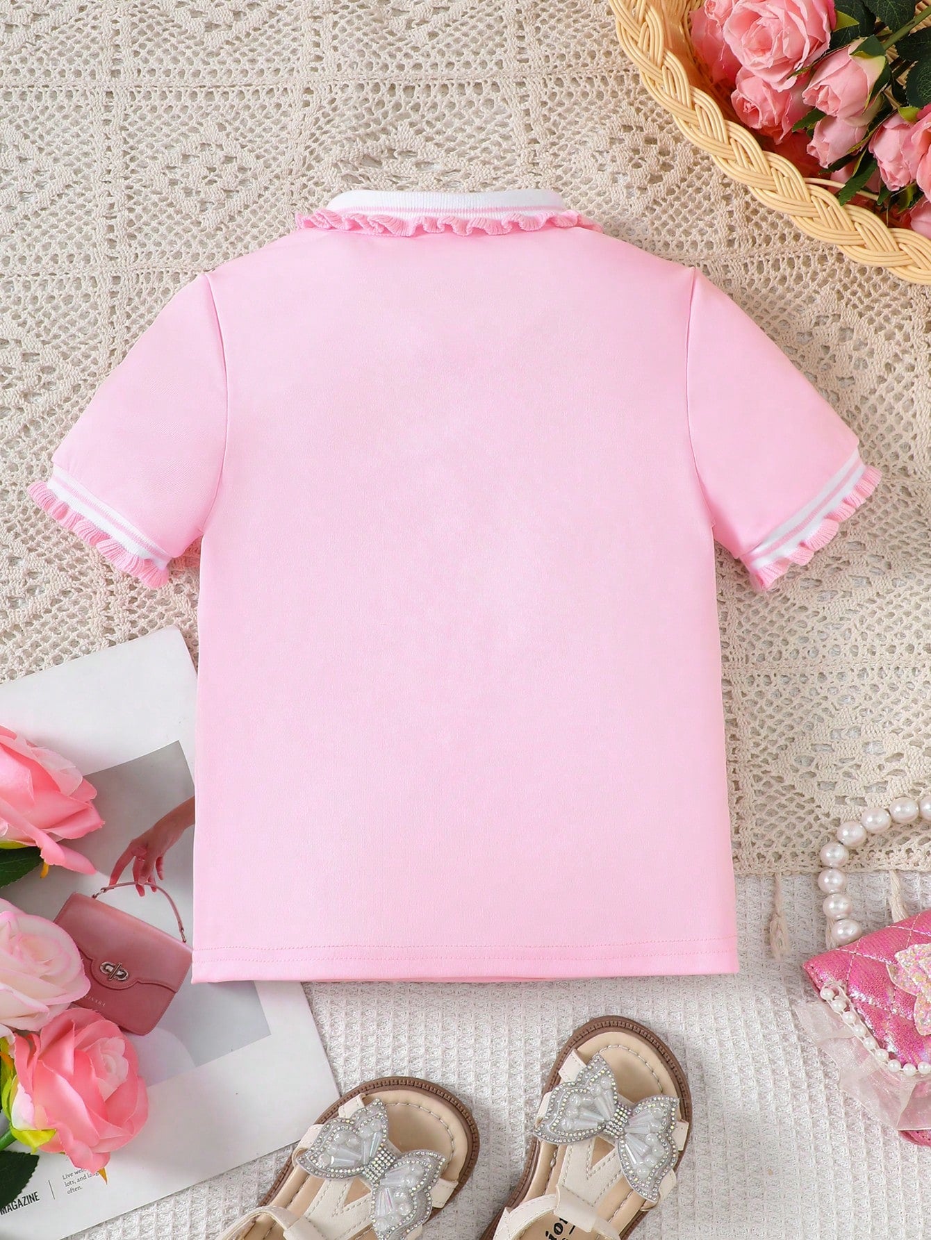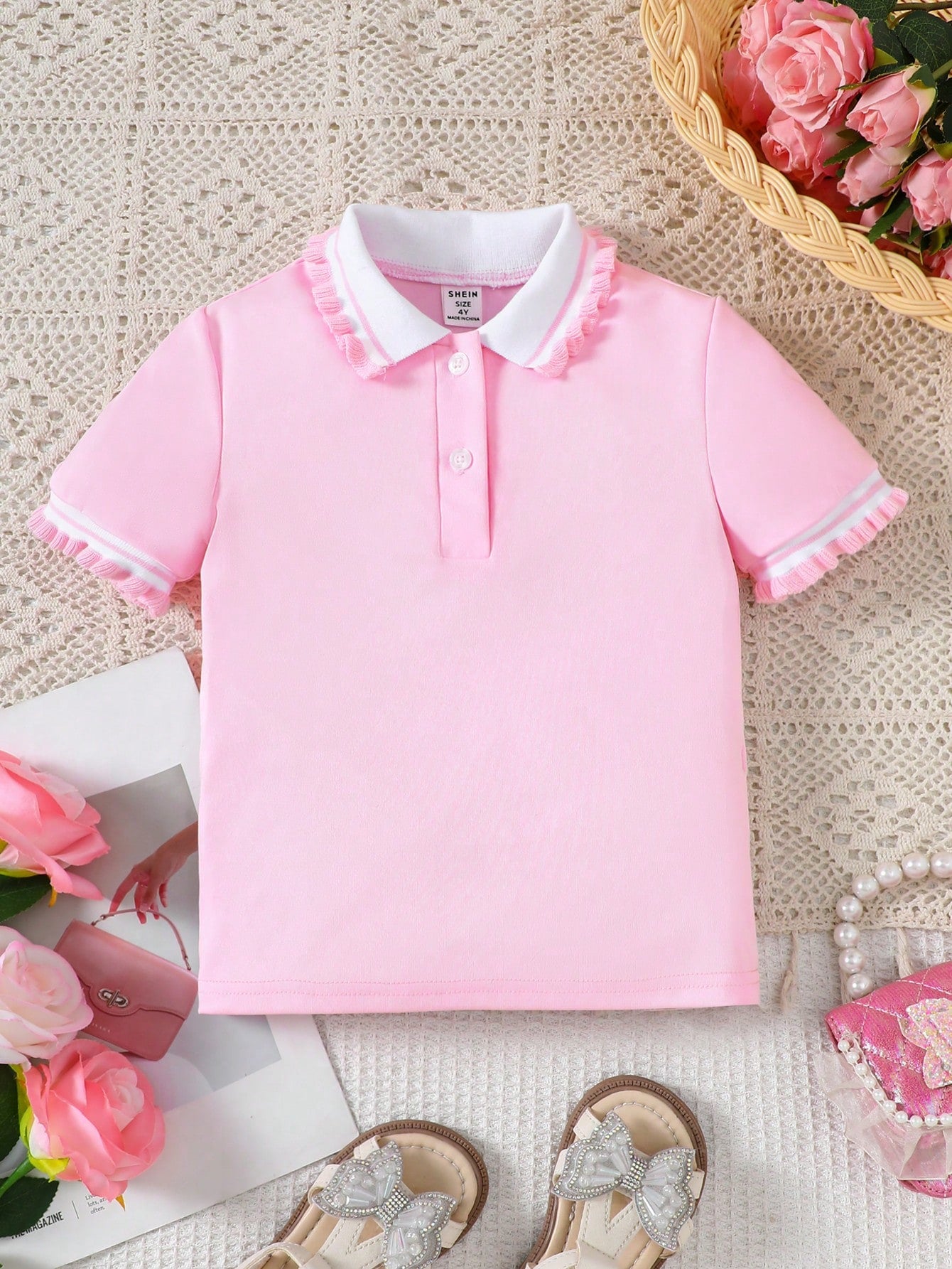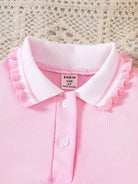 Young Girl' Ruffle Trim Polo Collar T-Shirt, Suitable For Summer