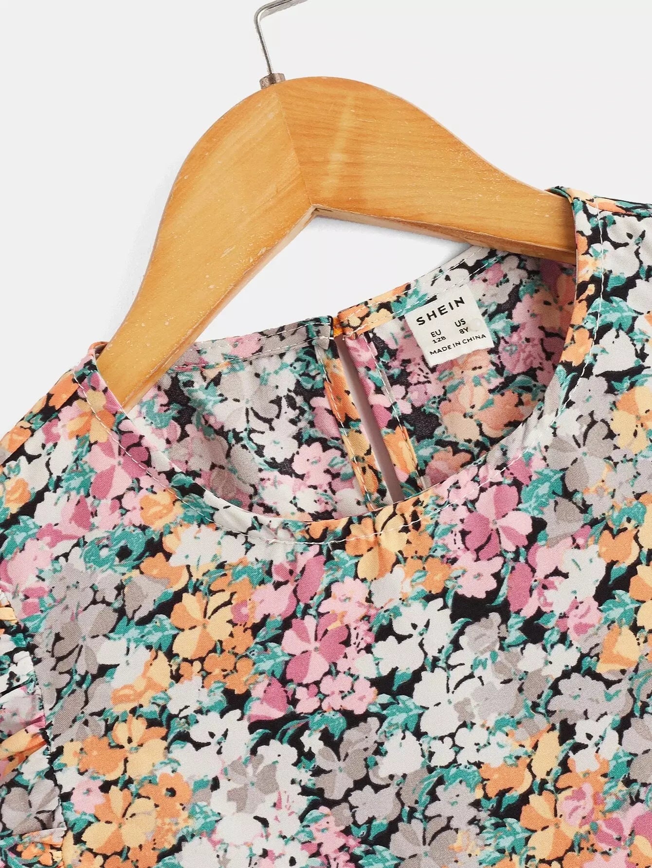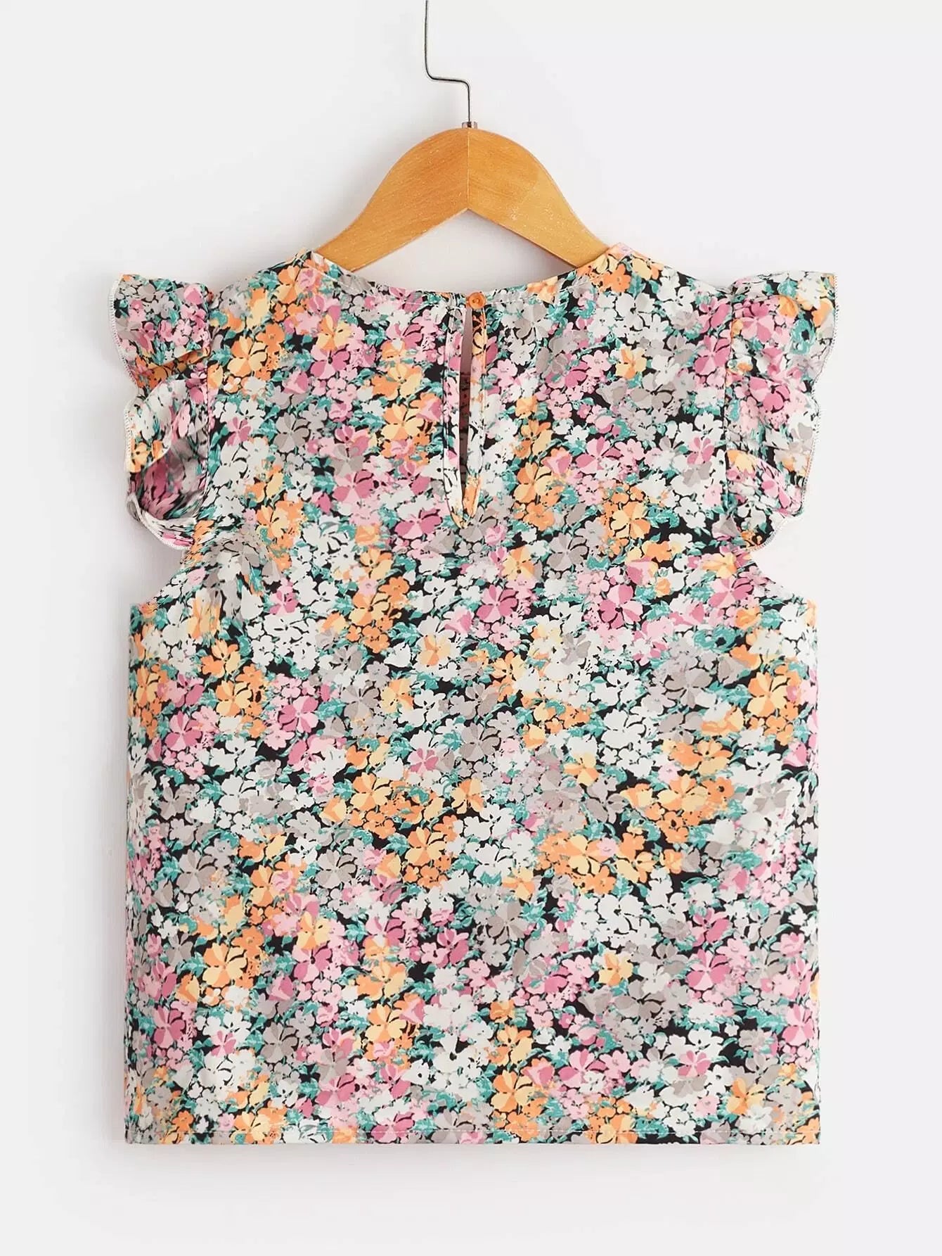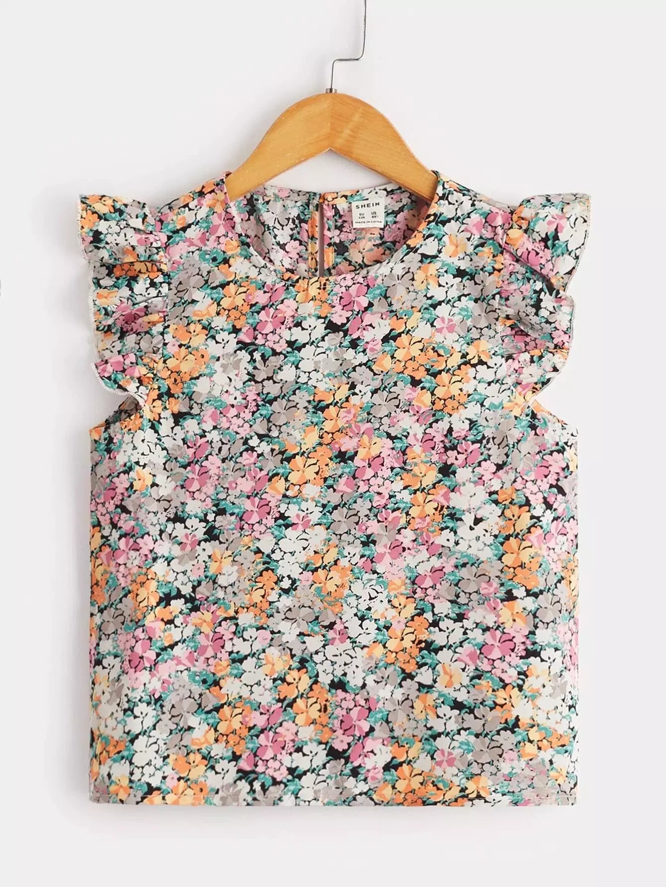 بلوزة بأكمام على شكل فراشة للبنات بأزهار بأكمام على شكل فراشة