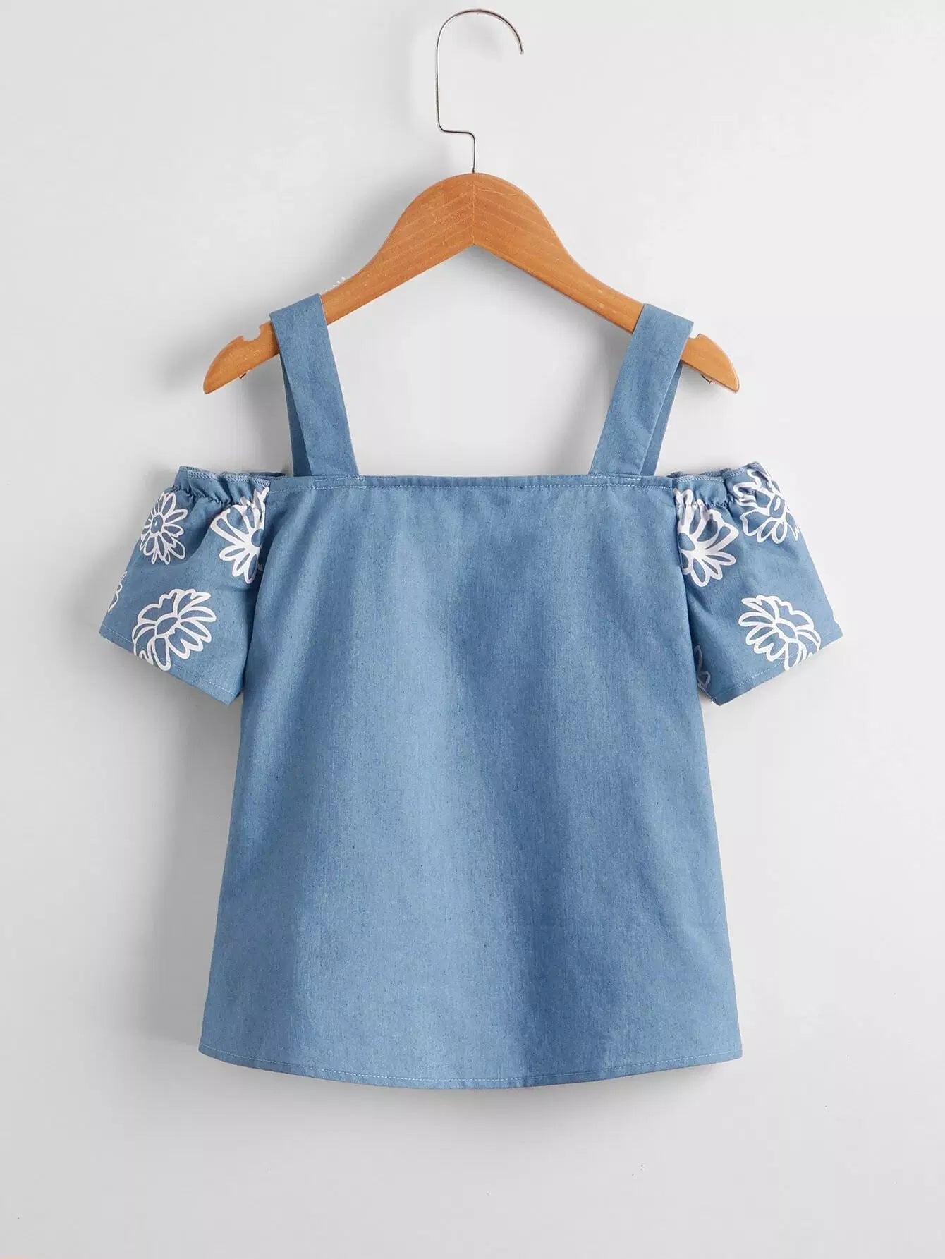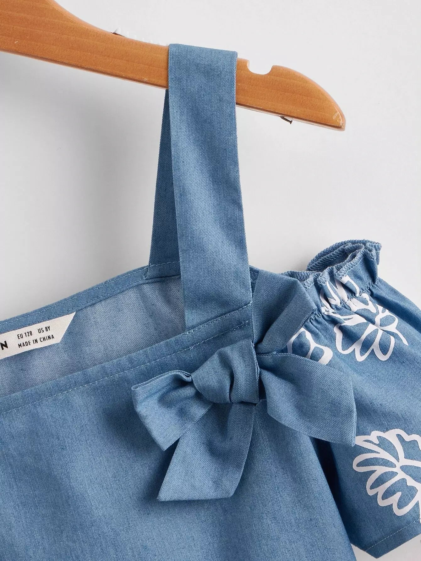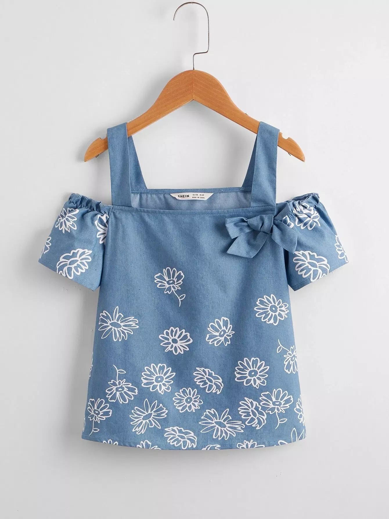 بلوزة بناتية مكشوفة الكتفين بفيونكة أمامية