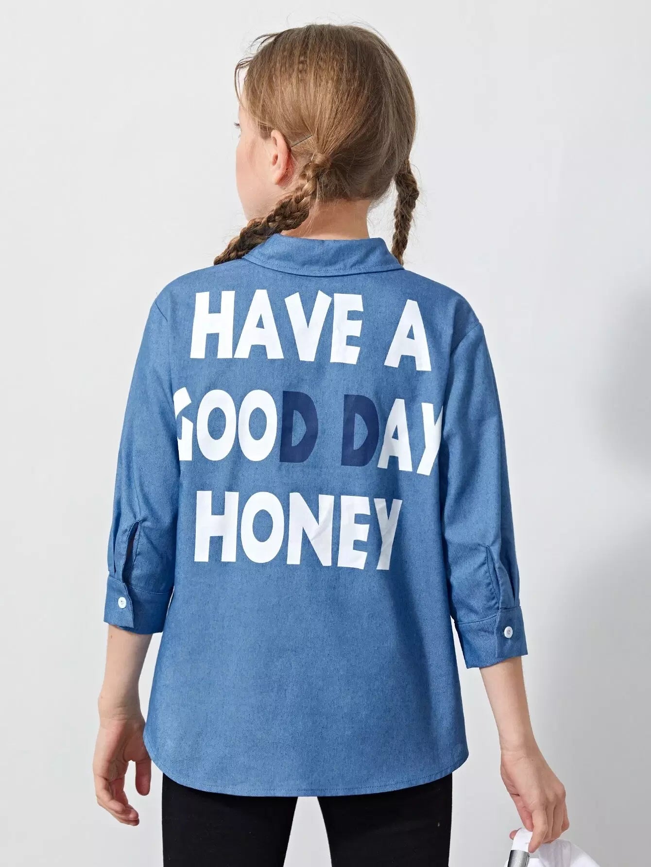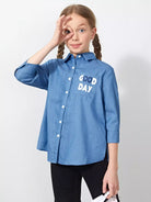 بلوزة جرافيكية بشعارات ذات ياقة للفتيات