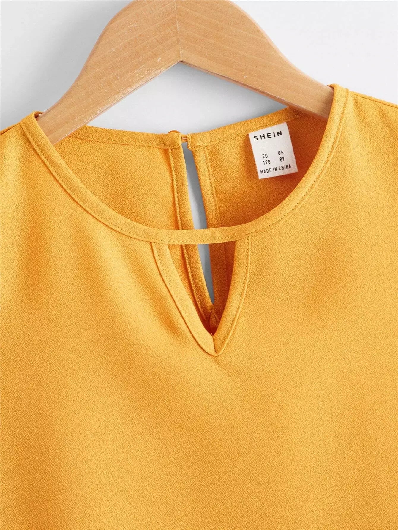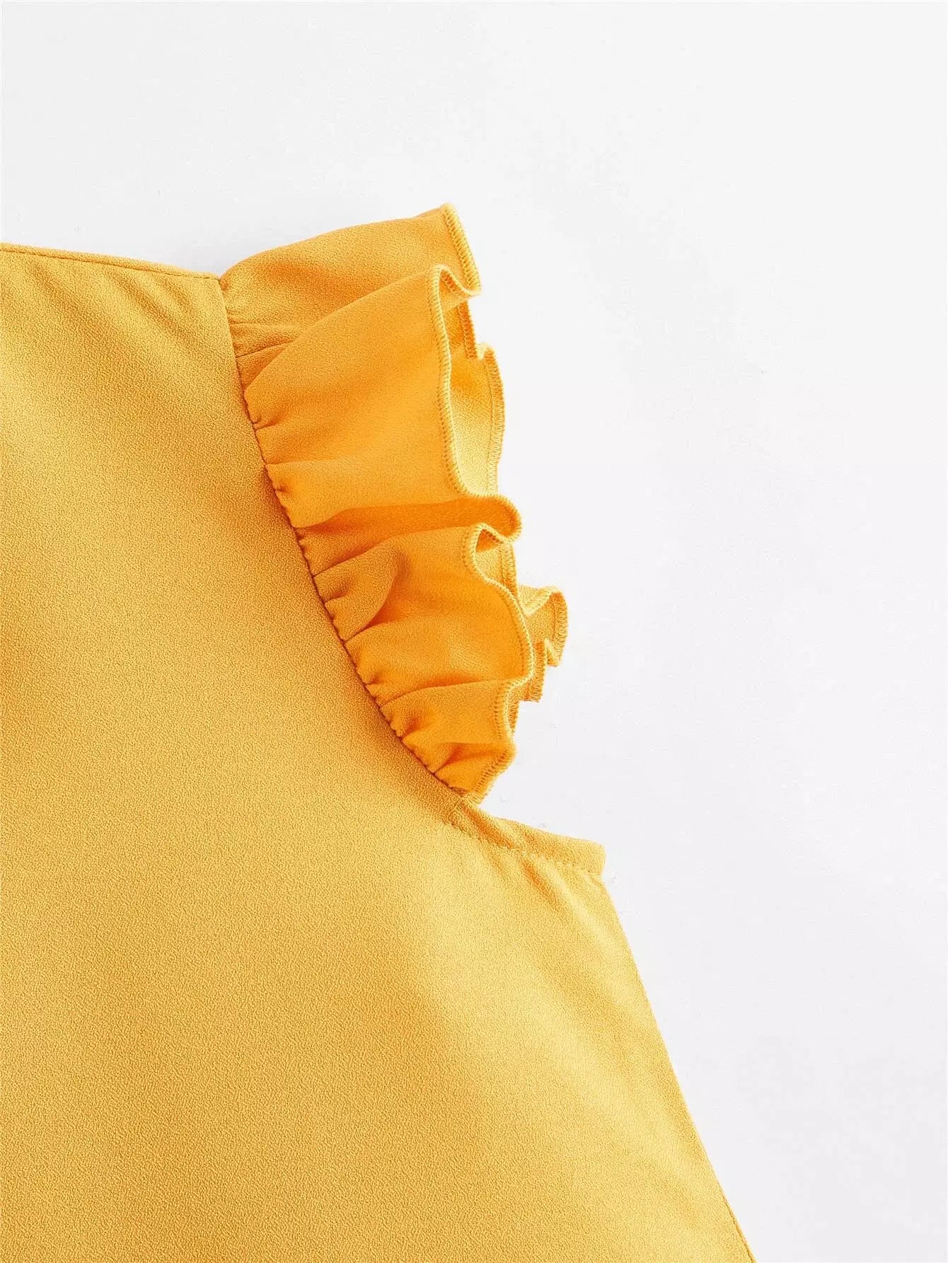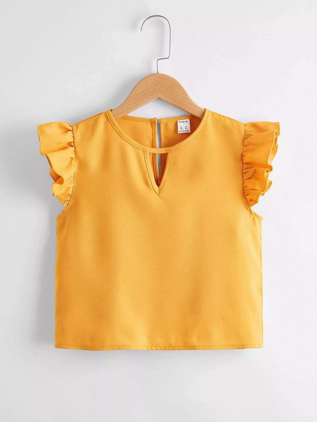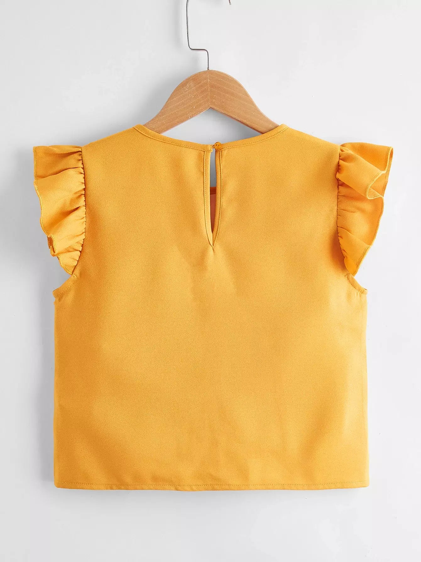 بلوزة بأكمام كشكش بفتحة عنق على شكل فتحة مفتاح للبنات
