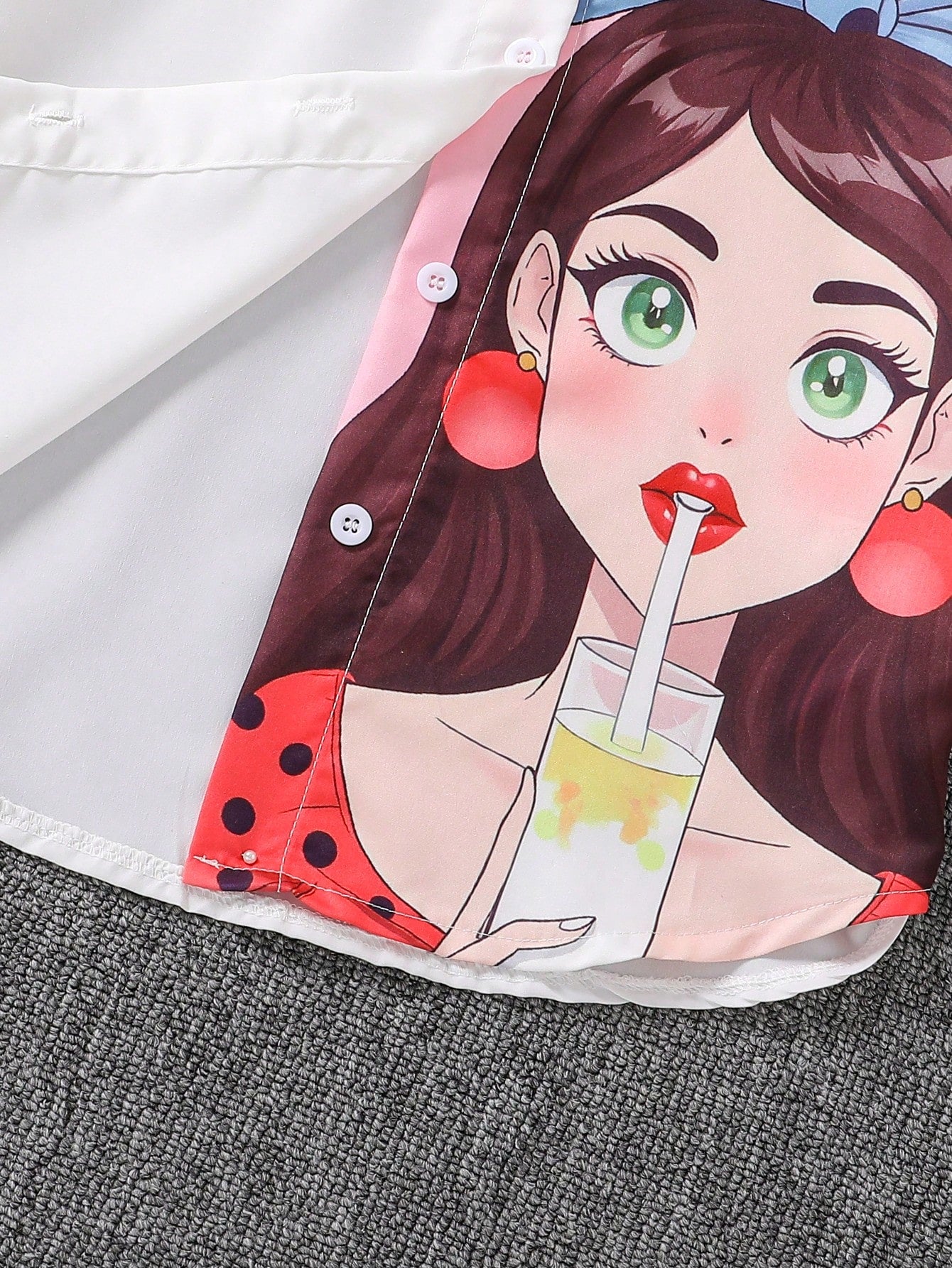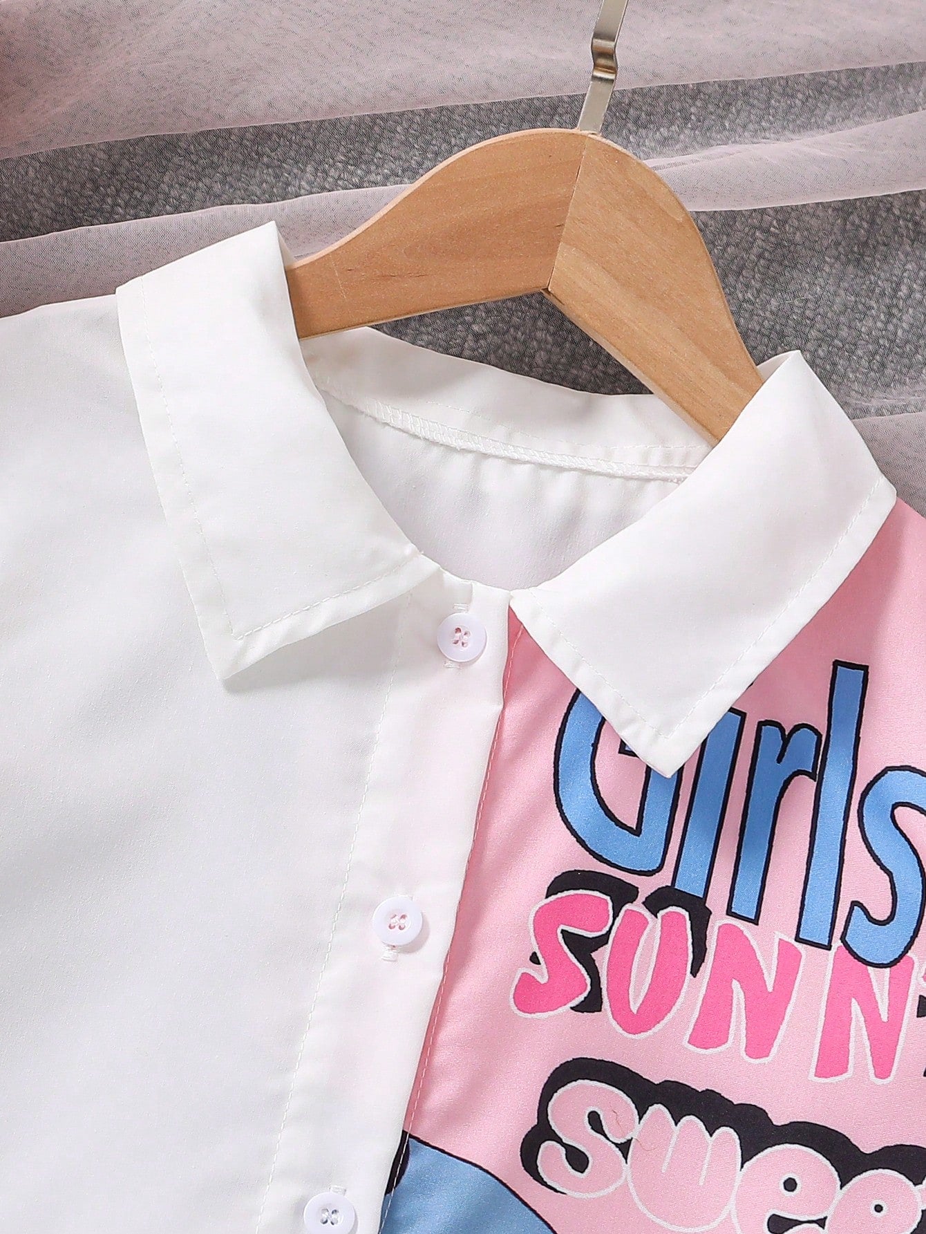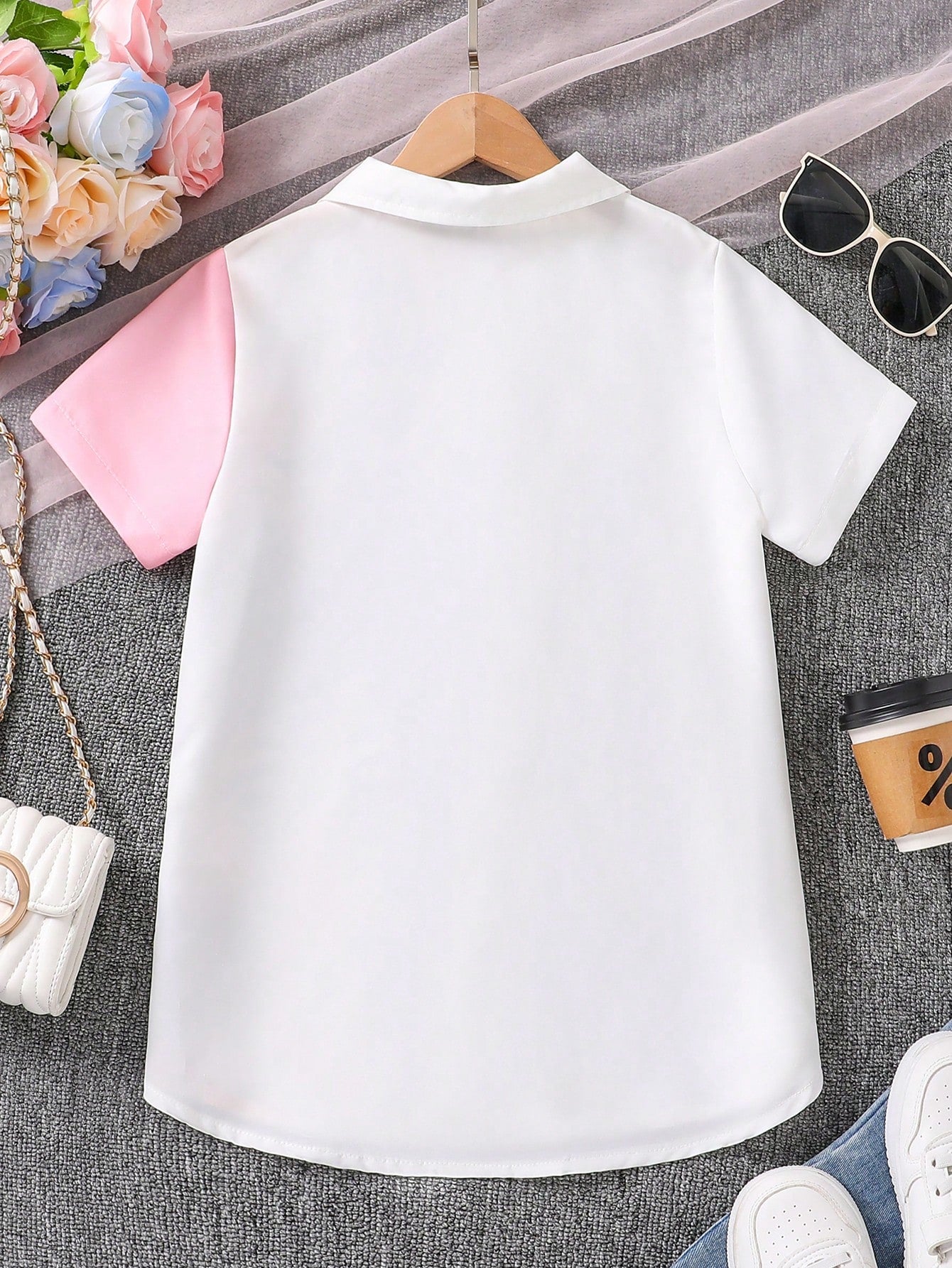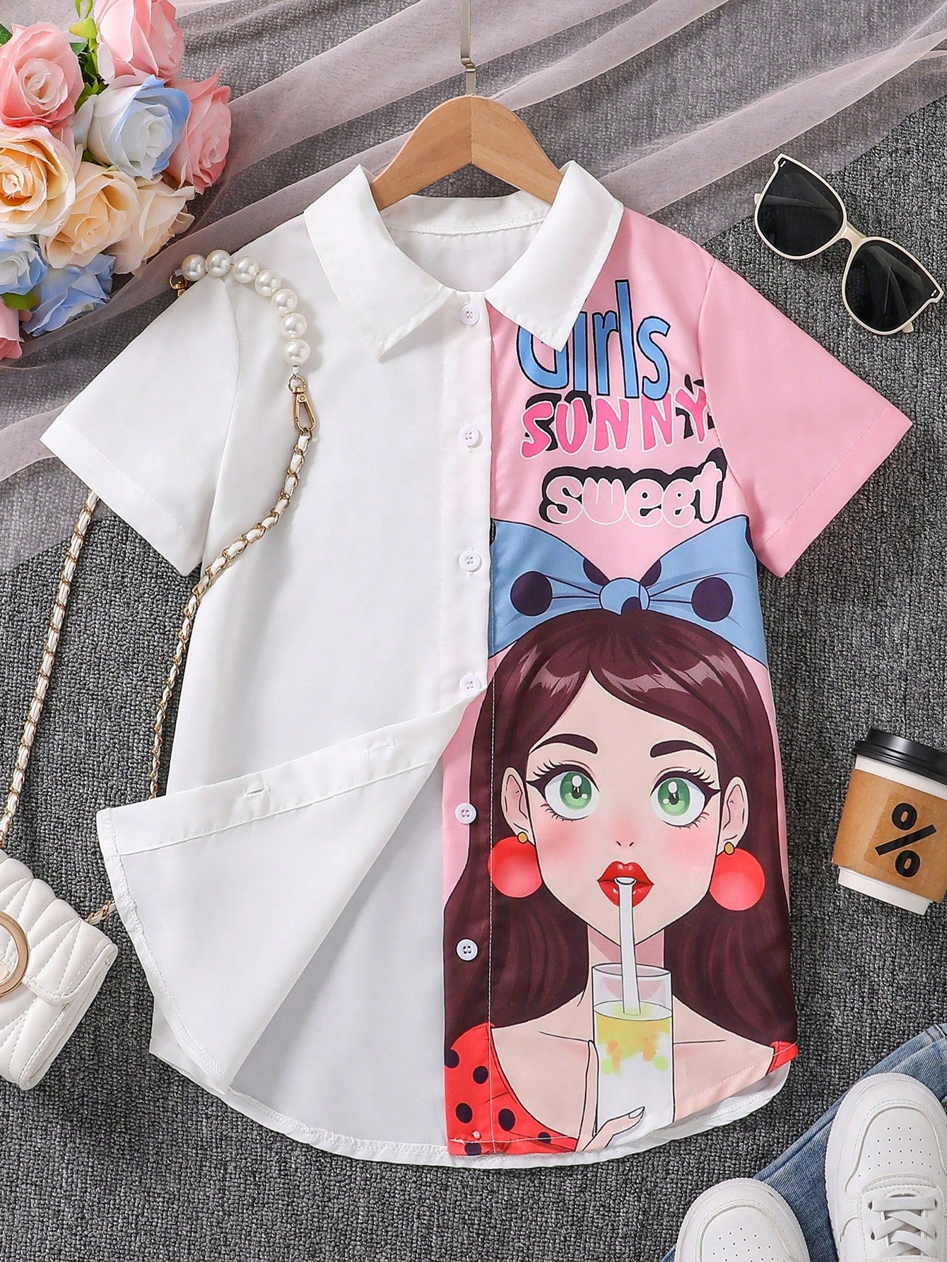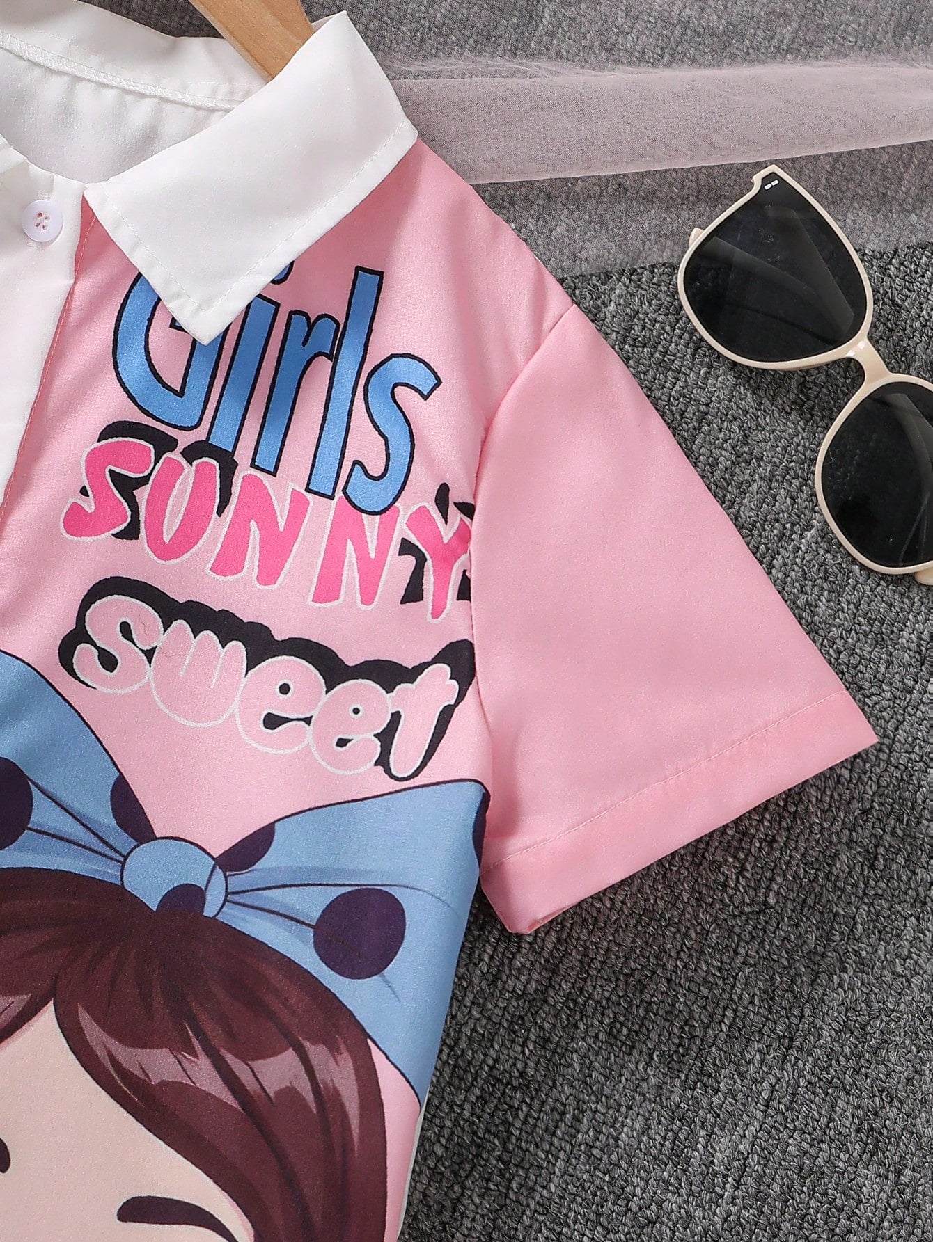 kids SHEIN Tween Girl Full-Print Casual Short Sleeve Shirt
