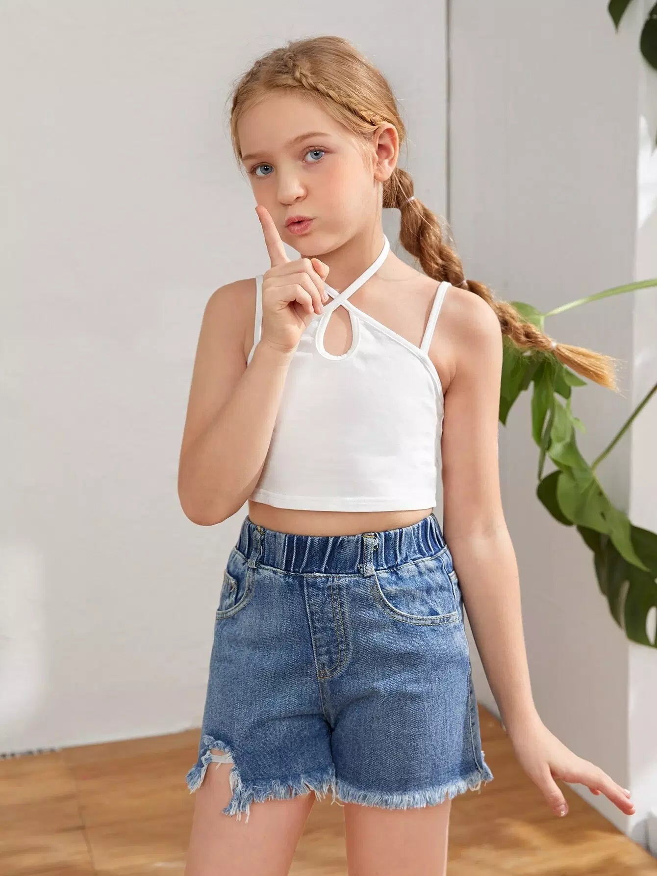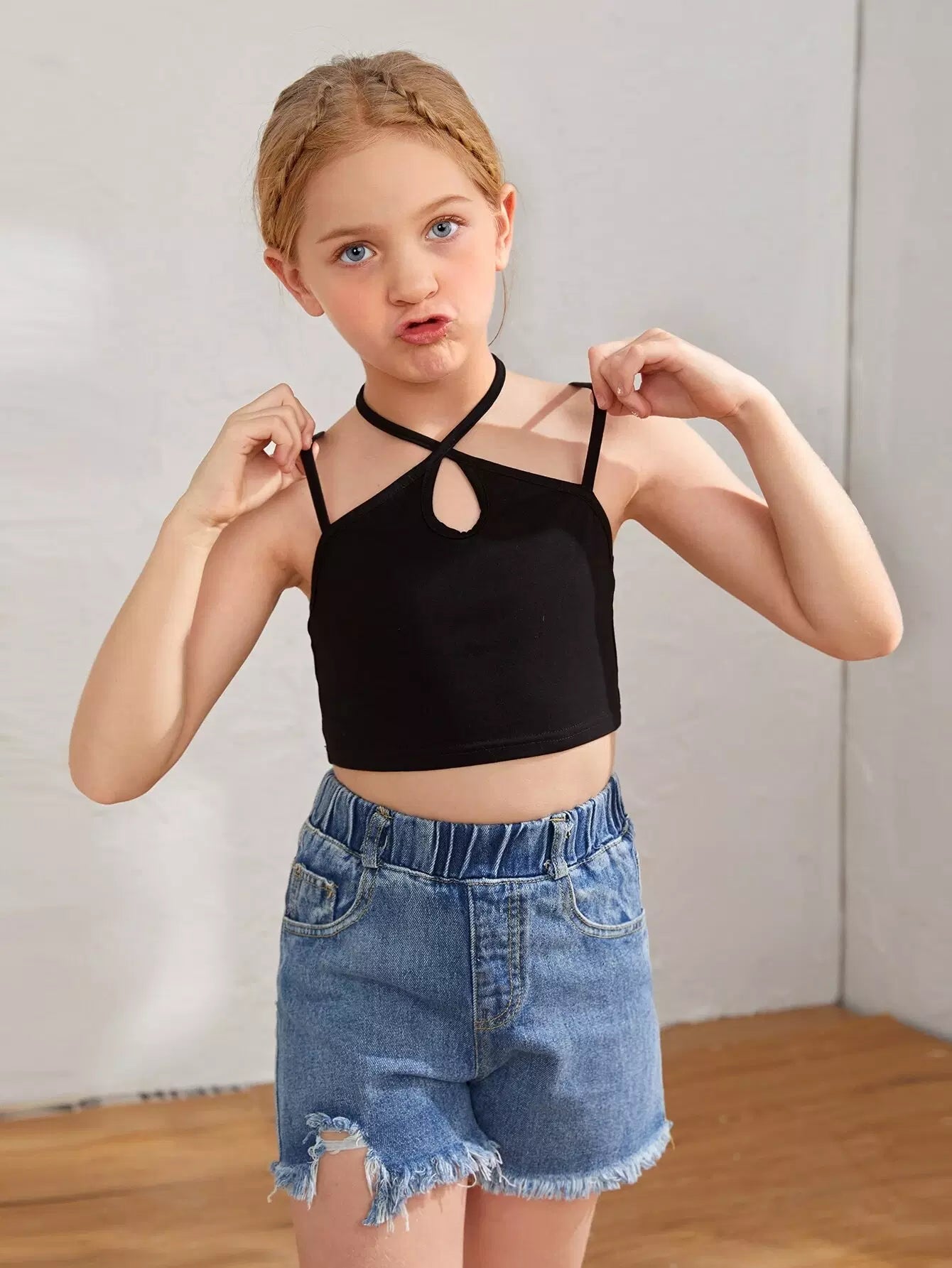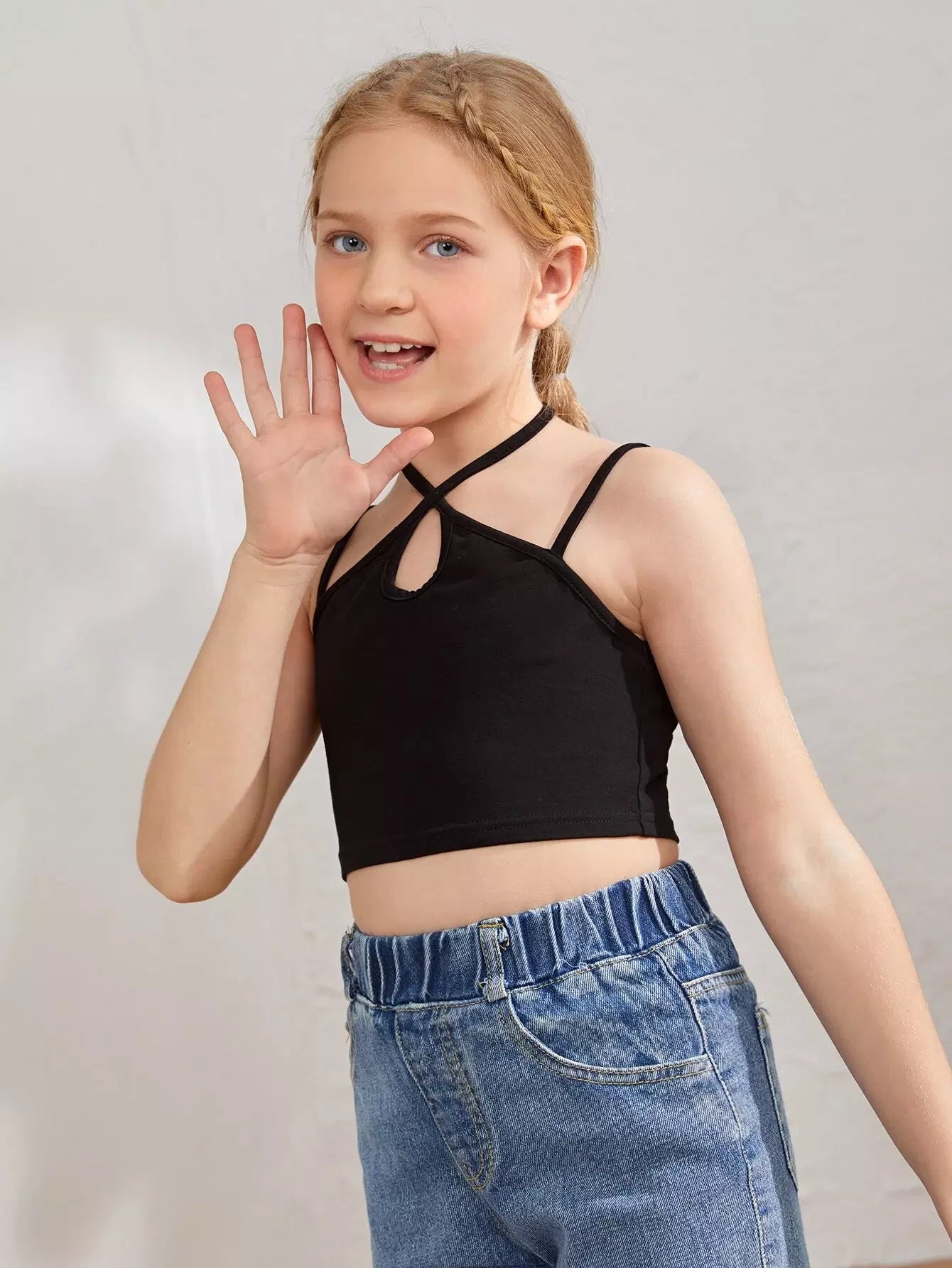 مجموعة من قطعتين من قميص كامي بفتحة عنق متقاطعة للفتيات