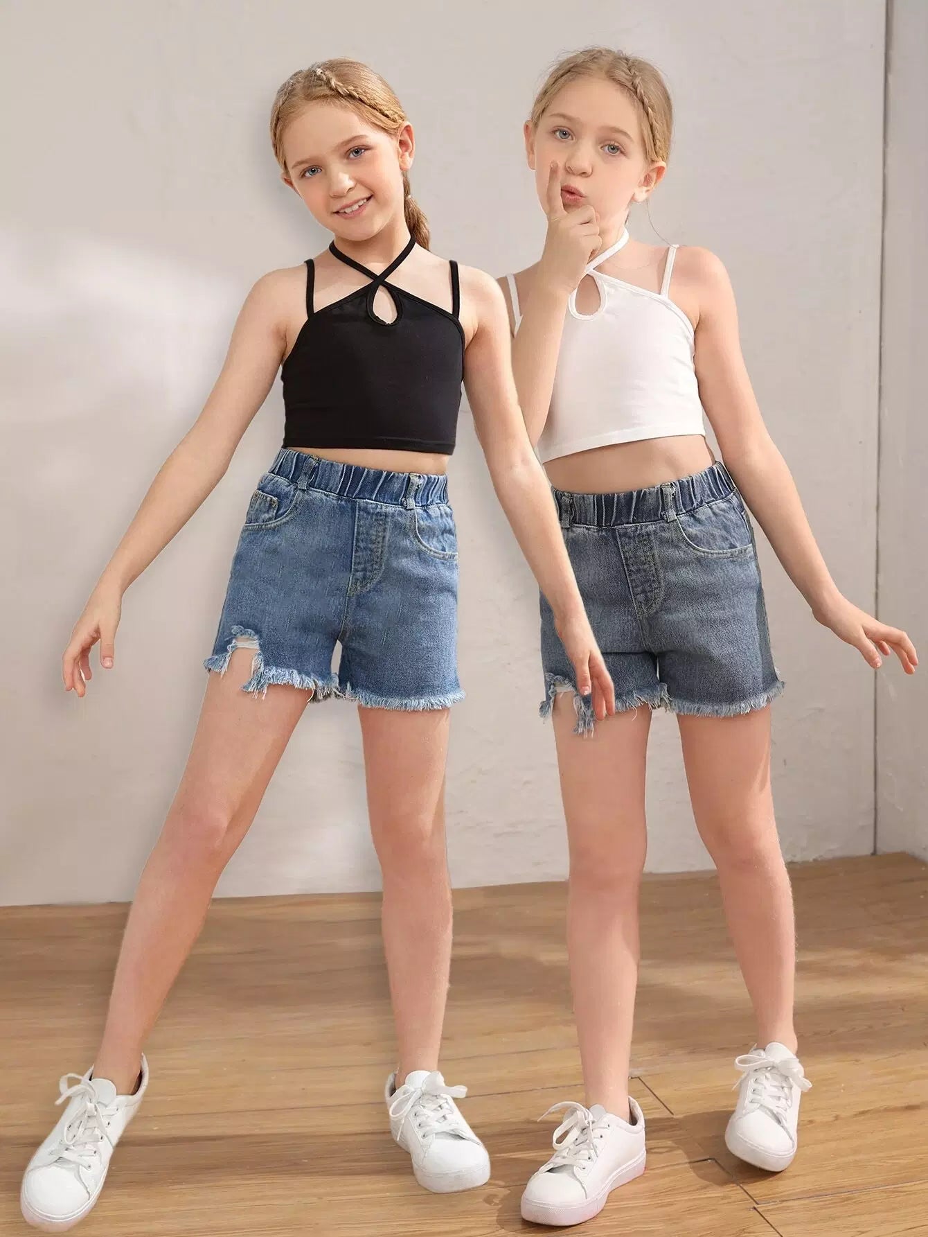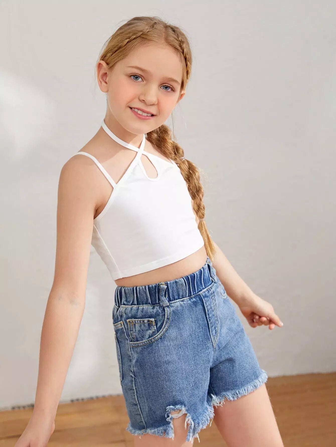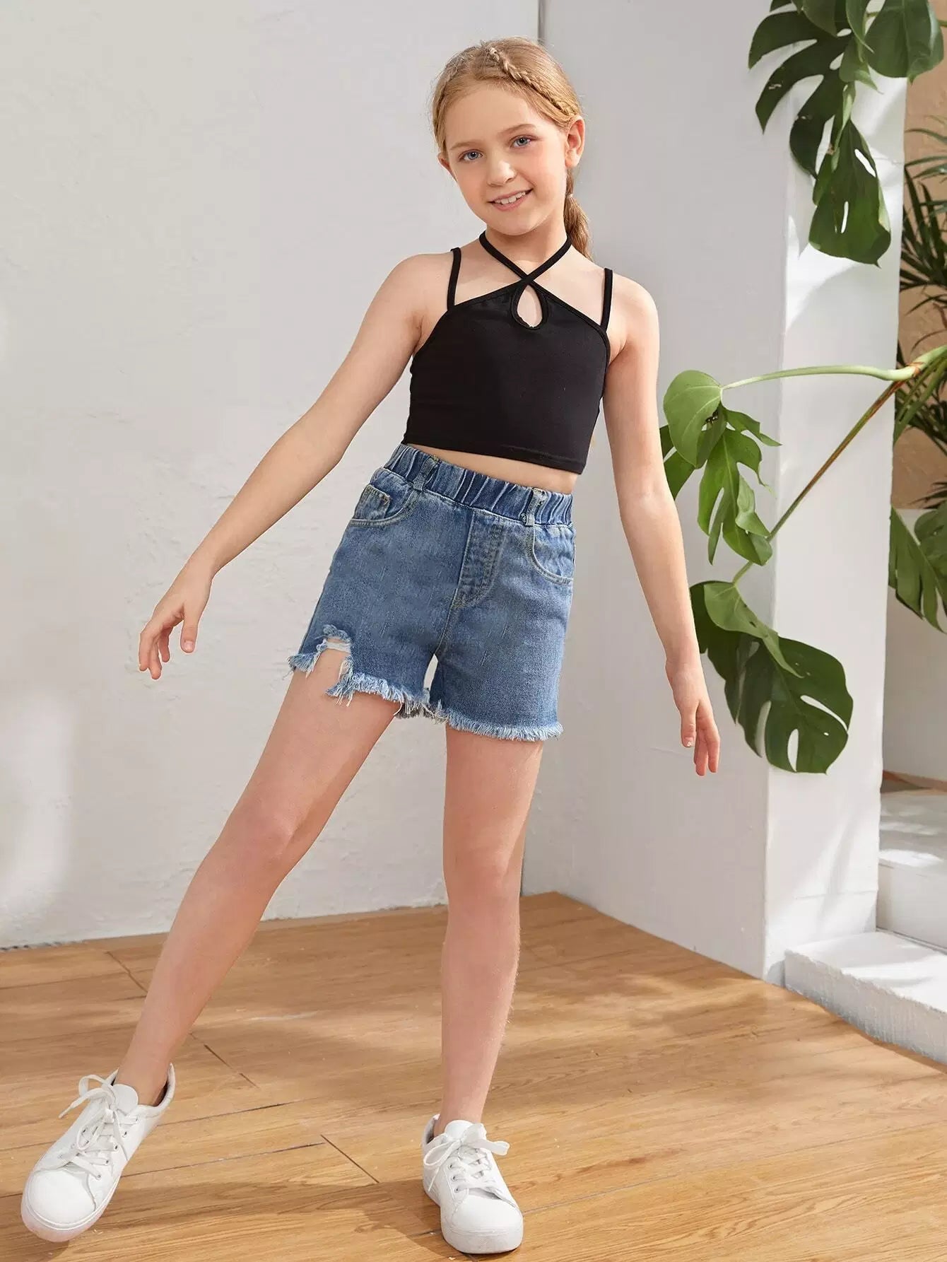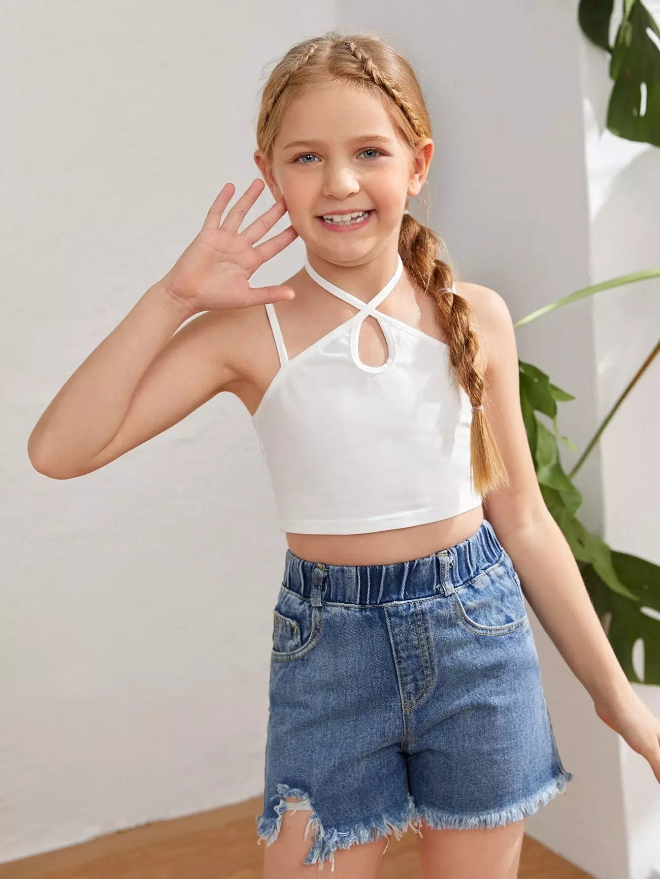 مجموعة من قطعتين من قميص كامي بفتحة عنق متقاطعة للفتيات