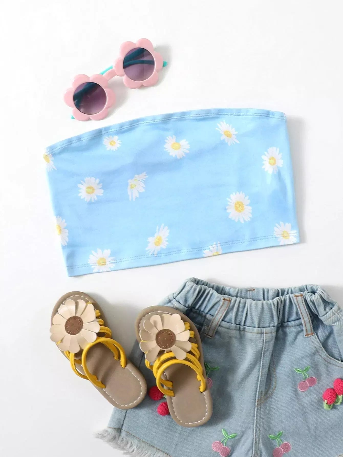 الأطفال - بلوزة قصيرة على شكل زهرة ديزي للفتيات