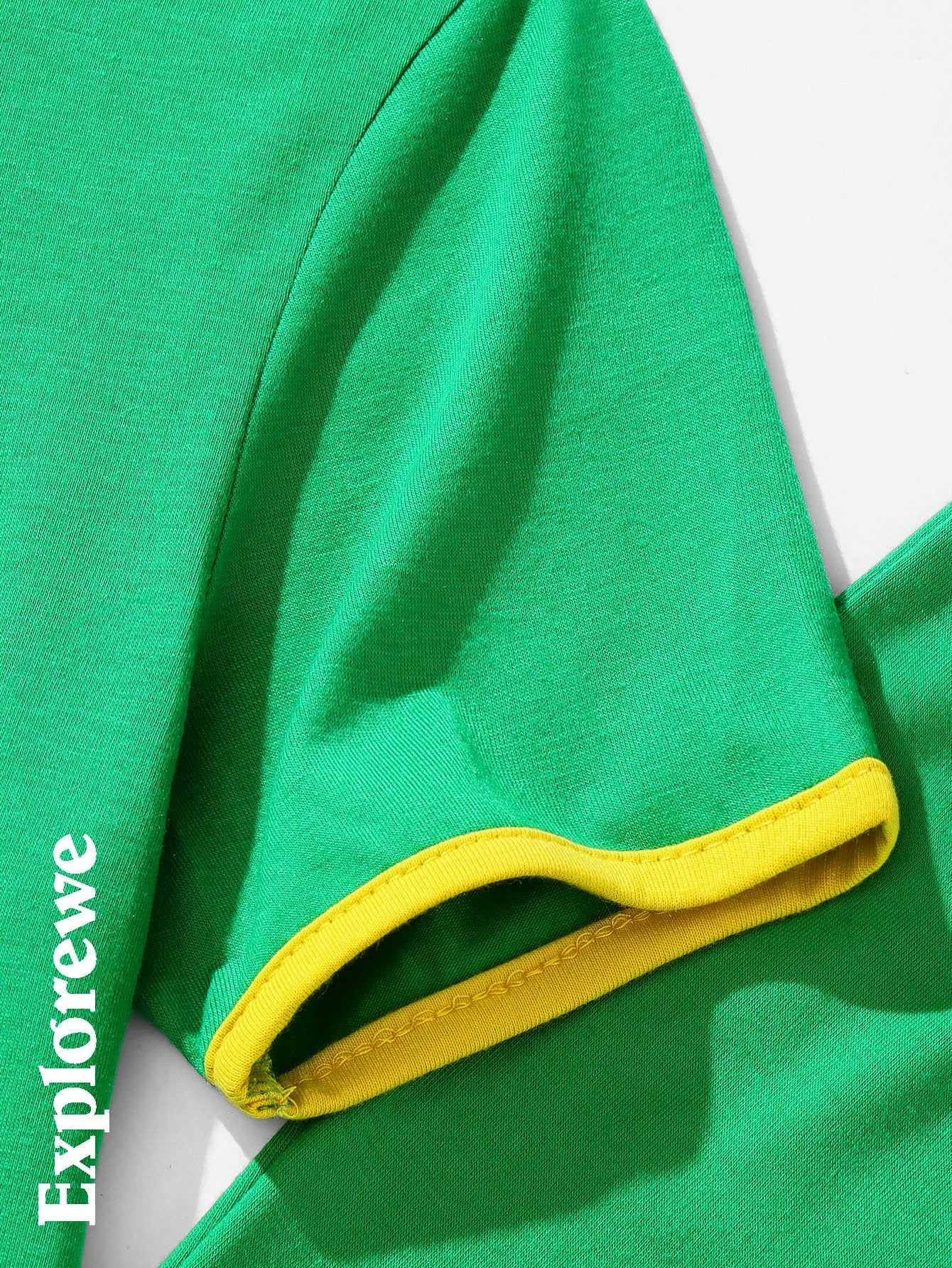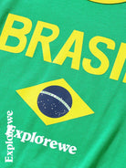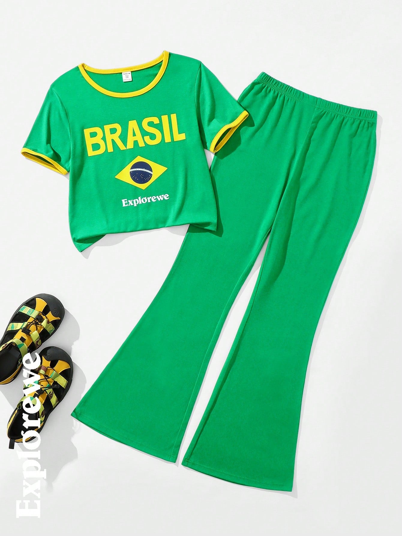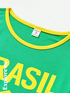 طقم من قطعتين/مجموعة ملابس كاجوال للفتيات المراهقات مطبوع عليه علم البرازيل ونص ورقبة مستديرة وأكمام قصيرة وبنطلون