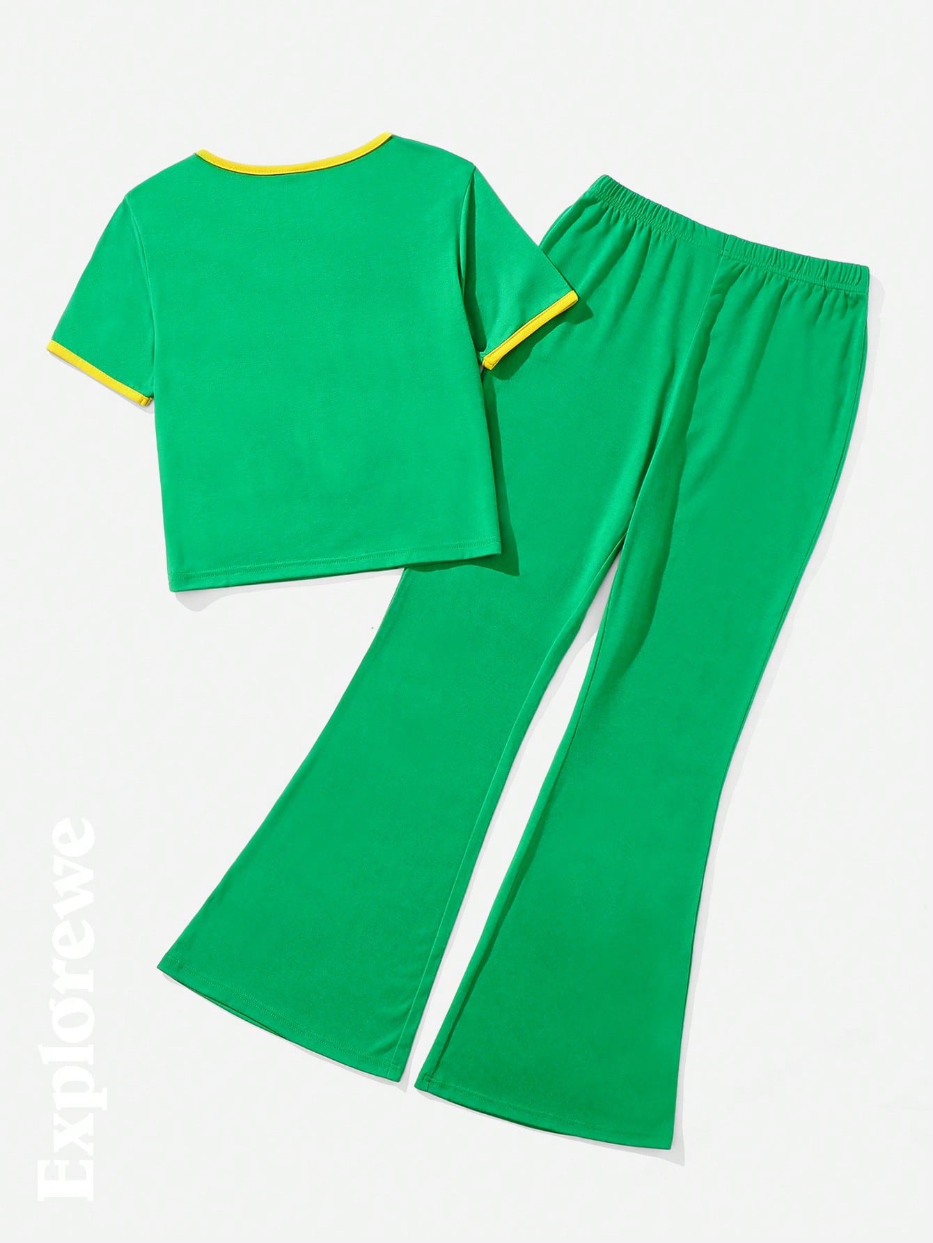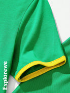 2pcs/Set Teenager Girls Casual Outdoor Brazil Flag & Text Print Round Neck Short Sleeve T-Shirt & Pants