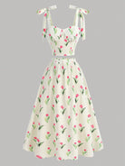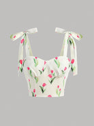 Girlism Teen Girls Allover Floral Print Cami Shoulder Bowknot Lace Up Summer Top & Skirt, Festival,Elegant