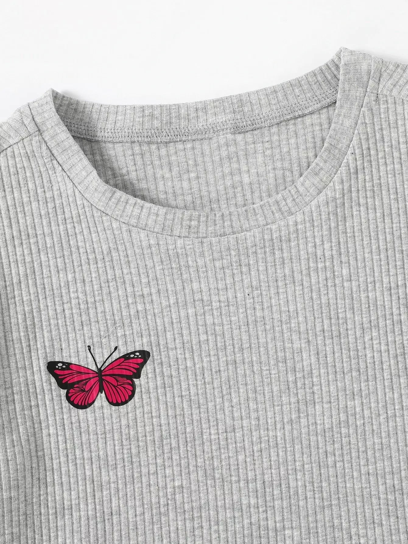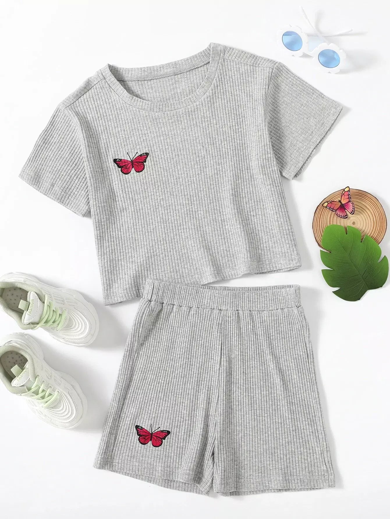 تي شيرت بطبعة فراشات للبنات مع شورت