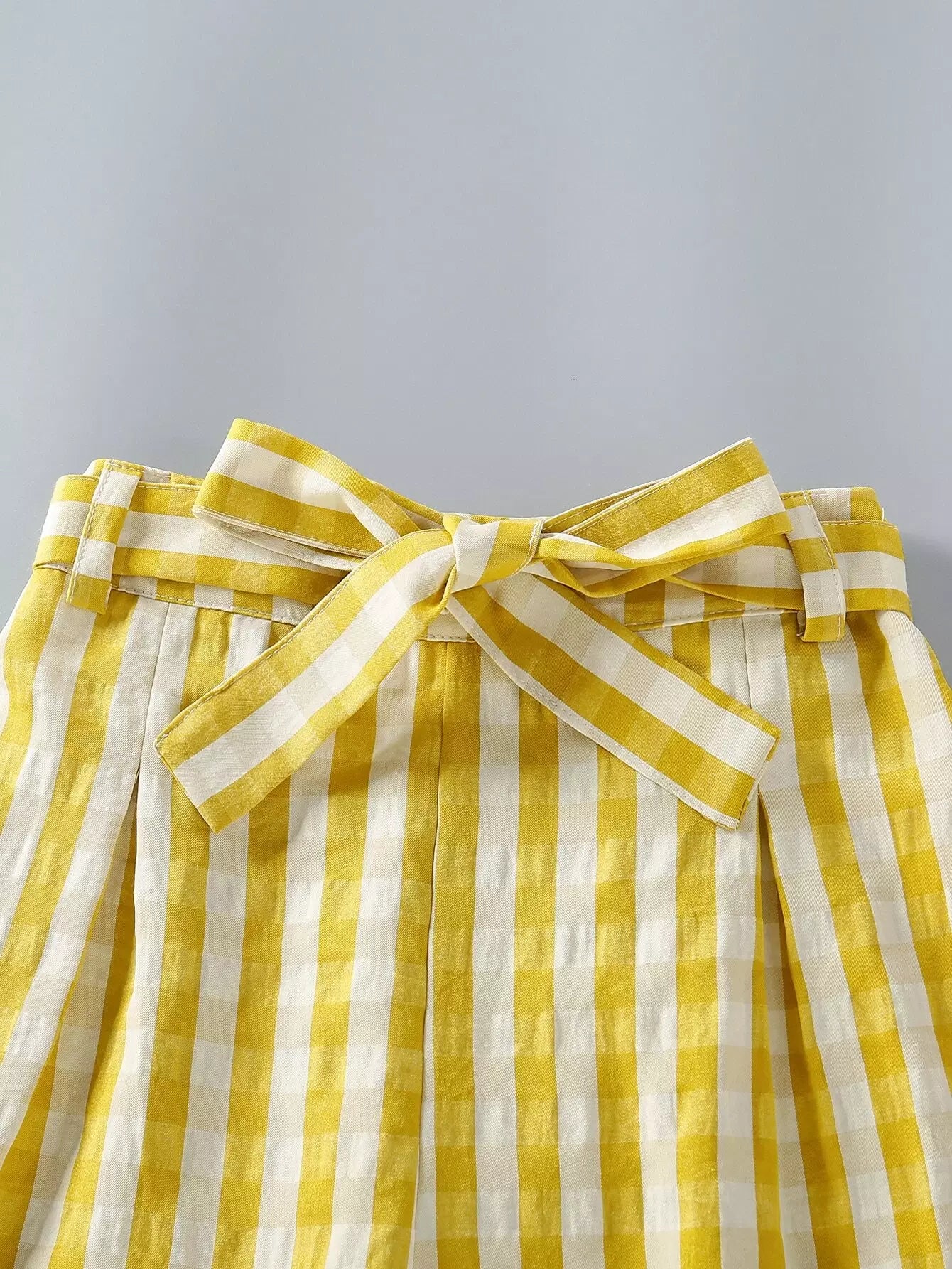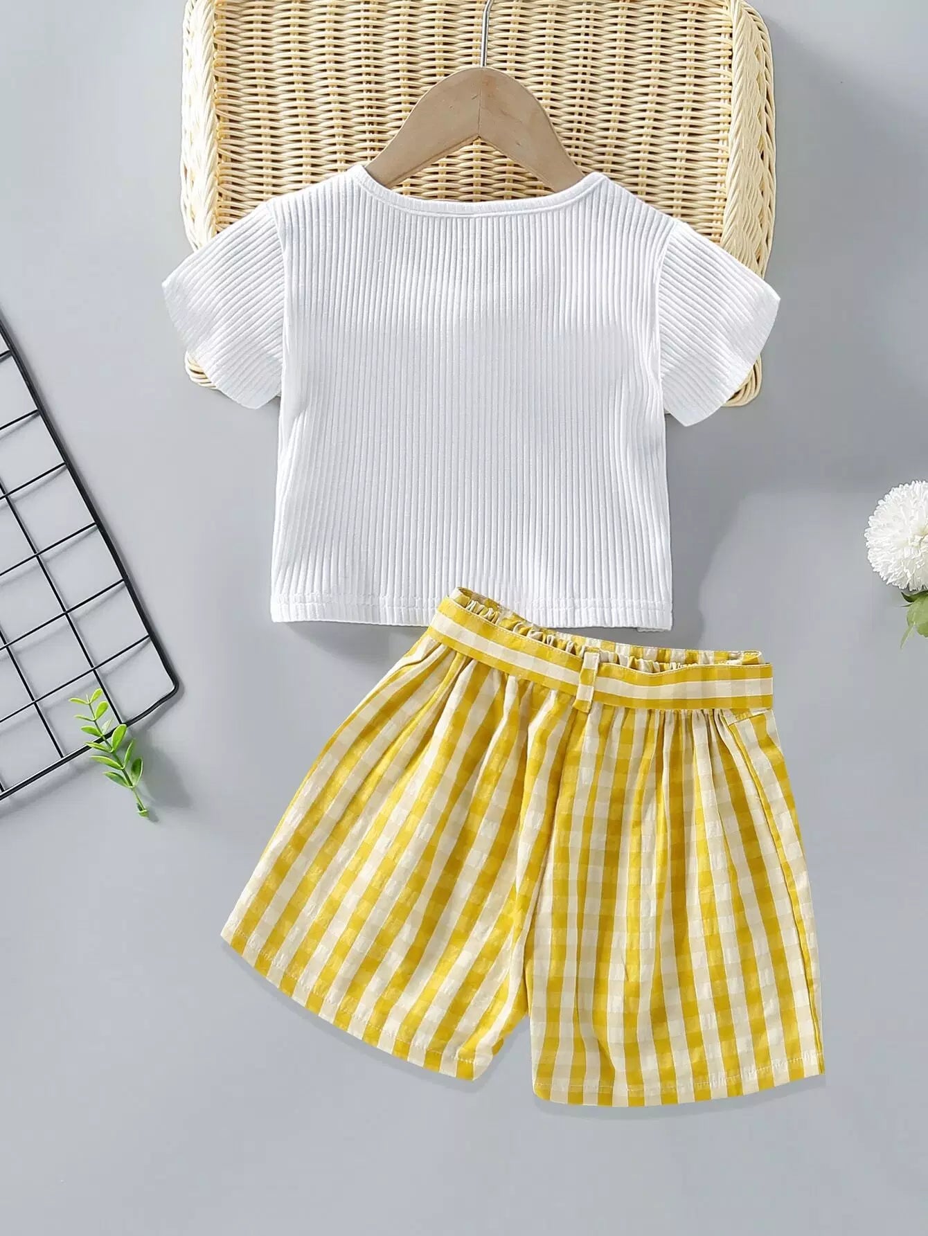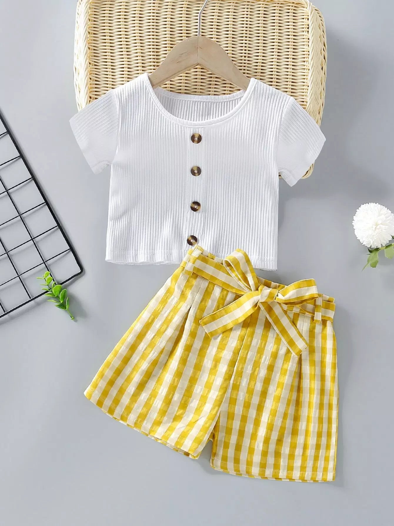 شورت بناتي بتفاصيل أزرار وطبعة قماش قطني بدون حزام