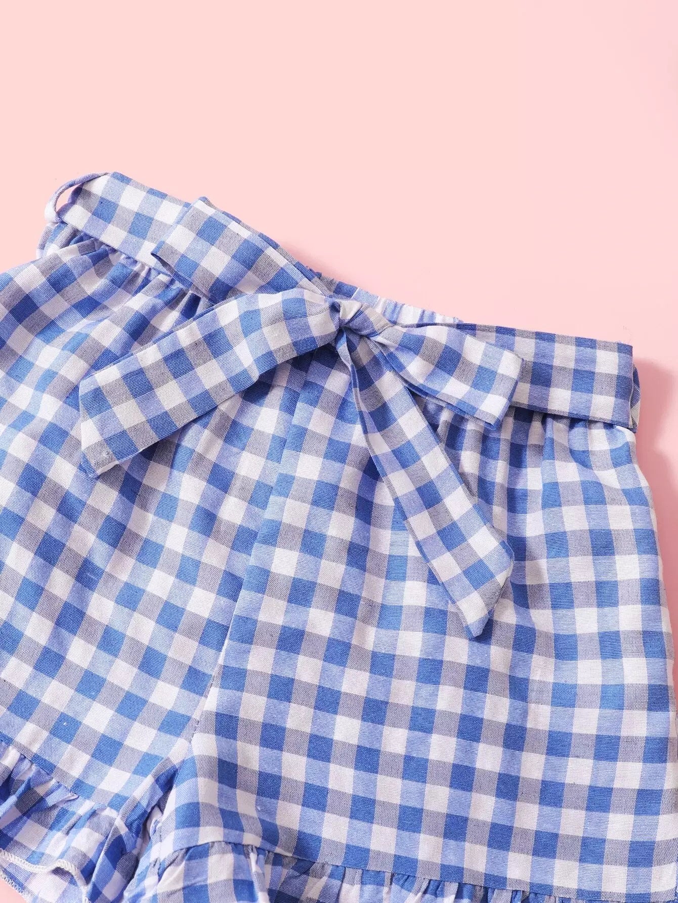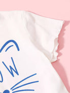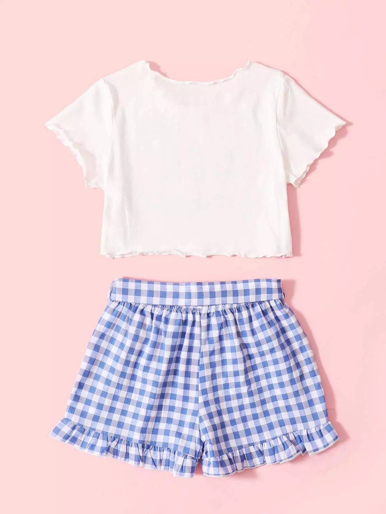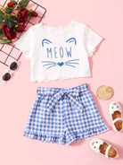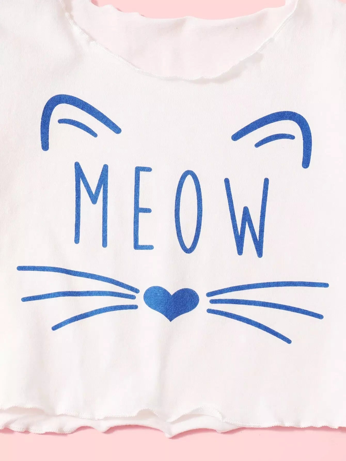 تي شيرت برسوم كرتونية للفتيات مع شورت من القماش القطني بدون حزام