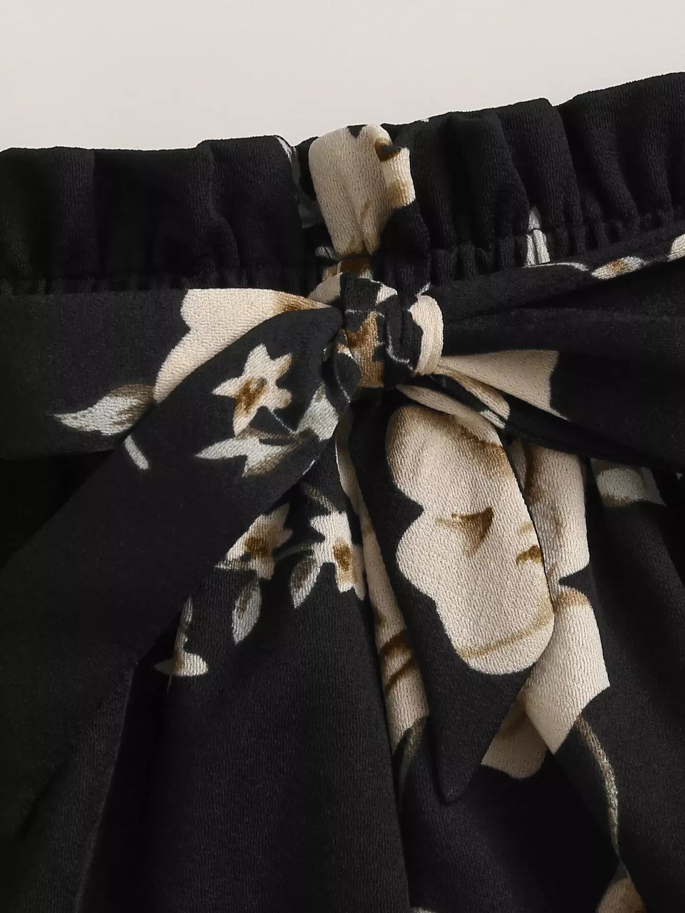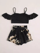 طقم شورت بناتي بكتف مكشوف وشورت بطبعة زهور بدون حزام