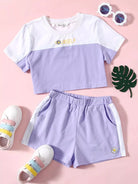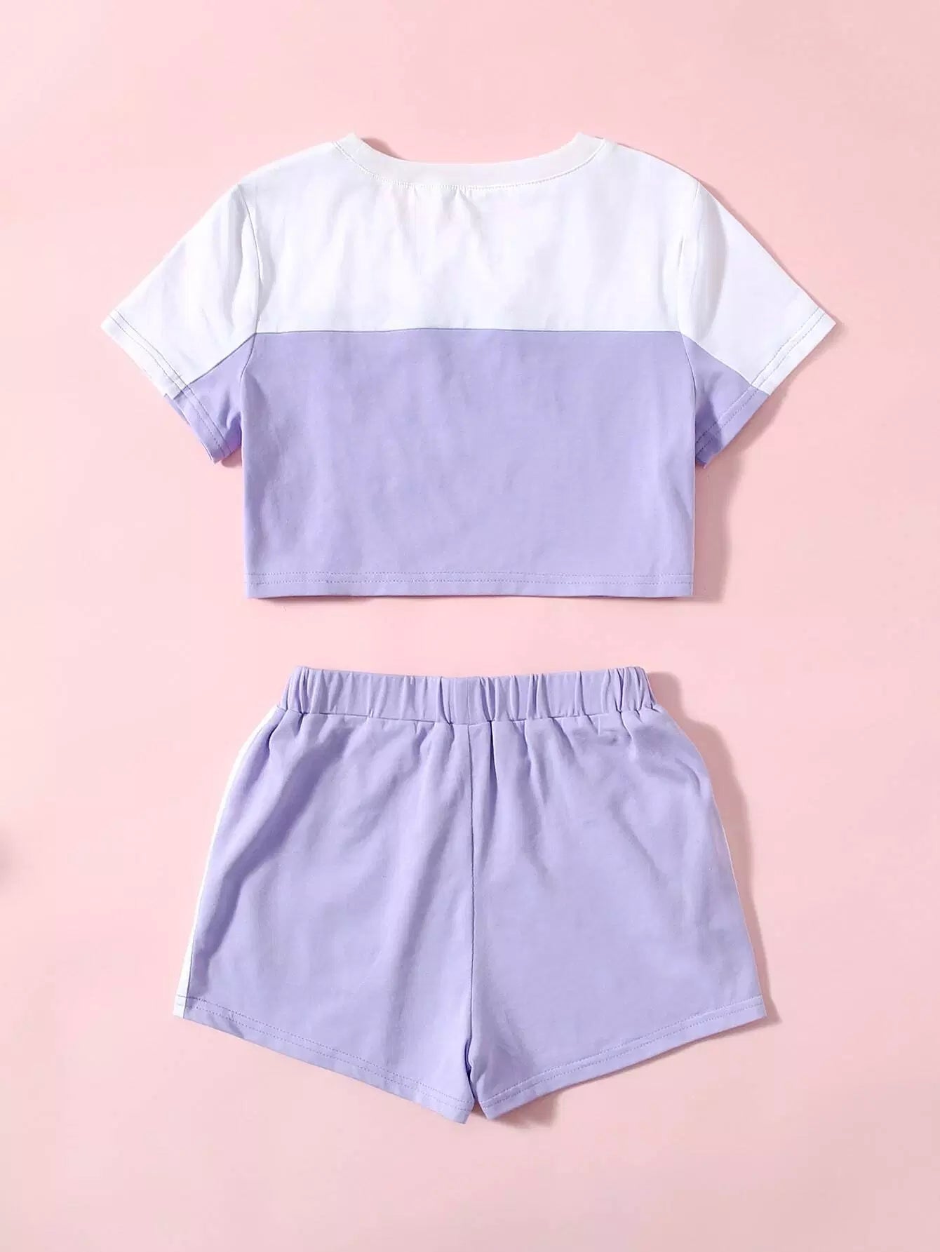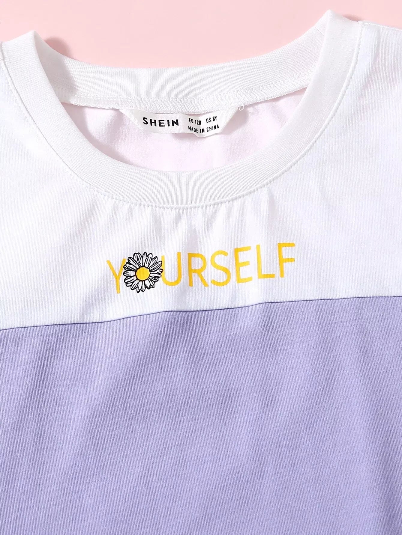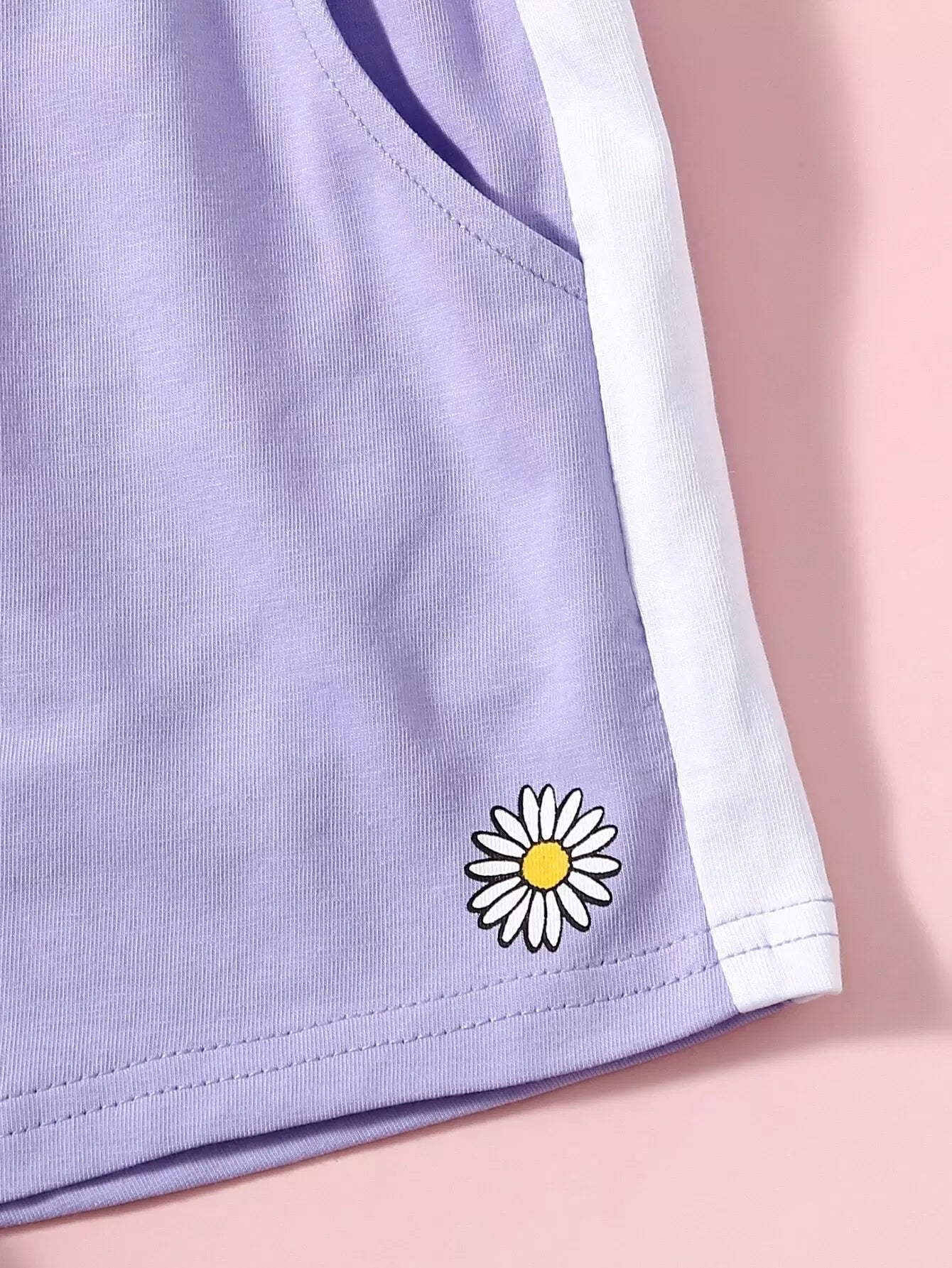 طقم بناتي مكون من بلوزة وشورت بطبعات أزهار وحروف بلونين