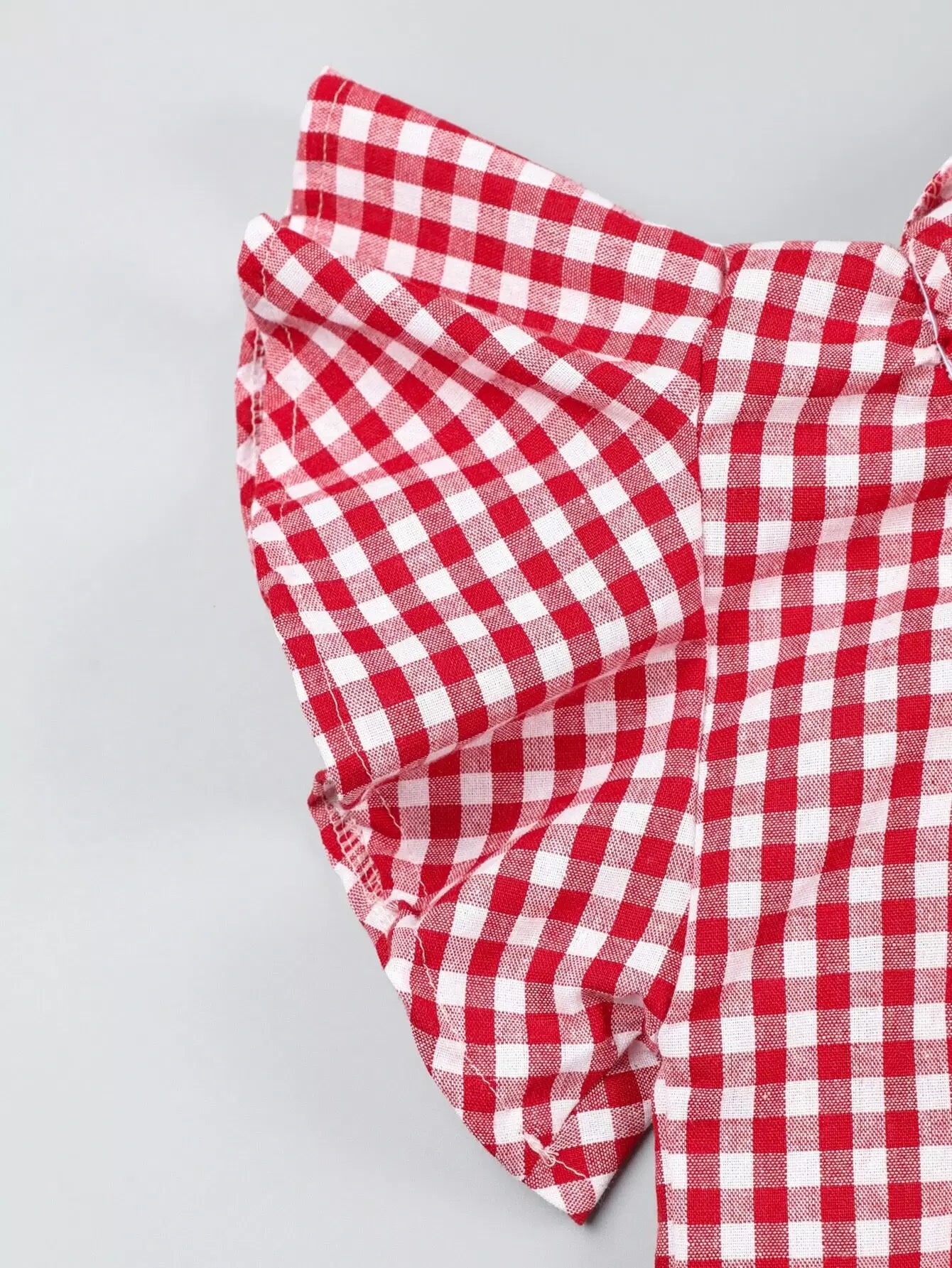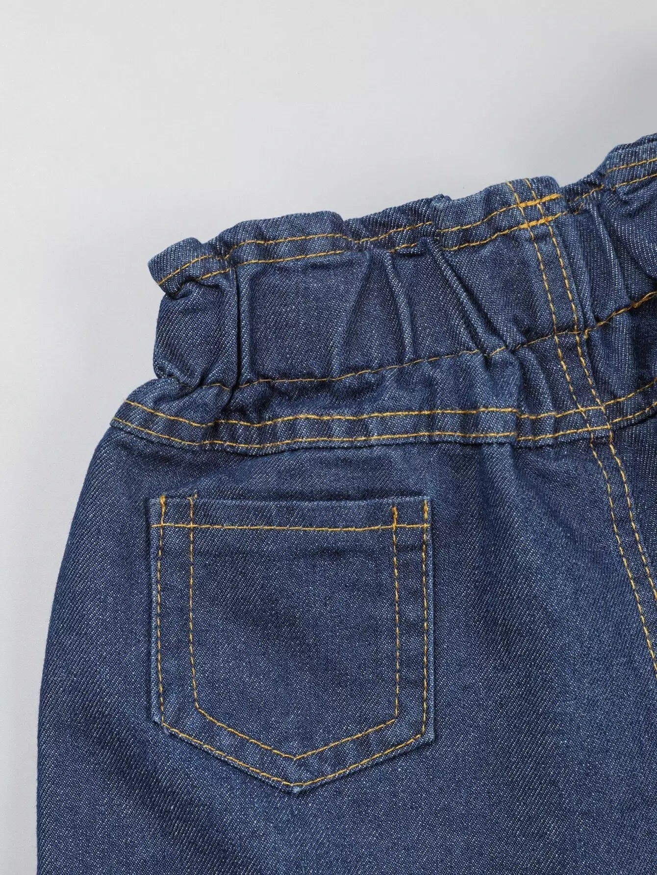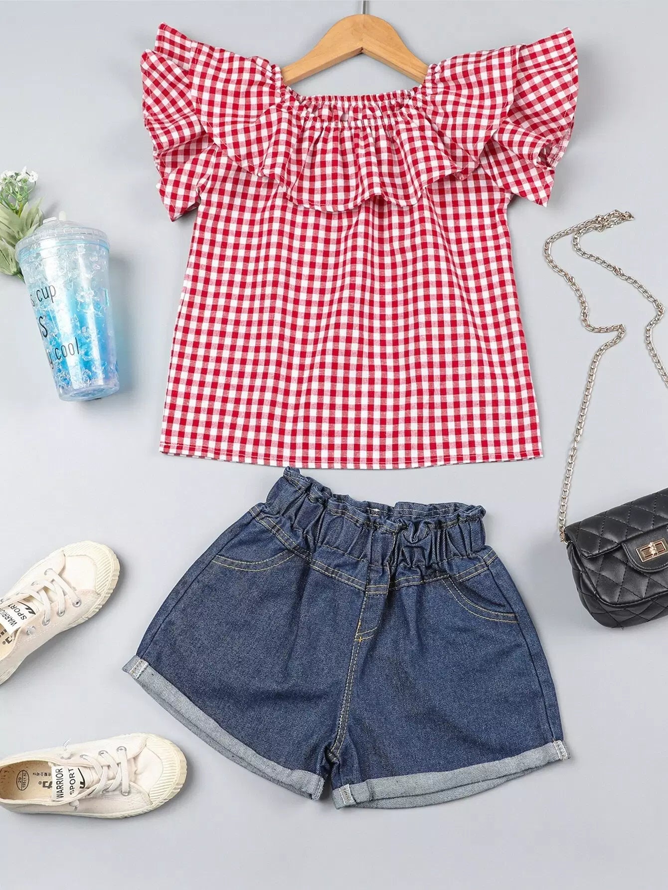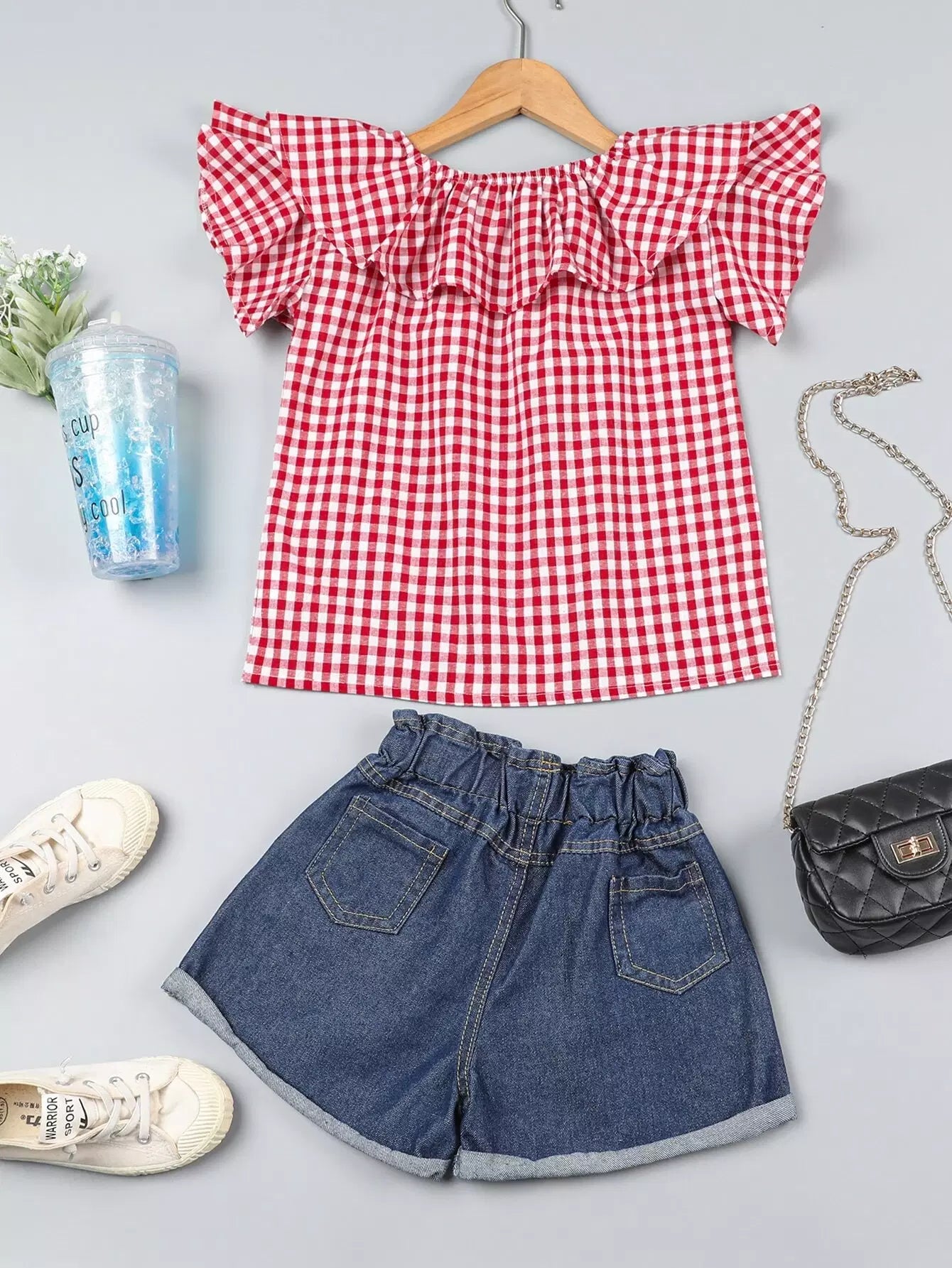 بلوزة قطنية مكشكشة للبنات وشورت جينز قصير قطني