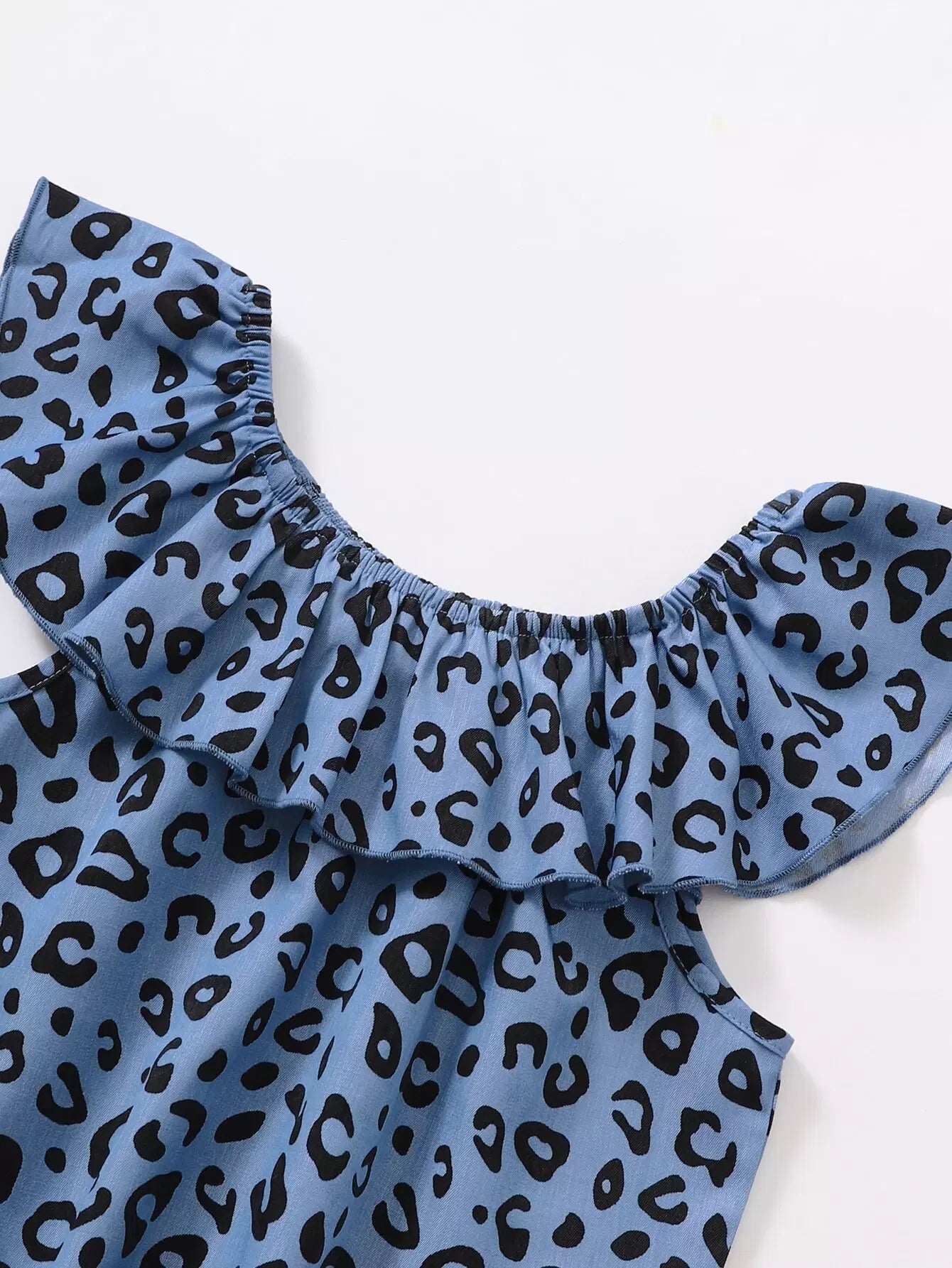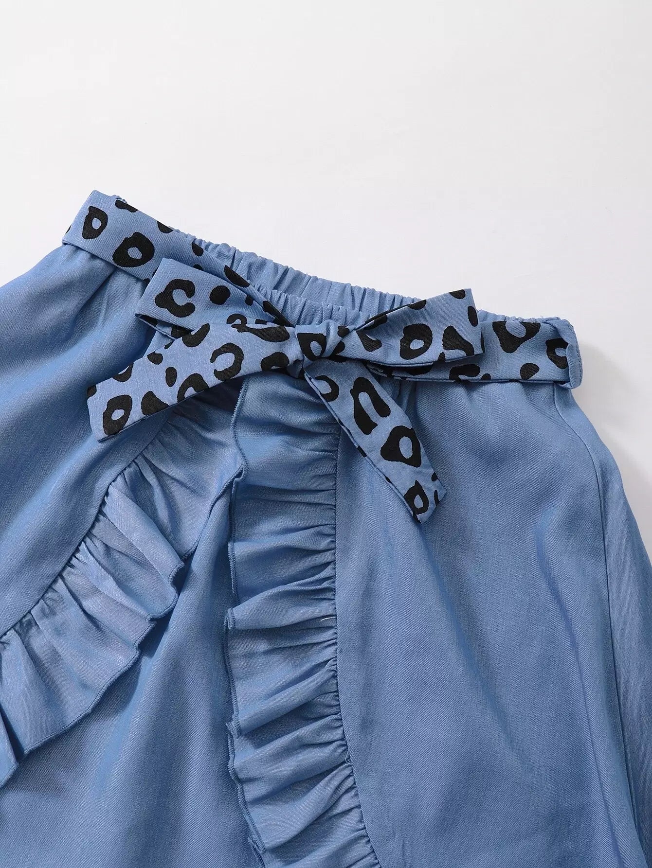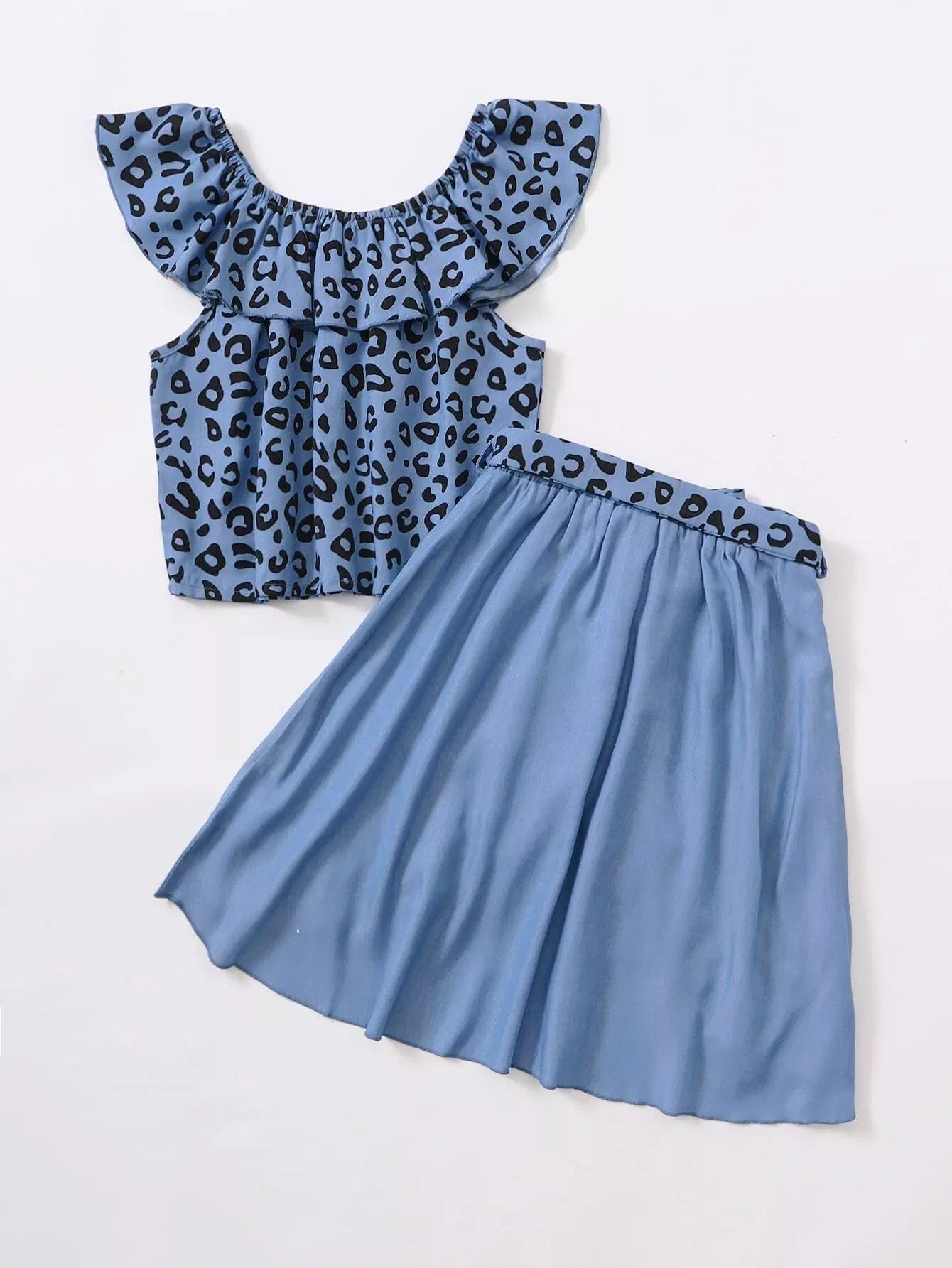 بلوزة وتنورة من الدنيم بطبعات جرافيك للفتيات بدون حزام