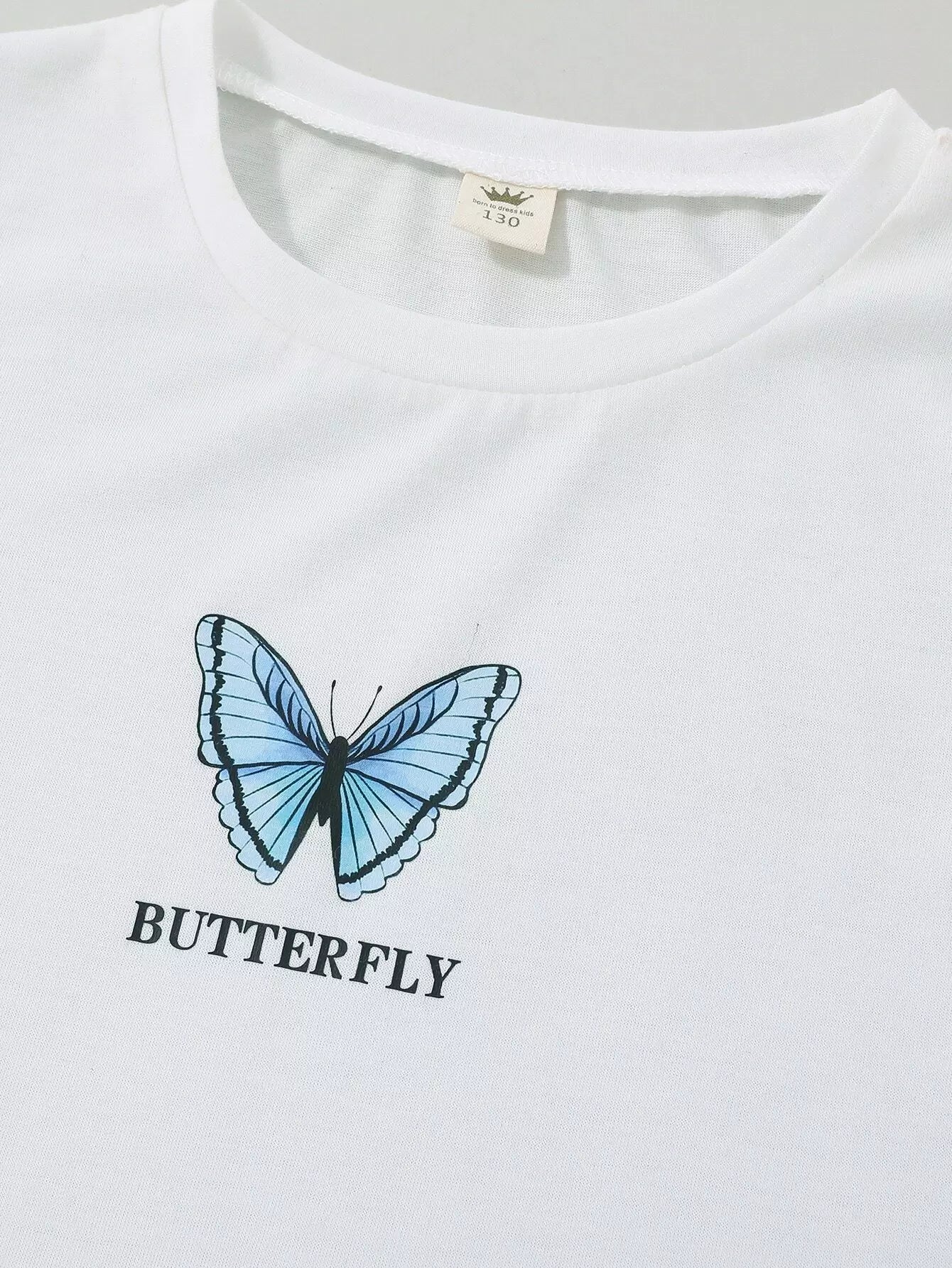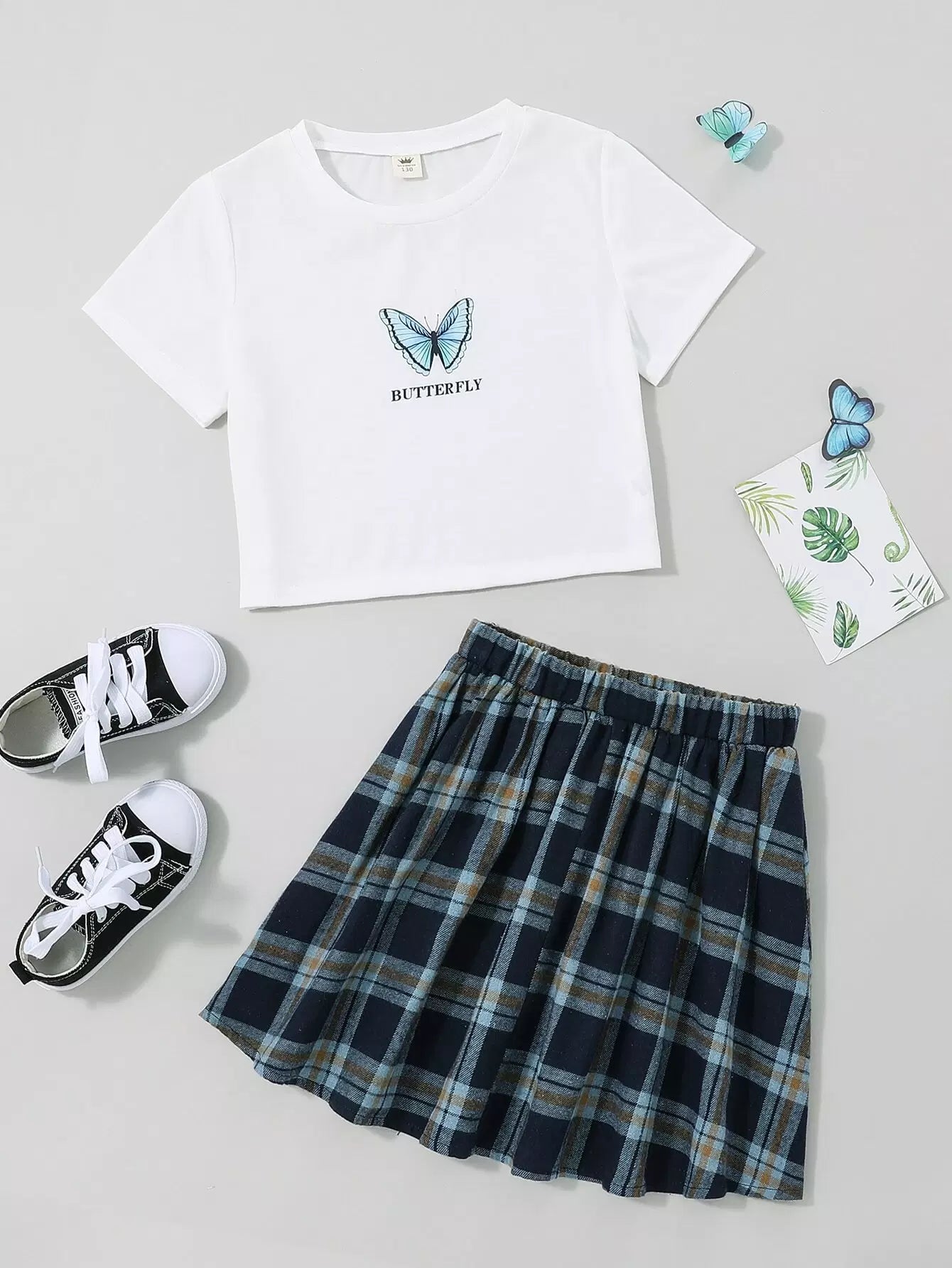 تي شيرت بطبعة حروف وفراشات للبنات وتنورة منقوشة بطبعة فراشات