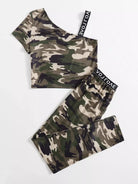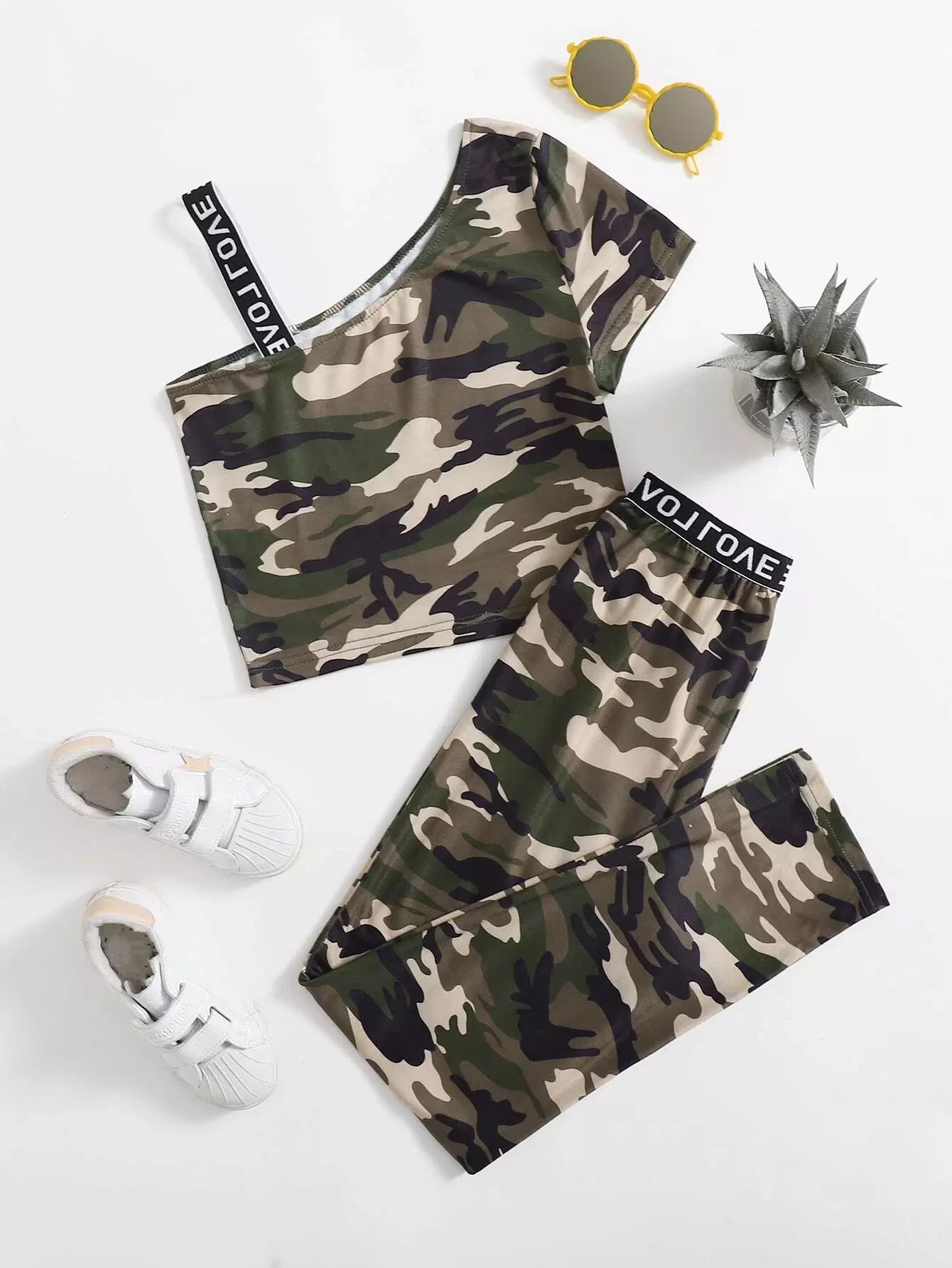 بلوزة بنطلون مموّهة بشريط لاصق للفتيات مع بنطلون