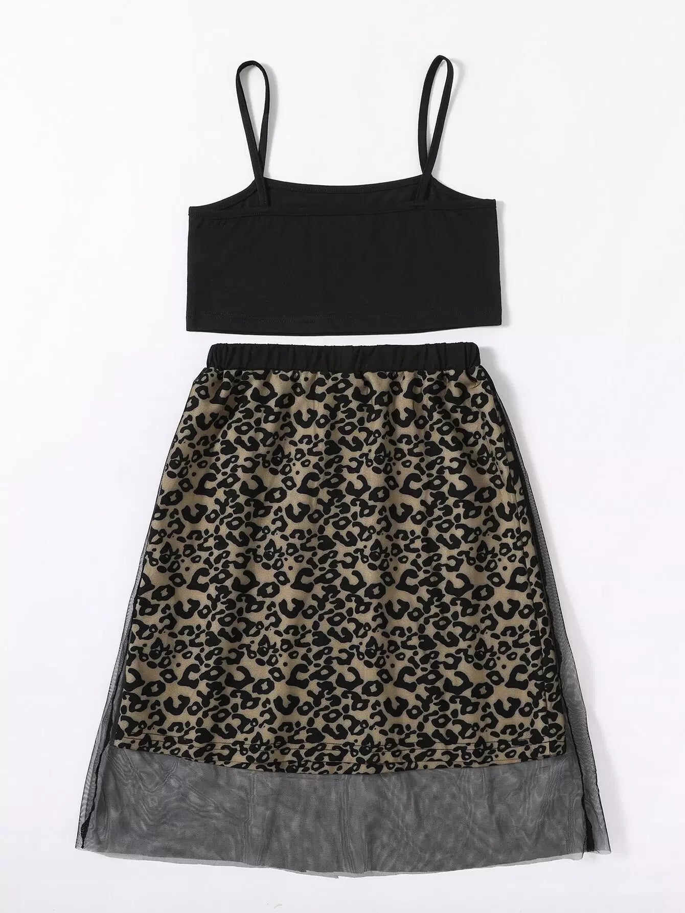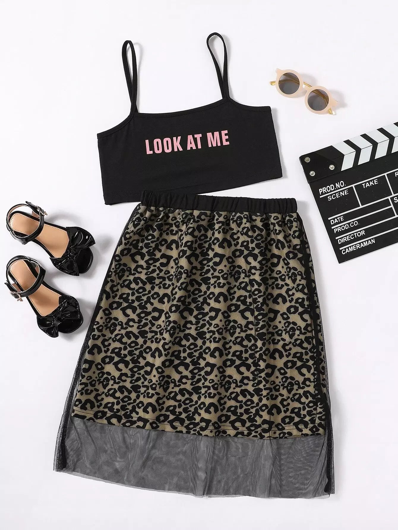 تنورة بشعار شعار جرافيك جرافيك للبنات بلوزة بنطلون قصير بشبكة