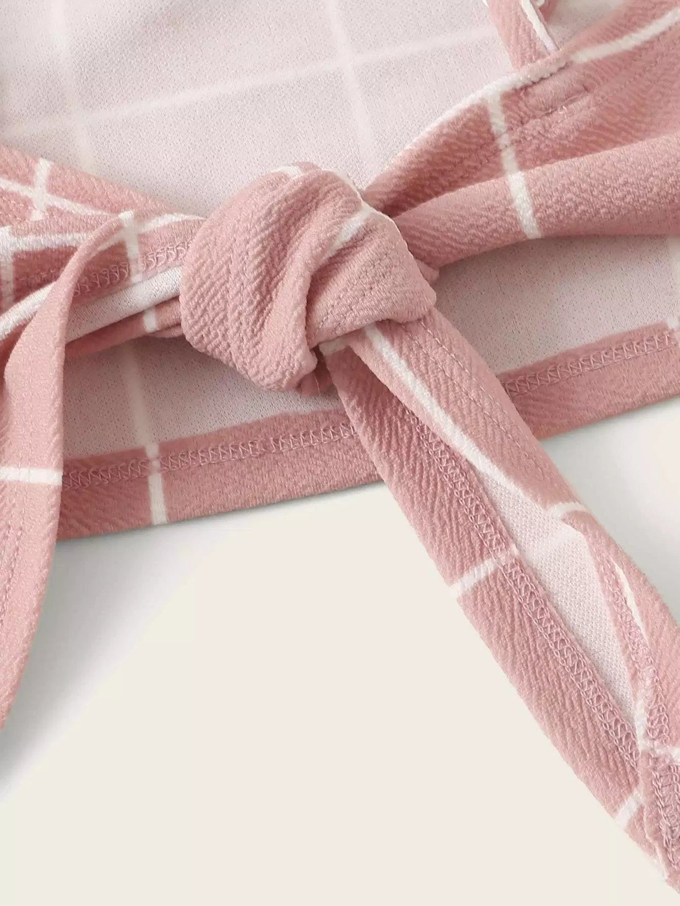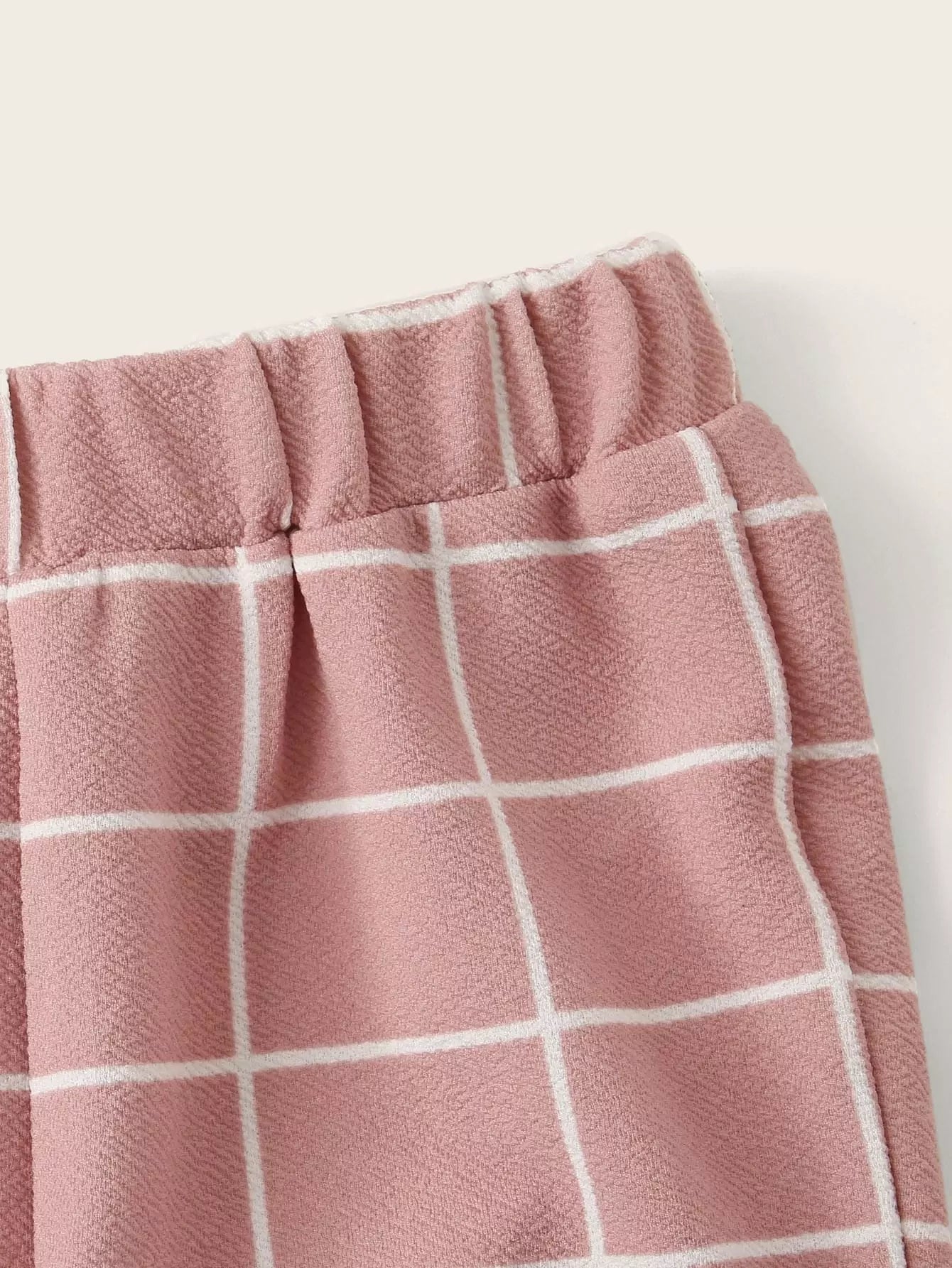 طقم من بلوزة وبنطلون كامي بطبعة شبكية وربطة عنق للبنات