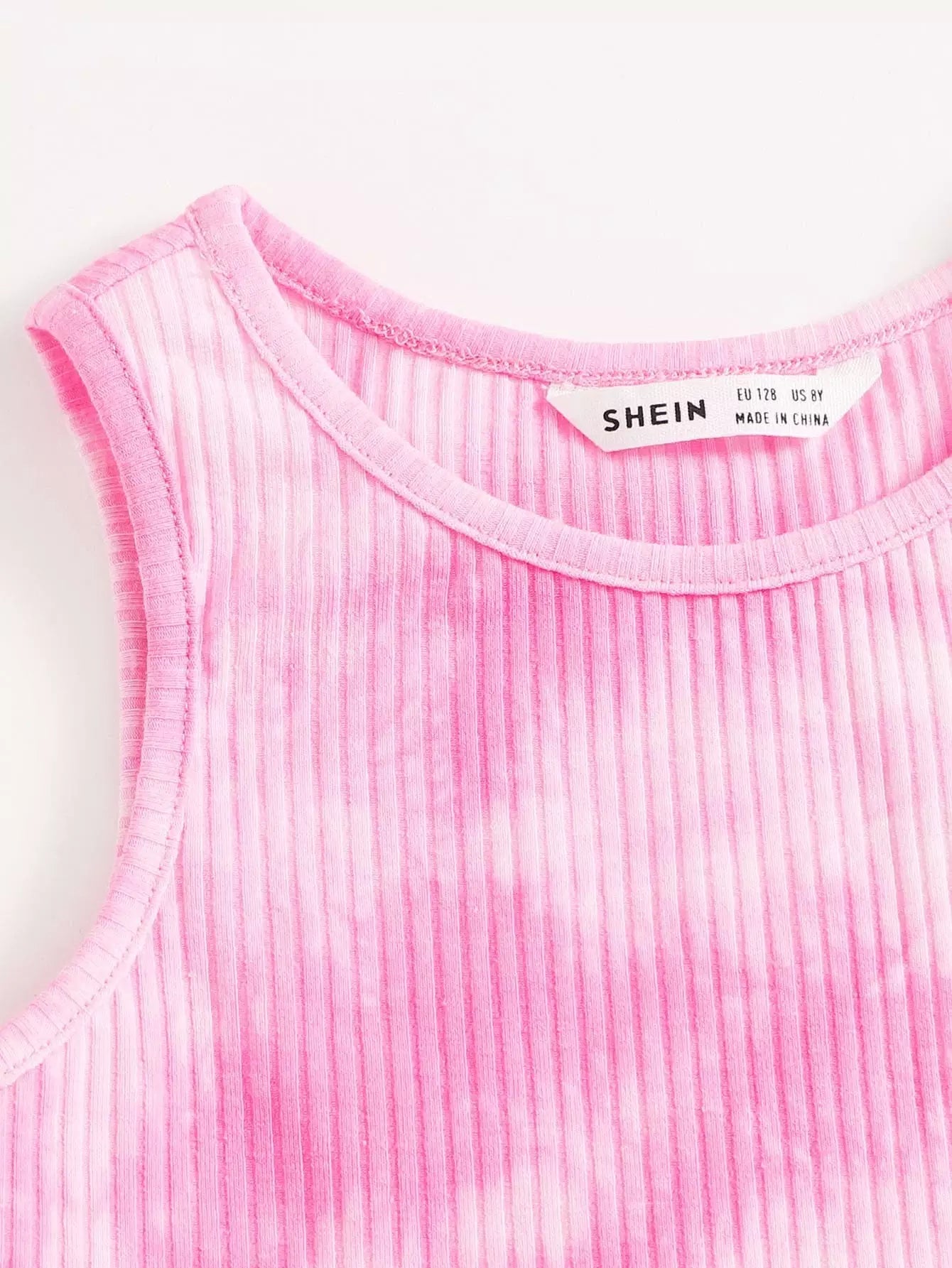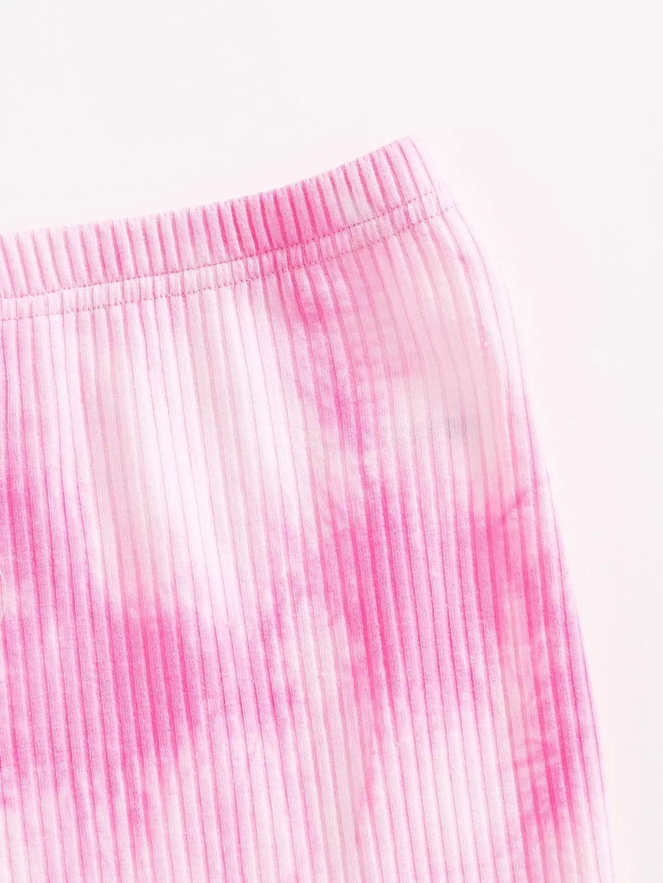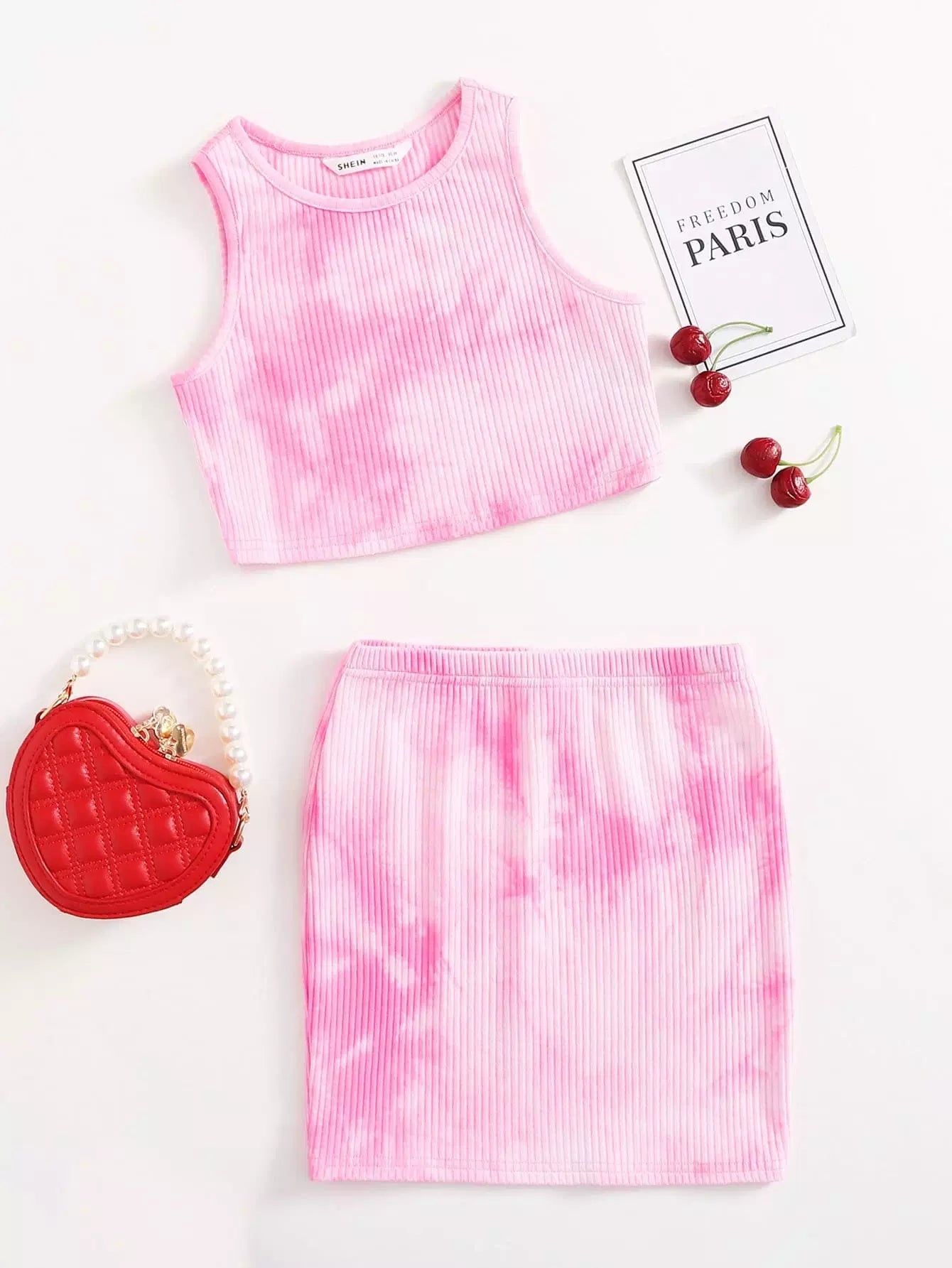 طقم تنورة وقميص داخلي من نسيج مضلع مصبوغ بالربط للبنات