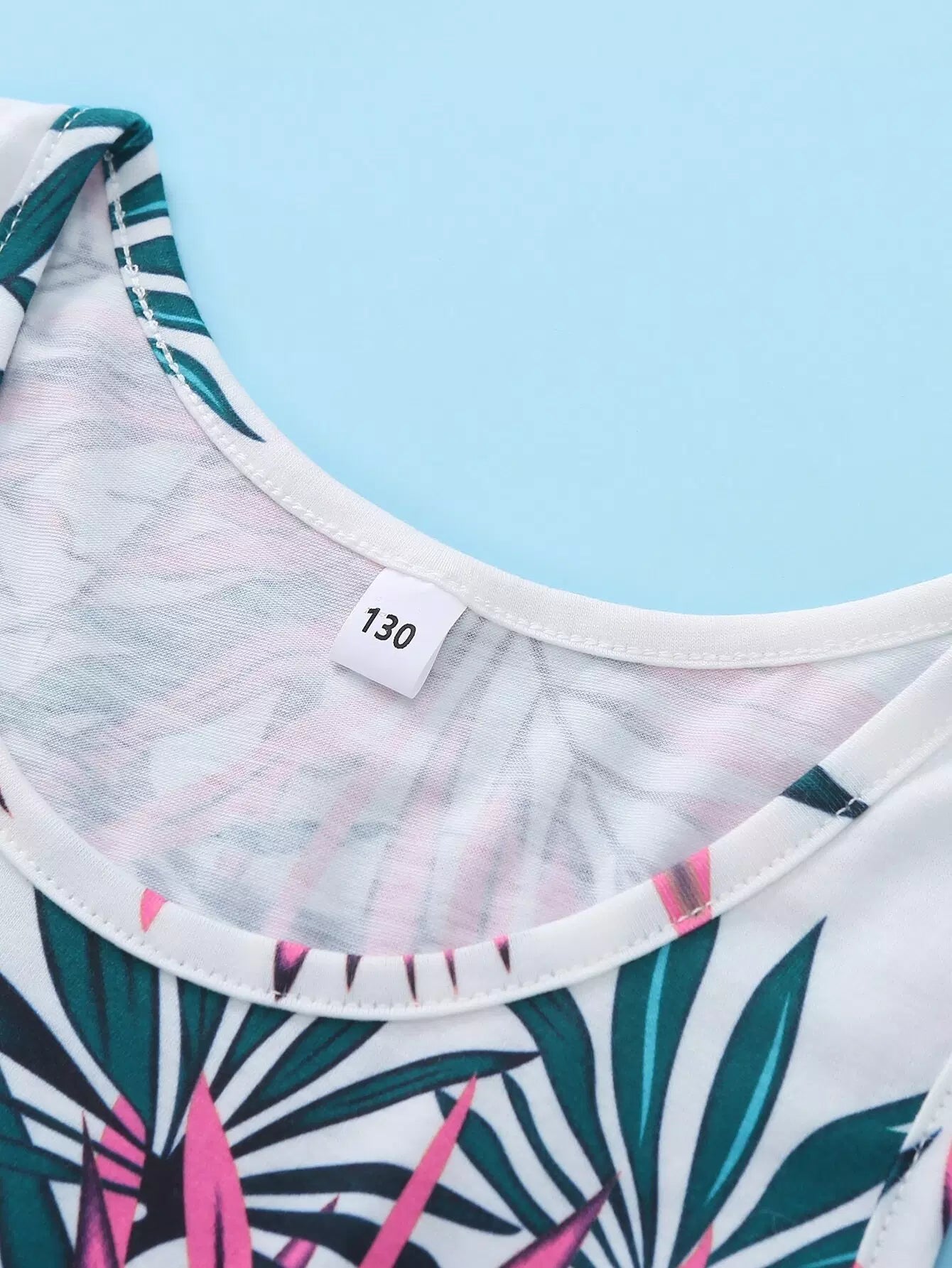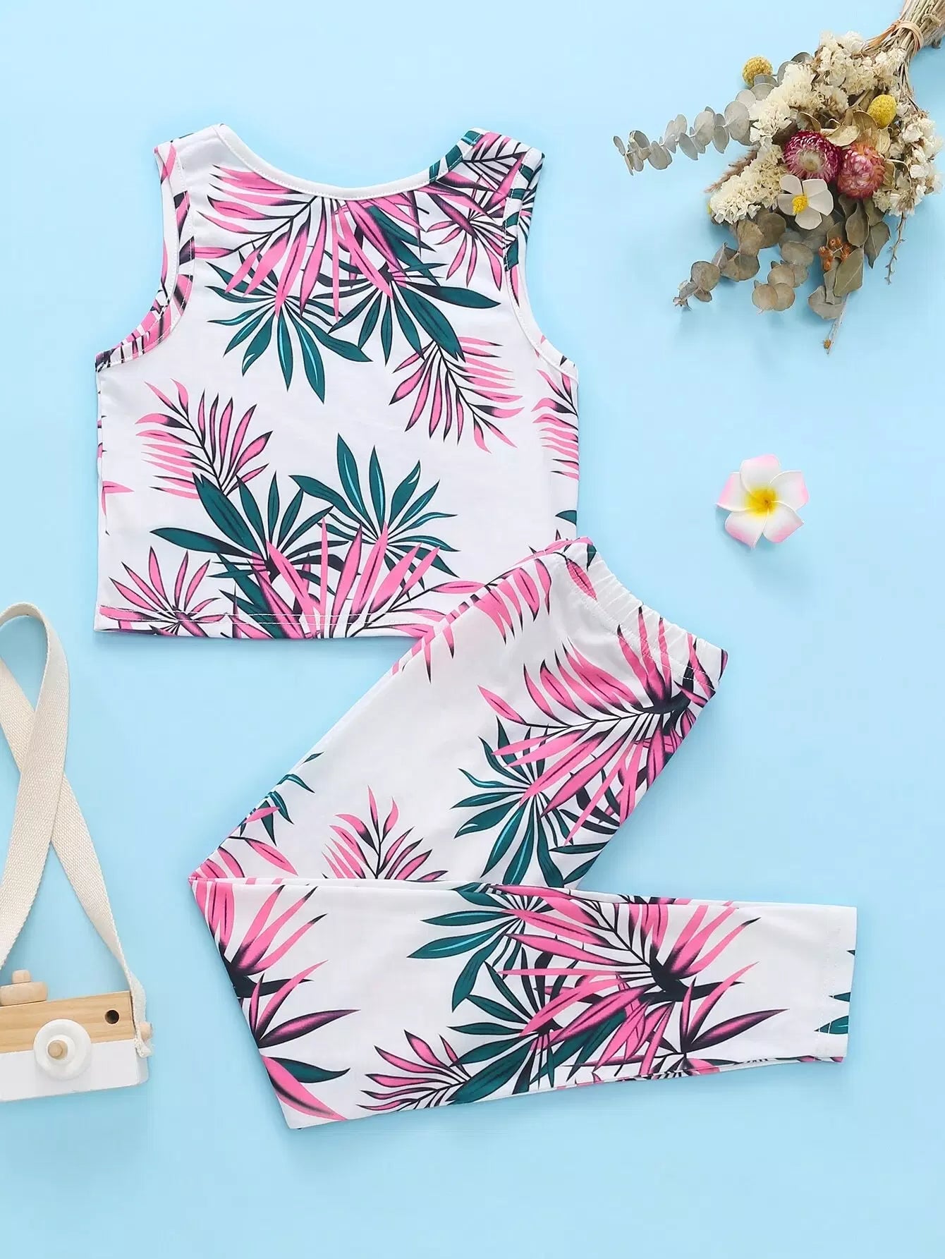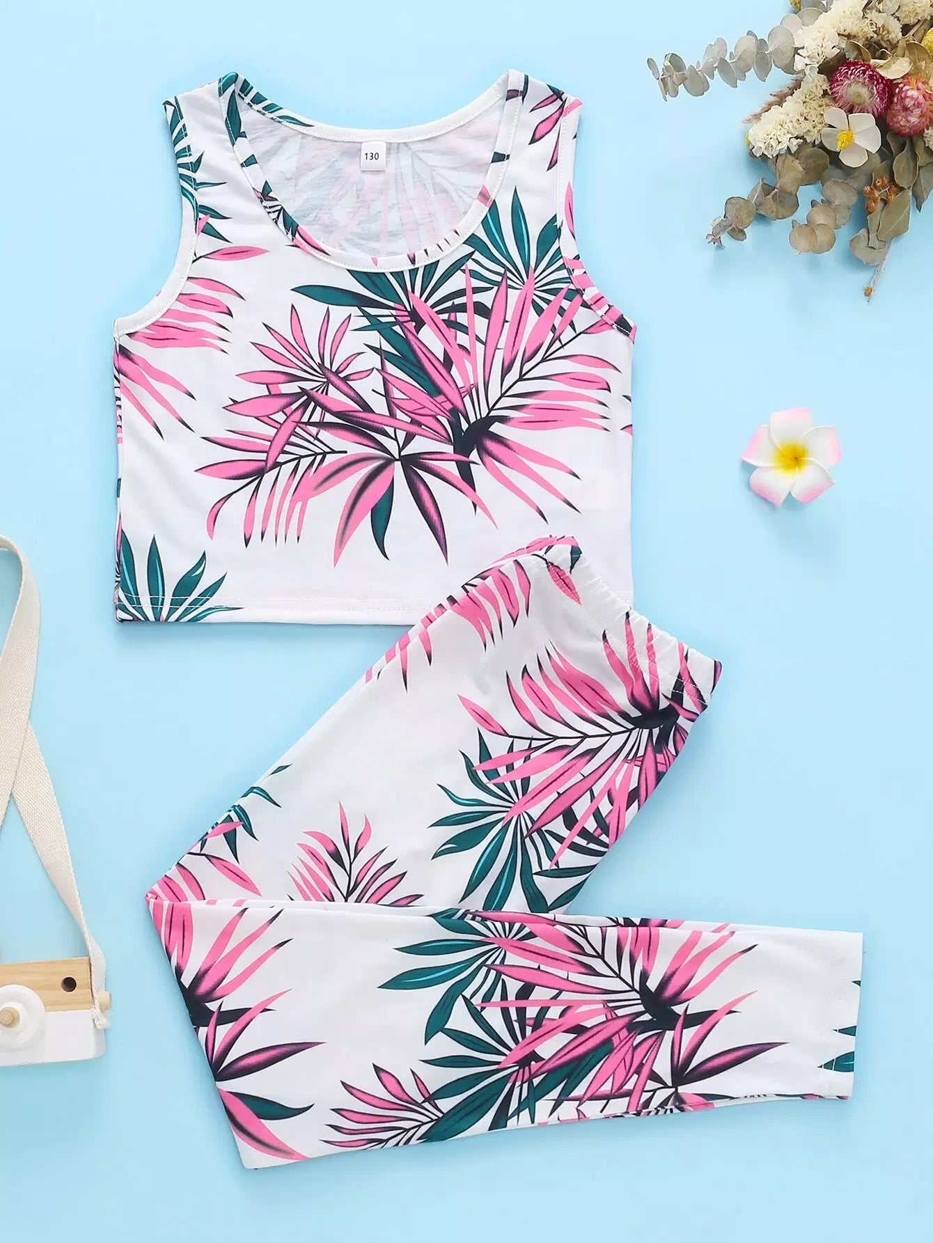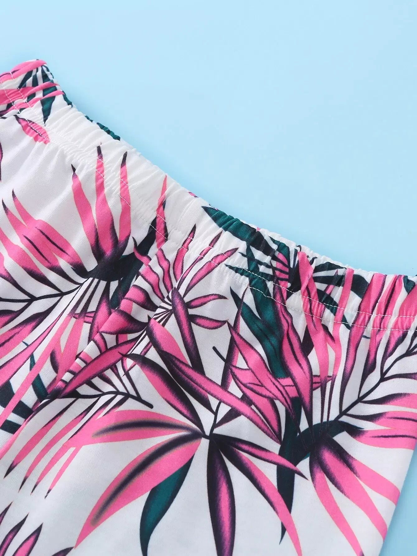 توب وبنطال ضيق بطبعة استوائية للبنات