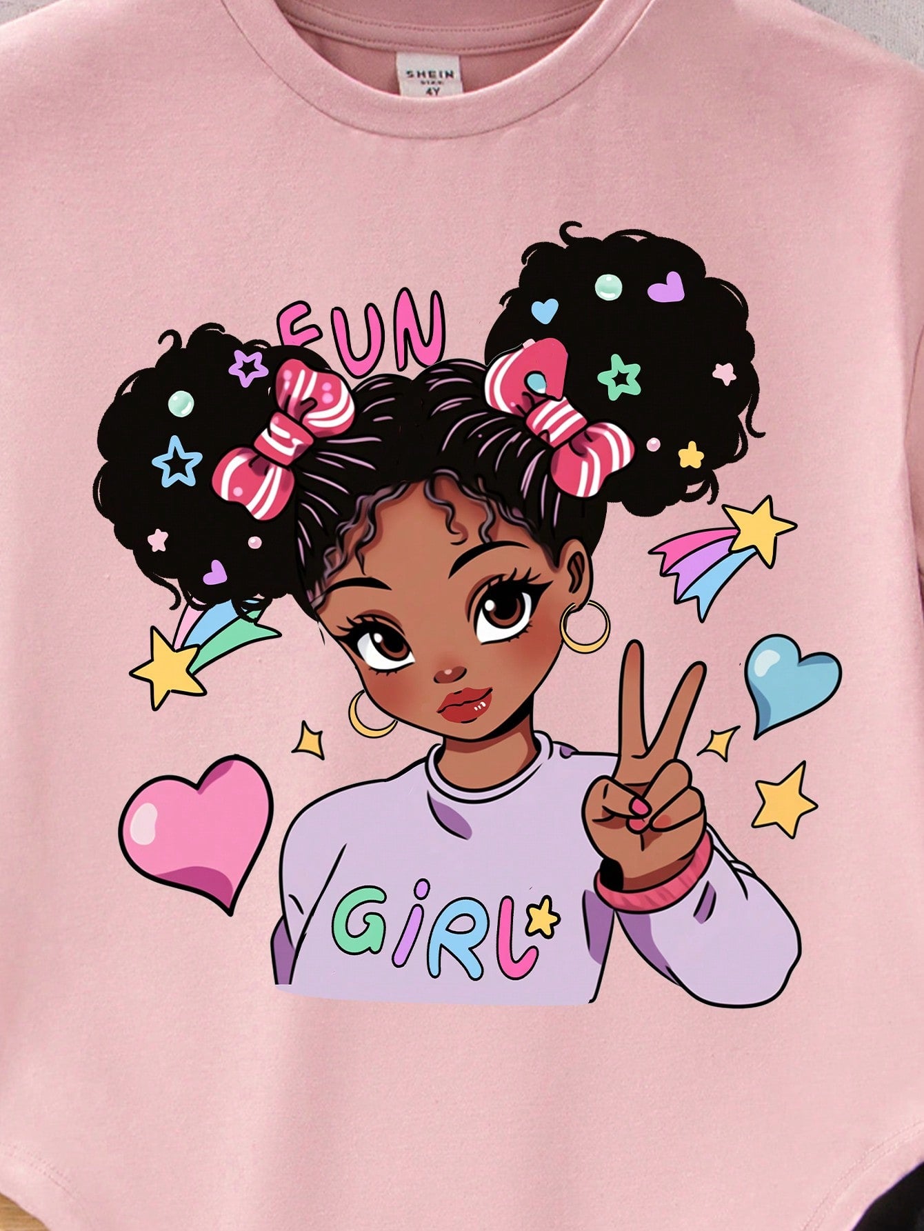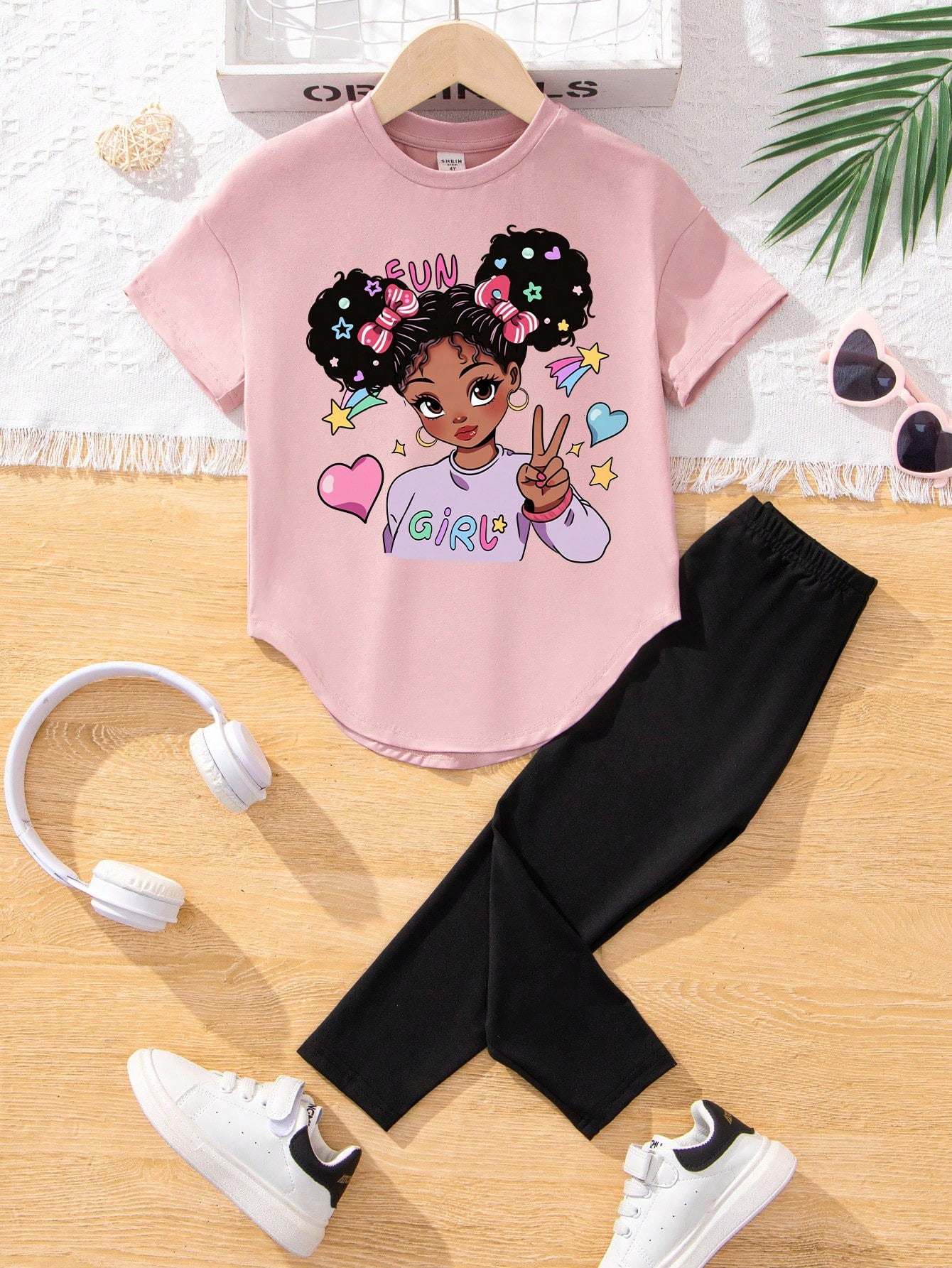 kids SHEIN Young Girl Casual Simple Short Sleeve Top And Pants Set
