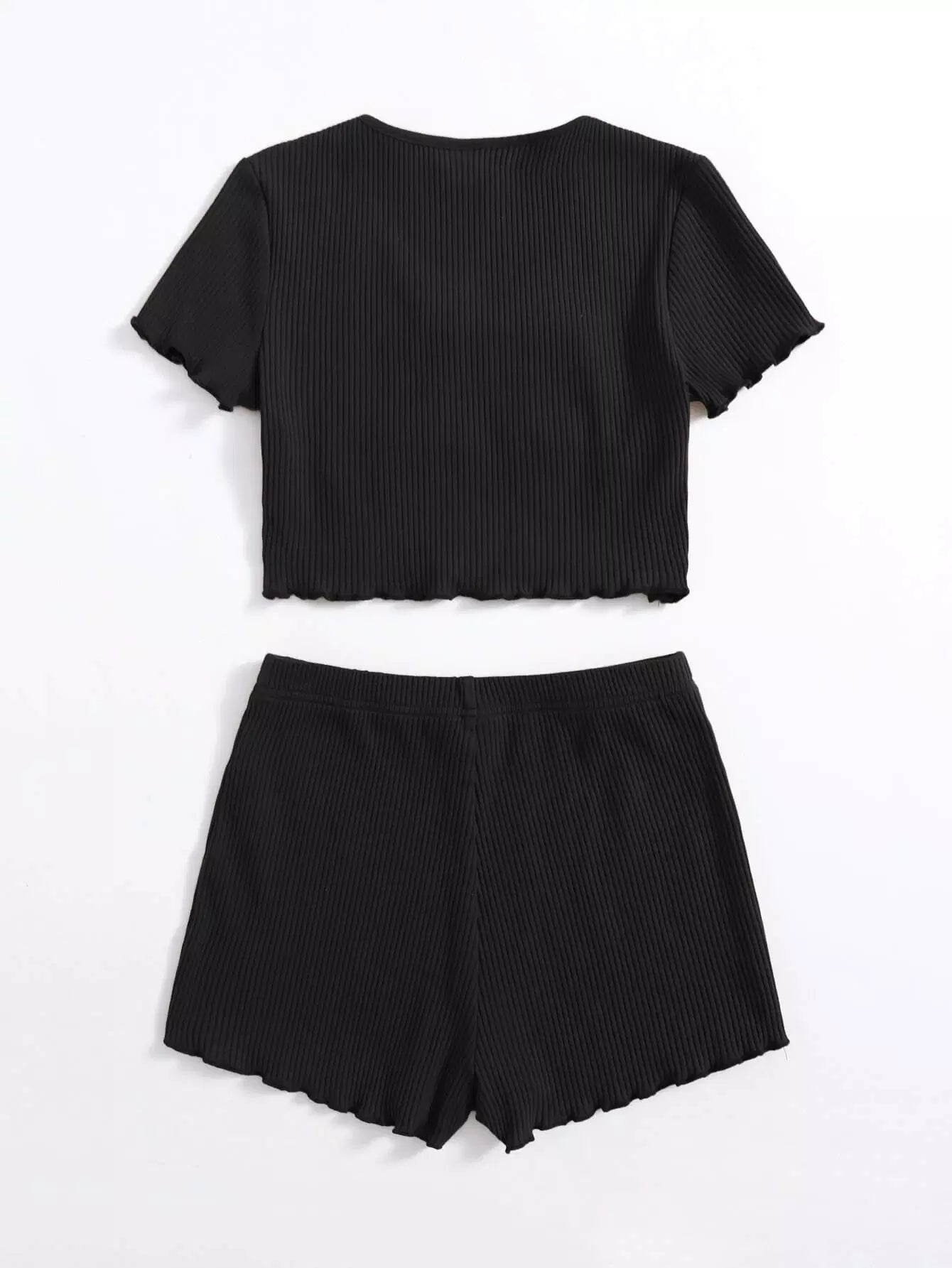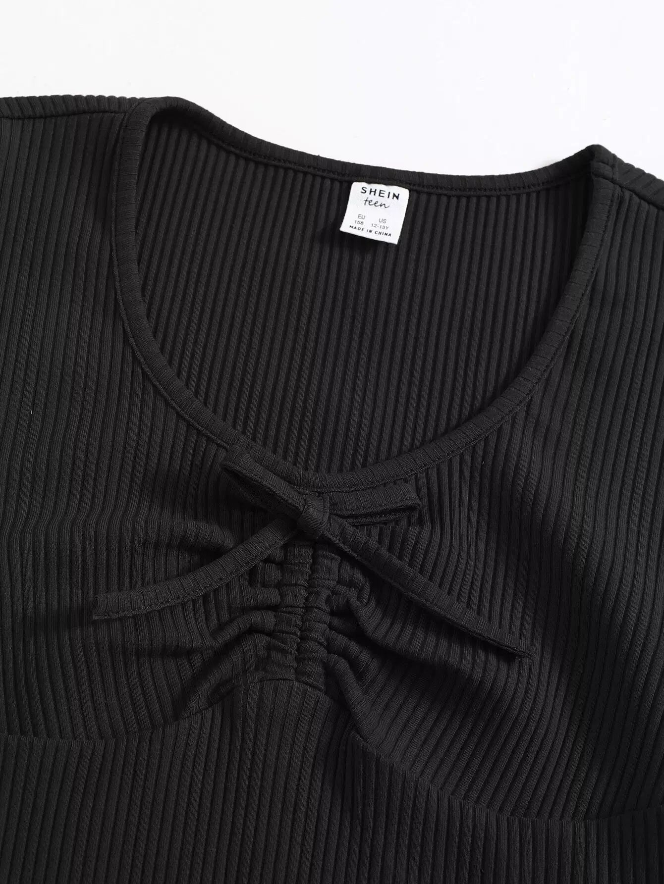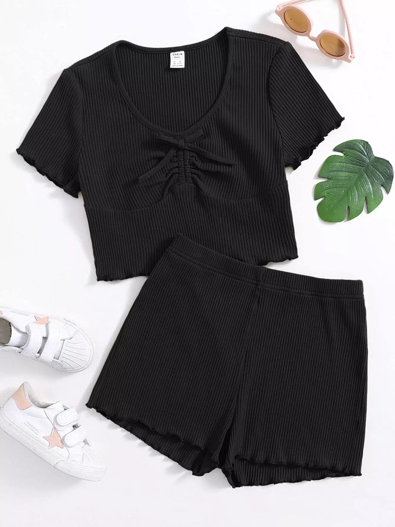 طقم تي شيرت وشورت رياضي برباط للفتيات المراهقات