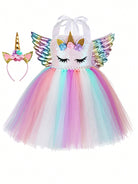 فستان منتفخ من التول لحفلات أعياد الميلاد على شكل يونيكورن للفتيات الصغيرات مع طبقة شبكية من الترتر، بما في ذلك عصابة الرأس