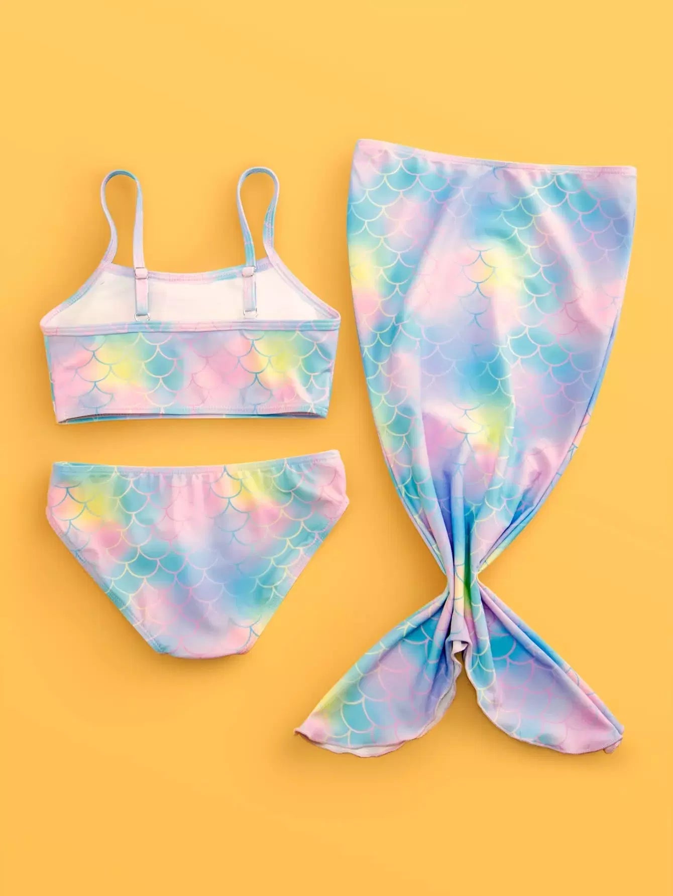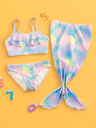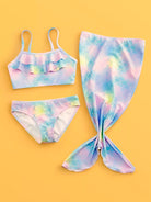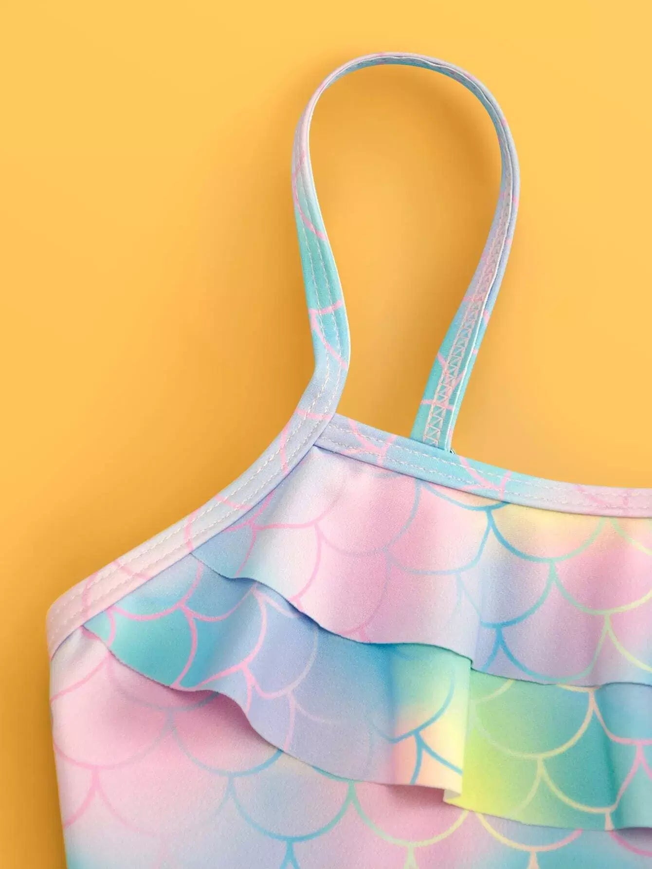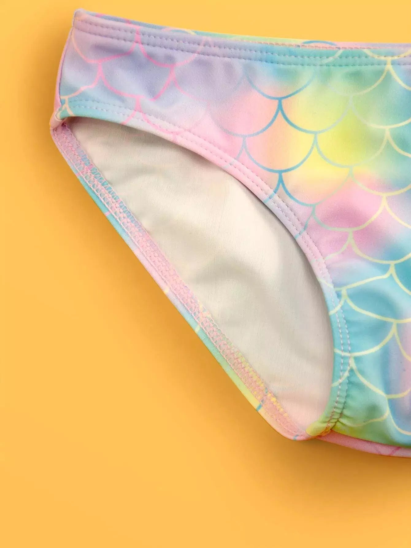 ملابس سباحة بيكيني بيكيني بكشكش من قشور السمك للبنات الصغيرات 3 عبوات