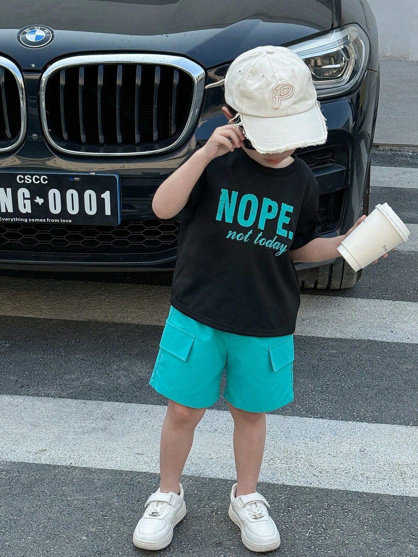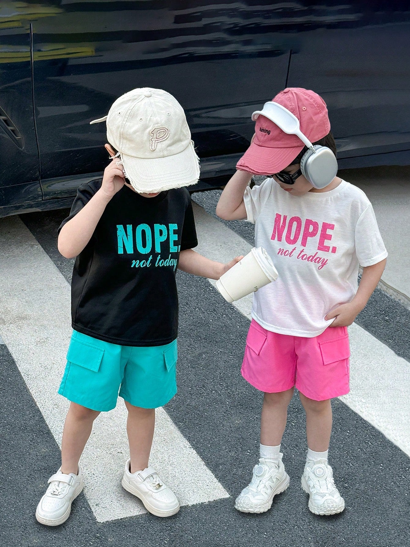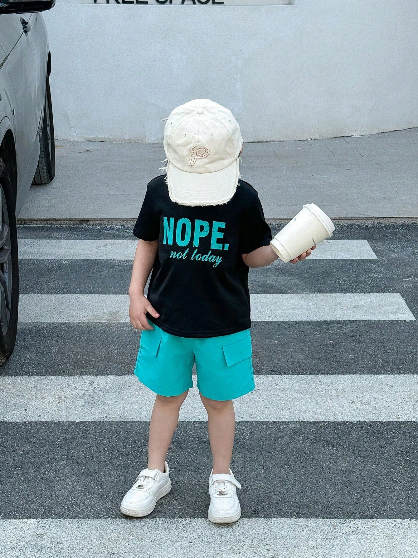 مجموعة ملابس أطفال من SHEIN مكونةمجموعة ملابس كاجوال لطيفة متعددة الاستخدامات بطباعة حروف جرافيكية، تتكون من تي شيرت فضفاض محبوك بأكمام قصيرة وشورت منسوج مريح، قطعتين