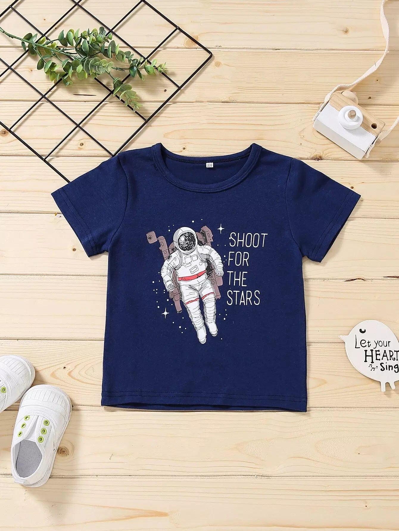 تي شيرت بطبعة رائد فضاء للأولاد الصغار مع تي شيرت بطبعة كاميرا