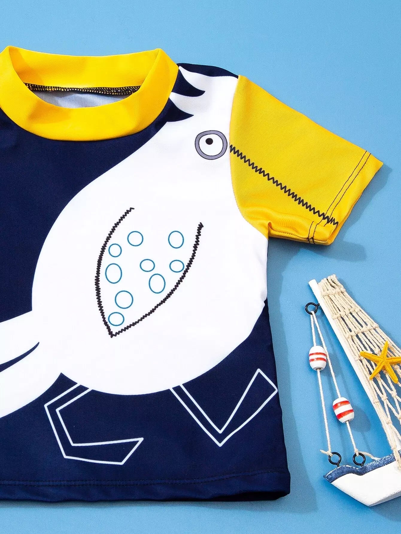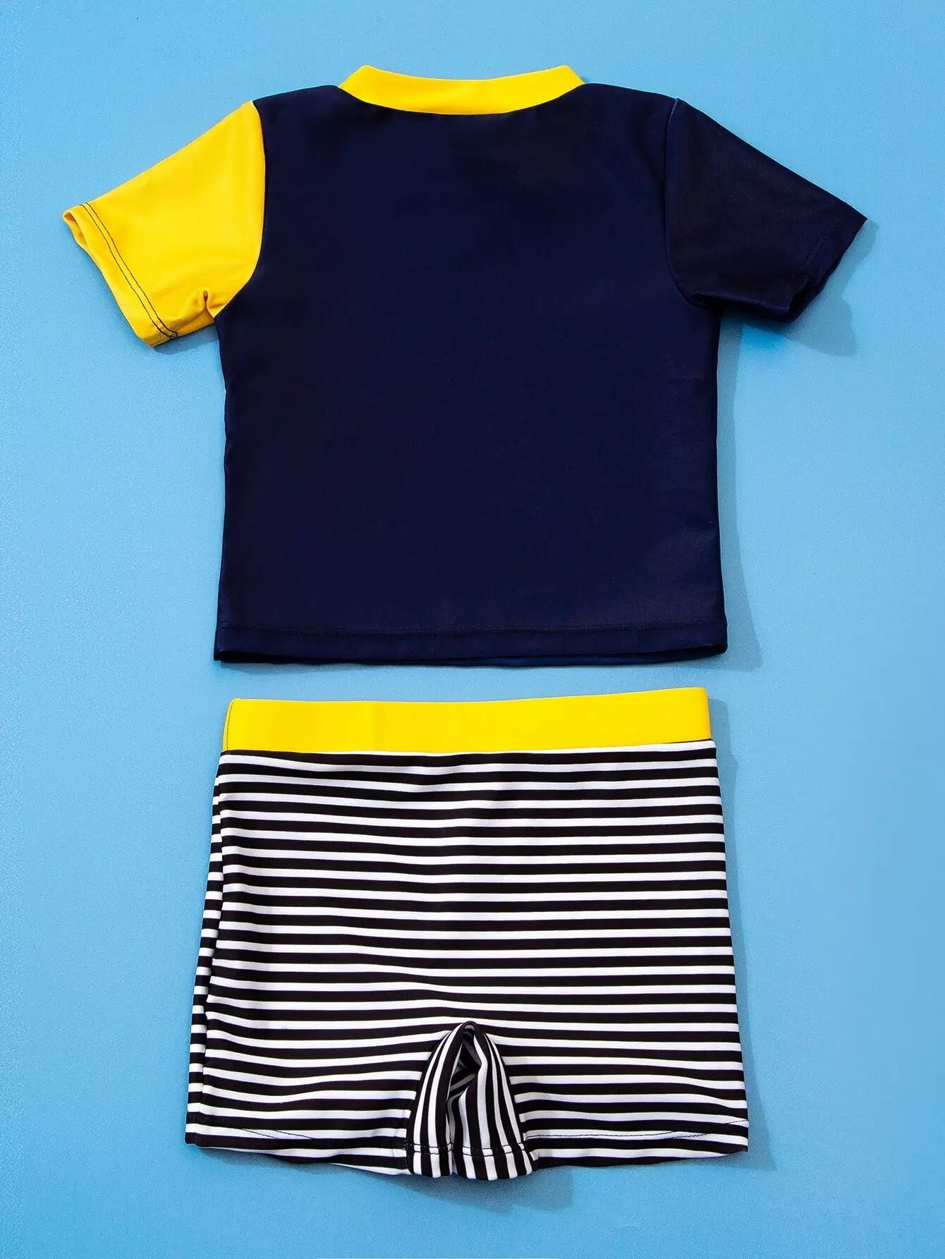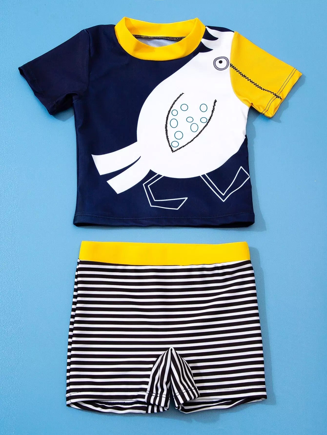 بذلة سباحة بقطعتين مخططتين بقطعتين للأولاد الصغار
