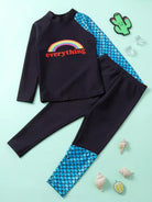 بدلة سباحة برسومات سمك وحروف للأولاد الصغار