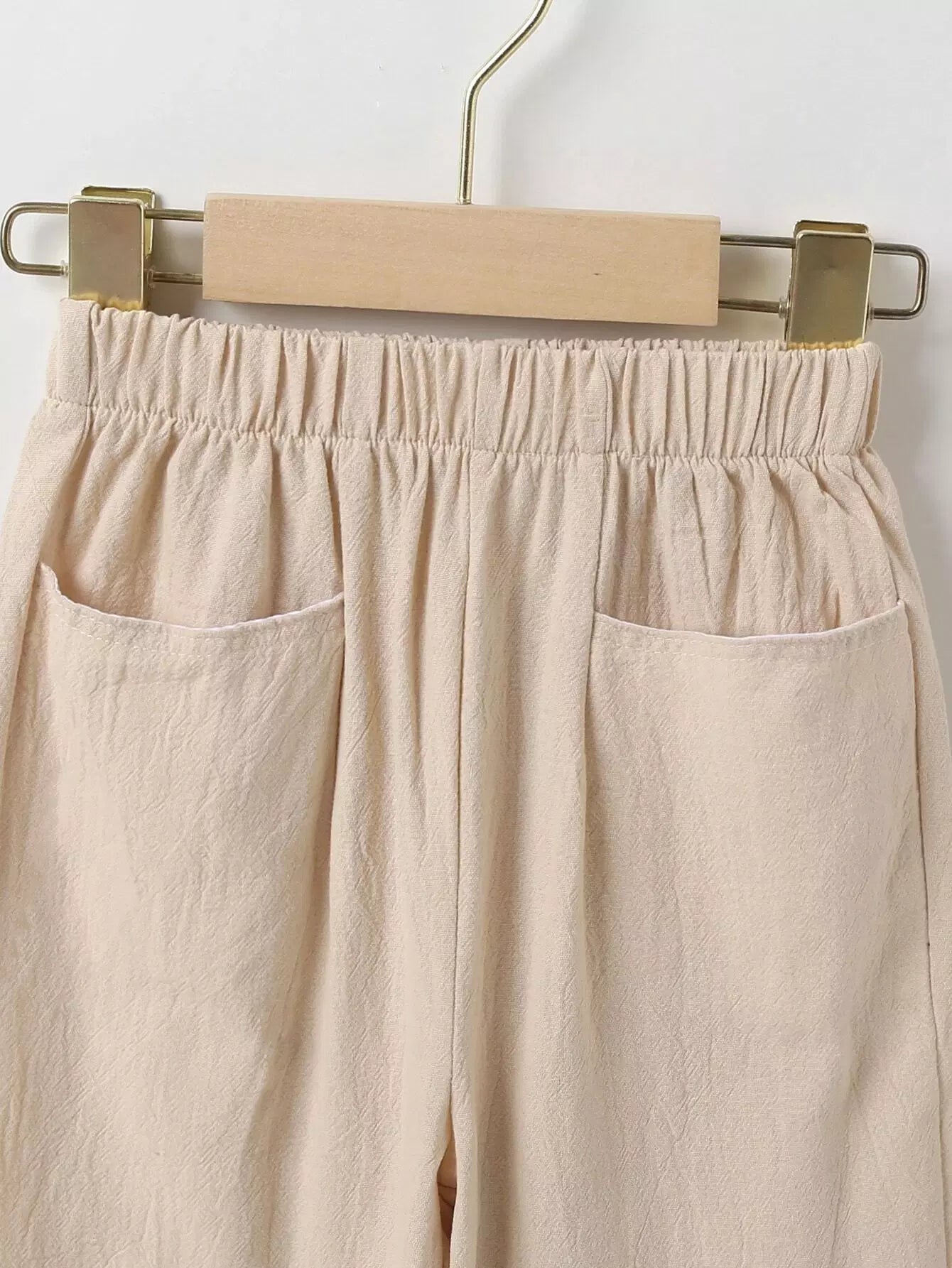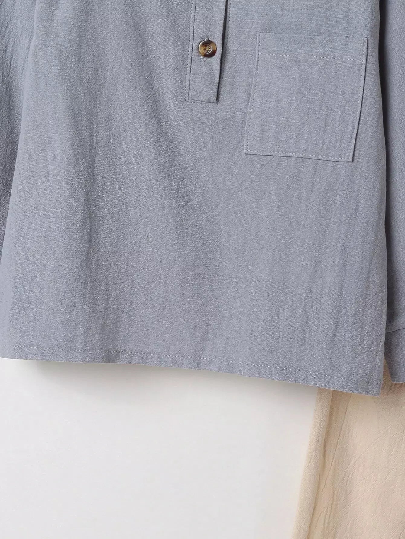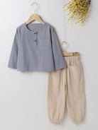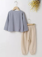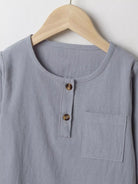 أطفال صغار بلوزة وبنطال رياضي مرقع بجيب بنصف زر للأولاد الصغار