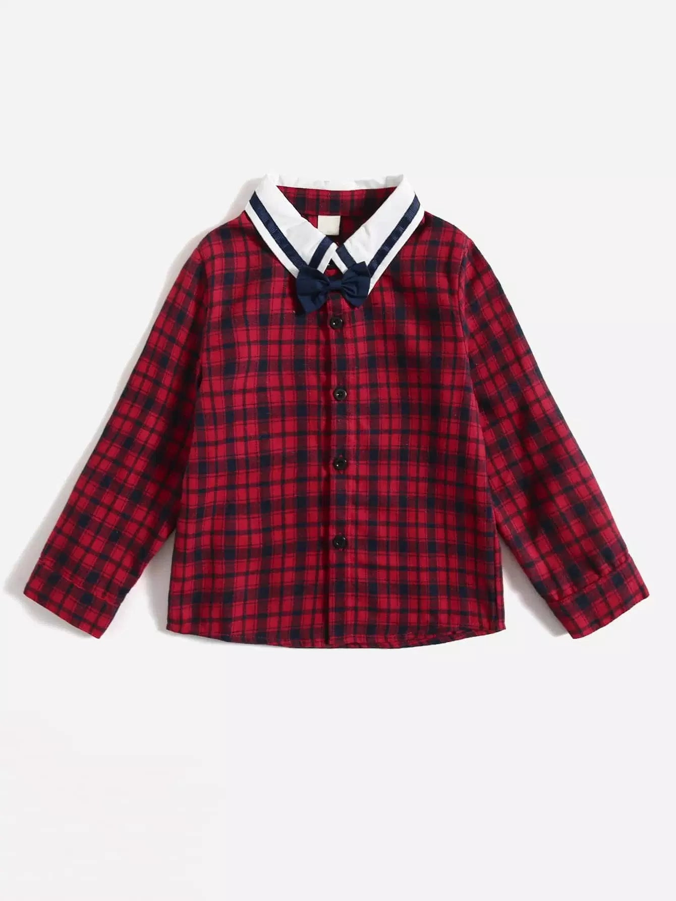 الأولاد الصغار قميص برقبة منقوشة بعقدة على شكل عقدة وأزرار أمامية
