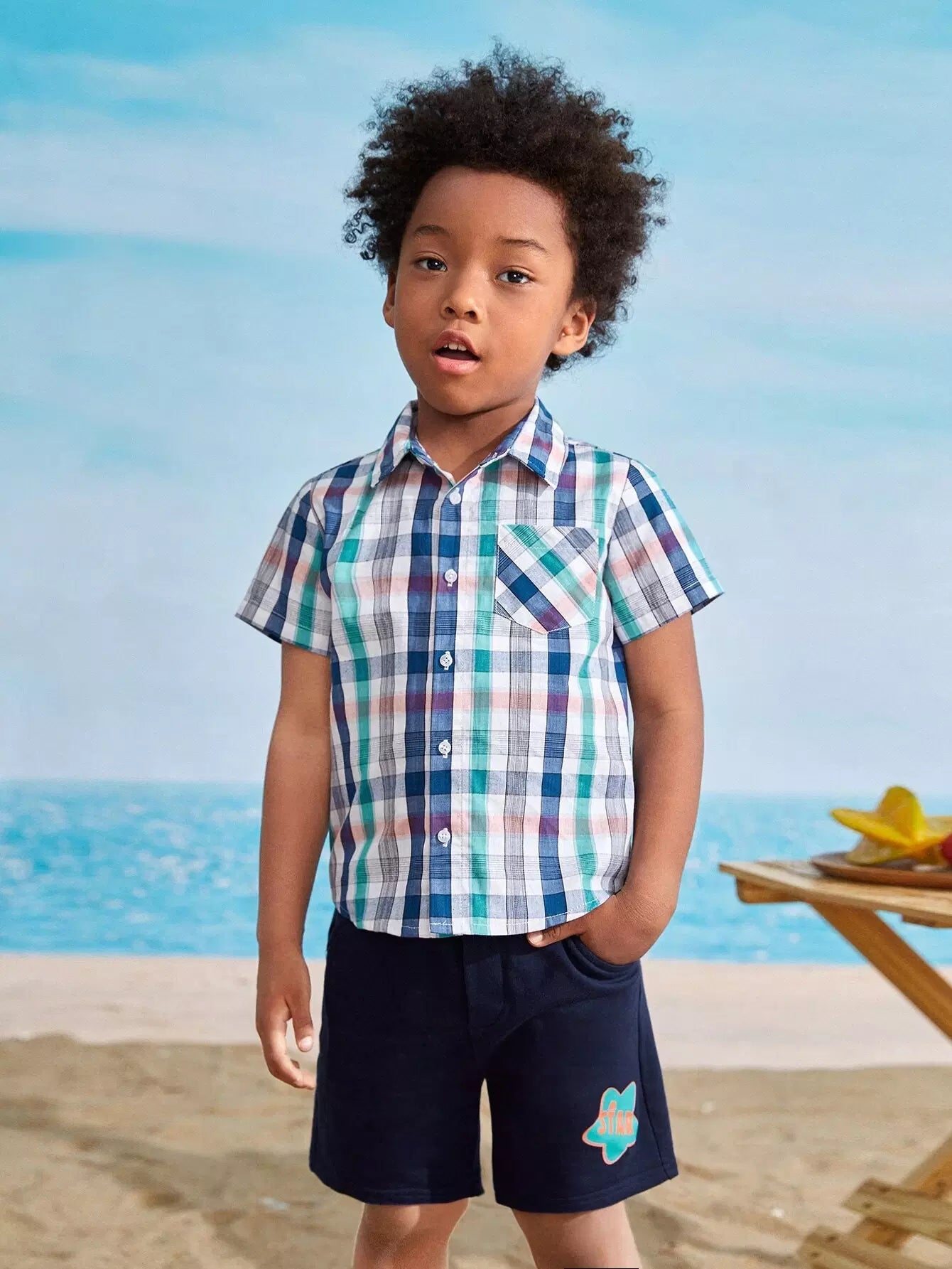 طقم قميص منقوش وشورت برسومات أحرف للأولاد الصغار