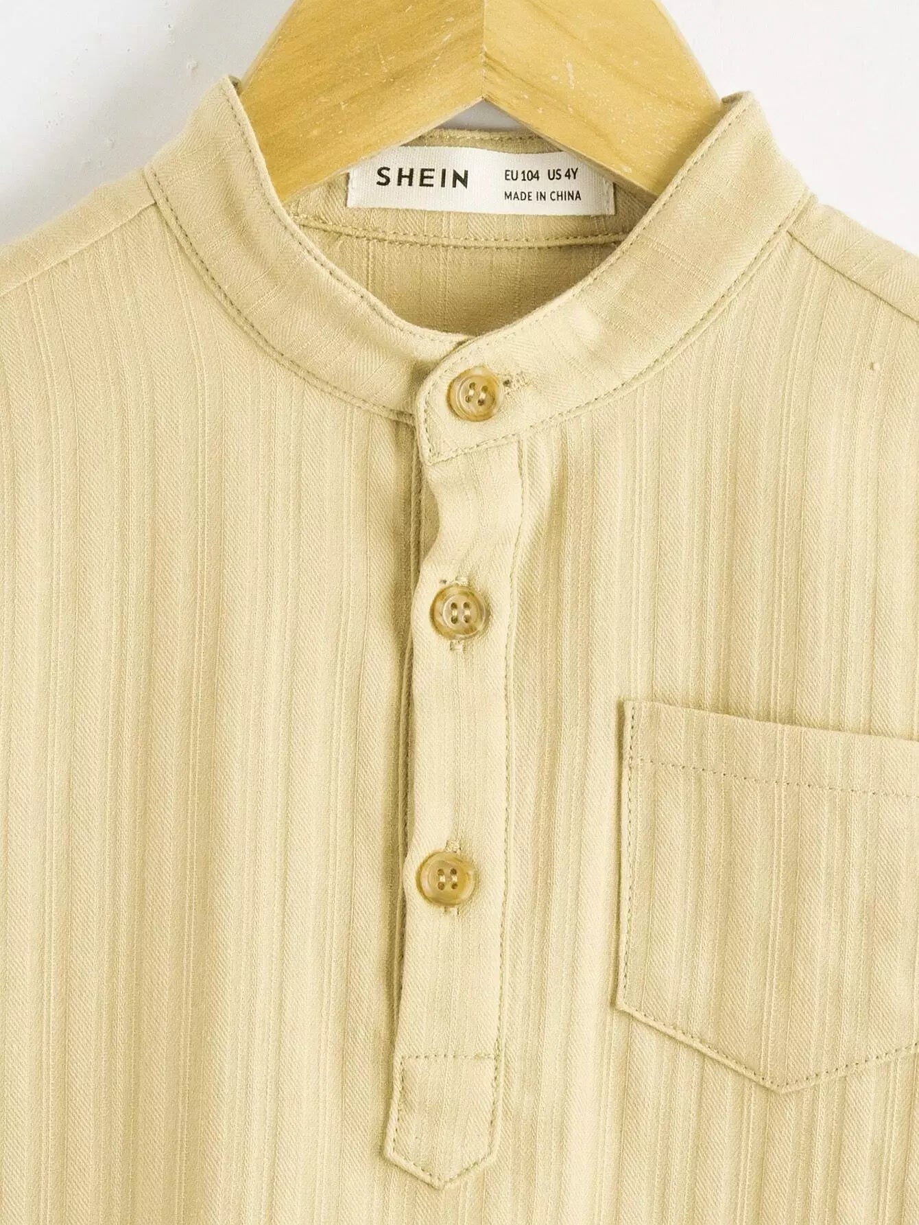 قميص بجيوب أمامية وأزرار بنصف صفيحة للأولاد الصغار