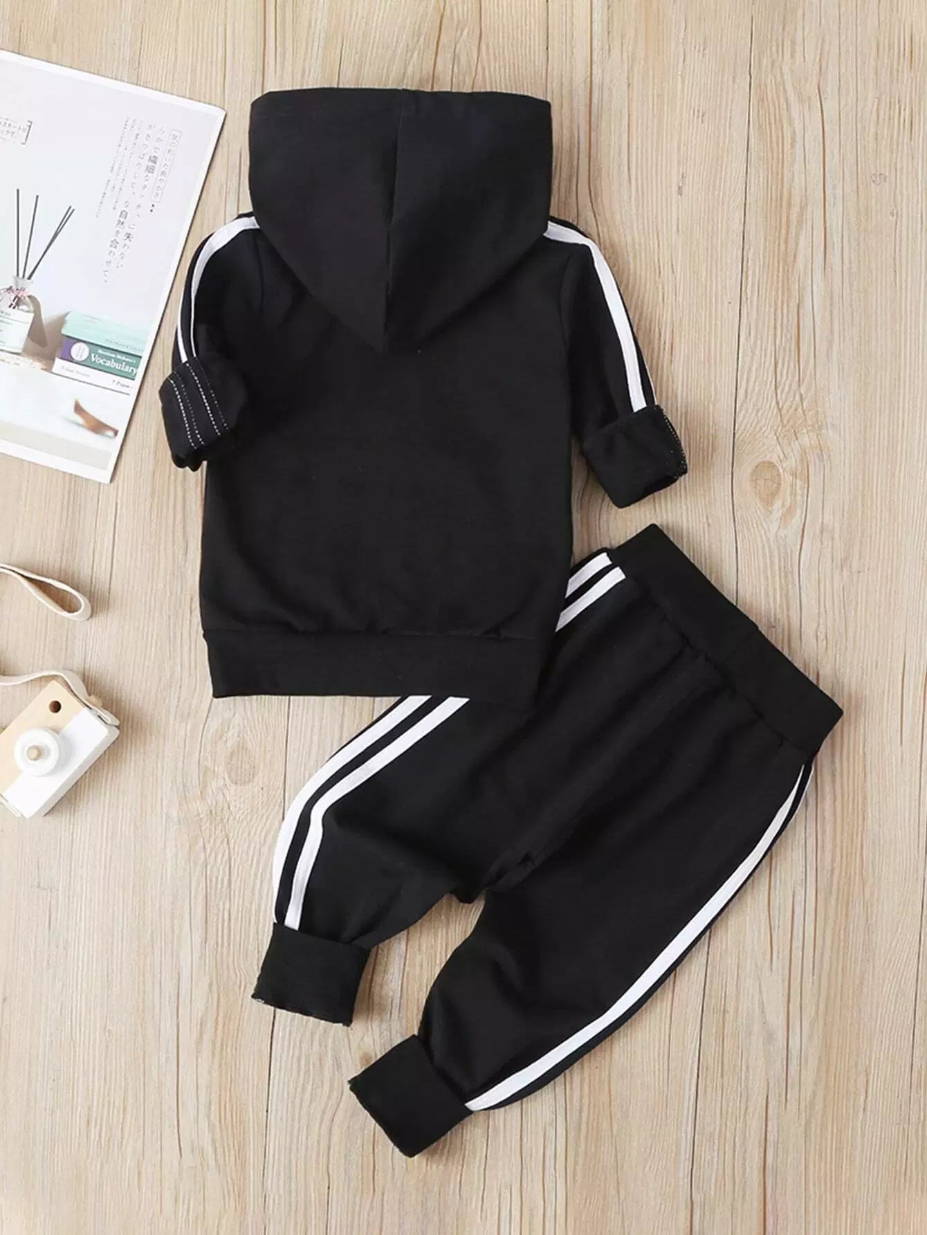 طقم بدلة رياضية بغطاء رأس مخطط جانبي للأولاد الصغار