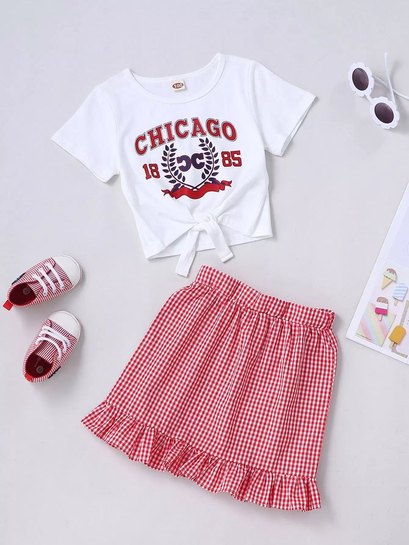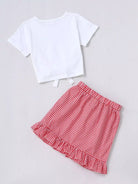 تي شيرت جرافيك برسومات طفلة صغيرة مع تنورة بحواف مكشكشة من القماش القطني