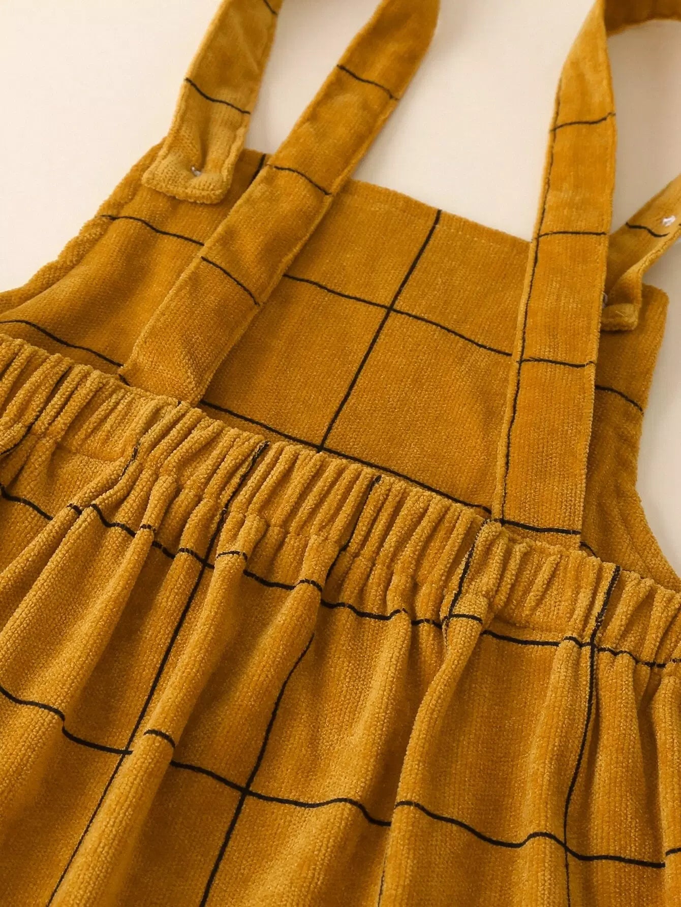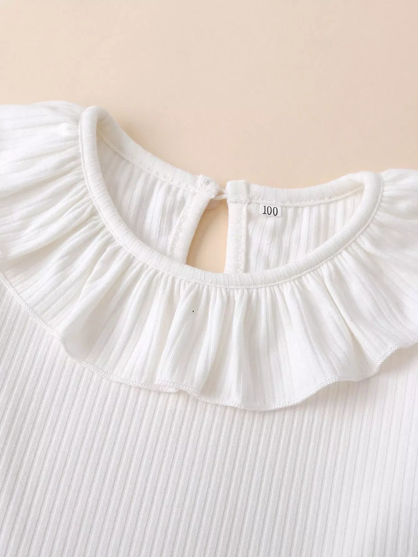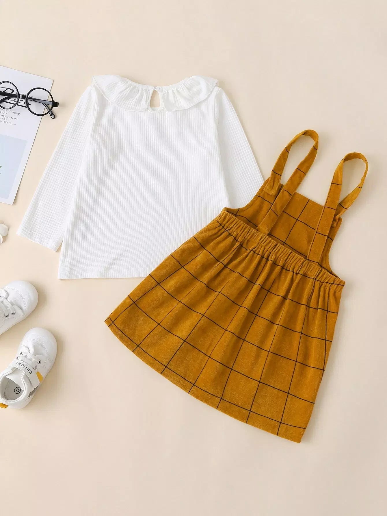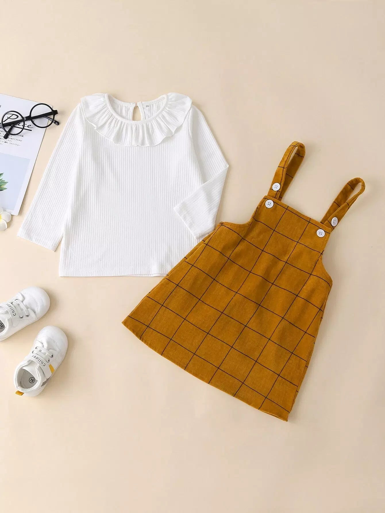 طقم تي شيرت بحواف مكشكشة للطفلة الصغيرة وفستان منقوش