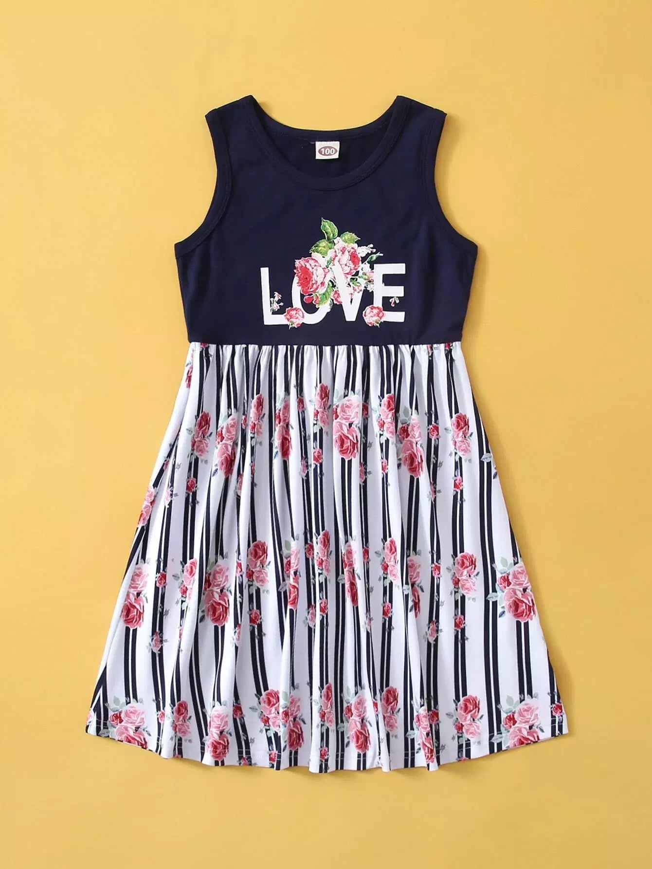 فستان بناتي صغيرات 1 قطعة برسومات زهور وحروف على شكل حرف A