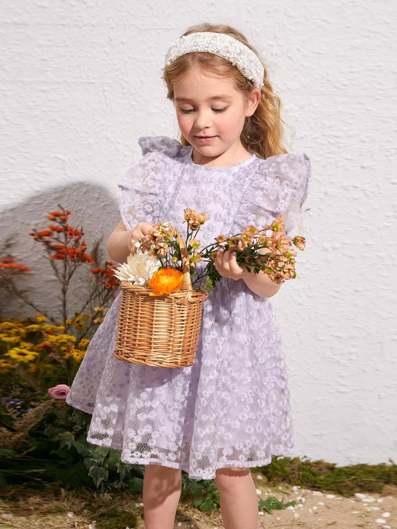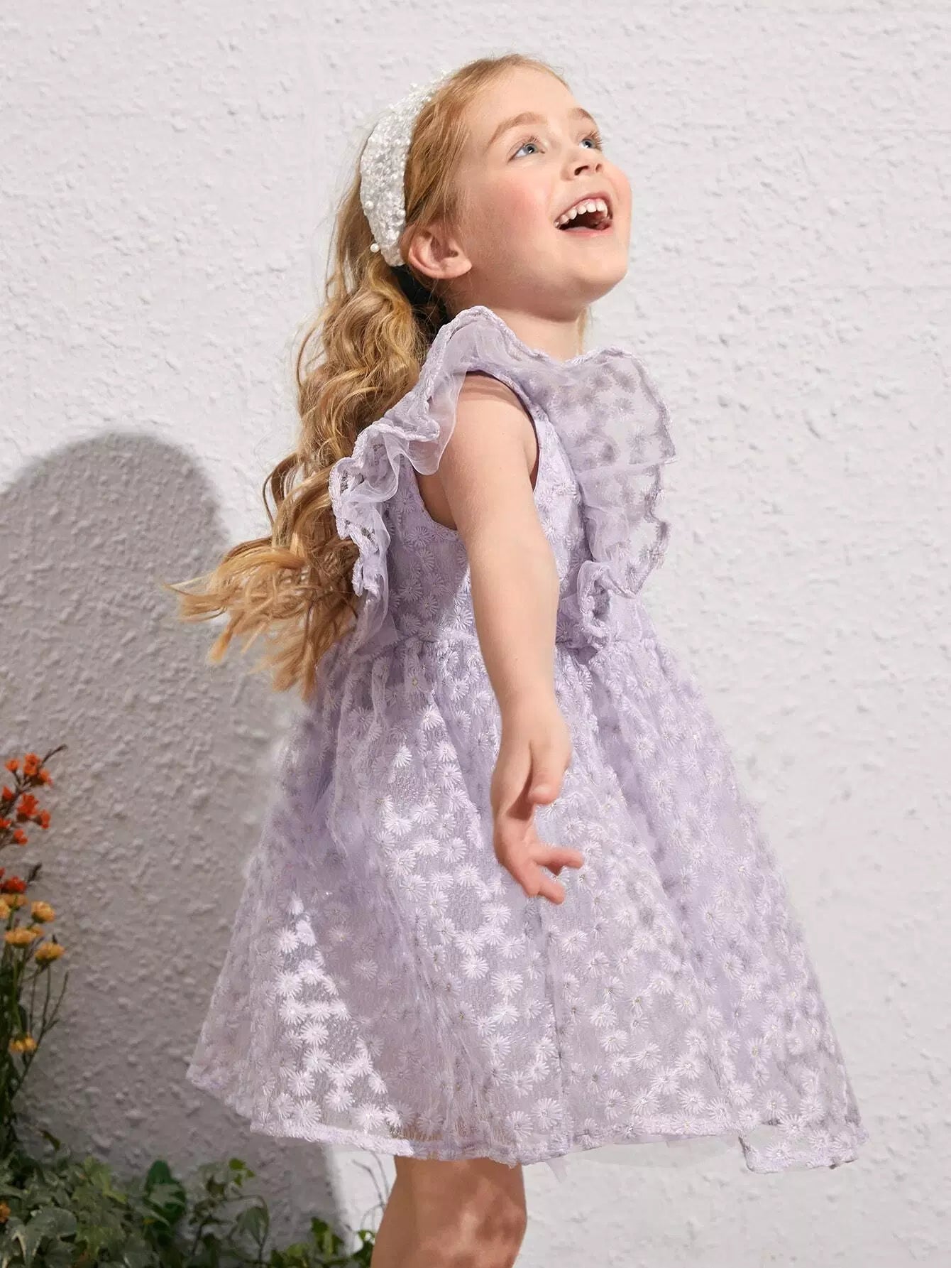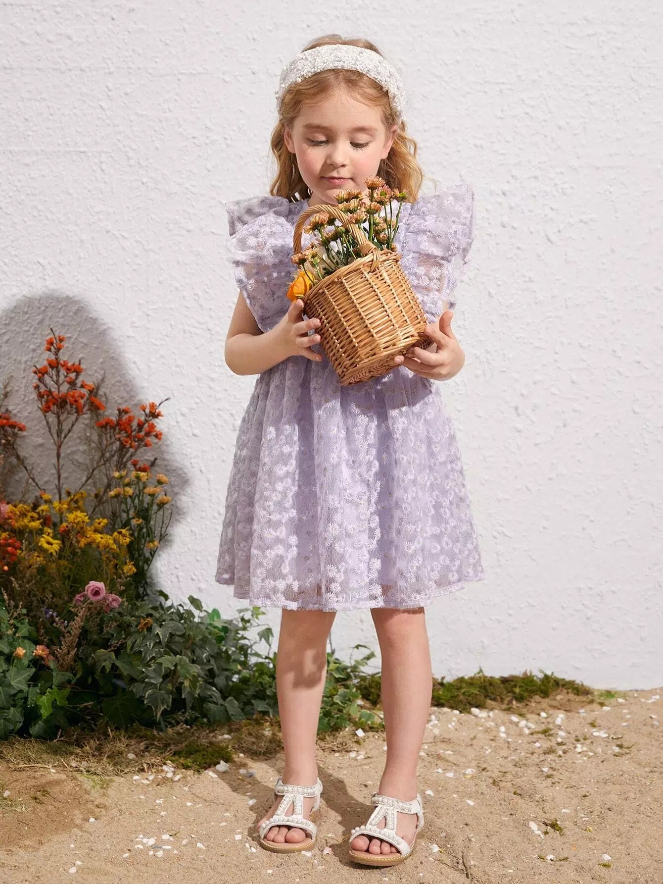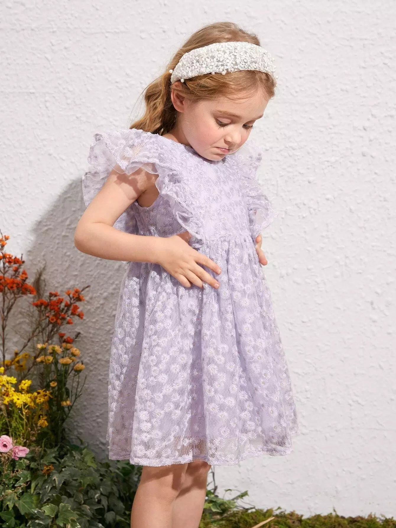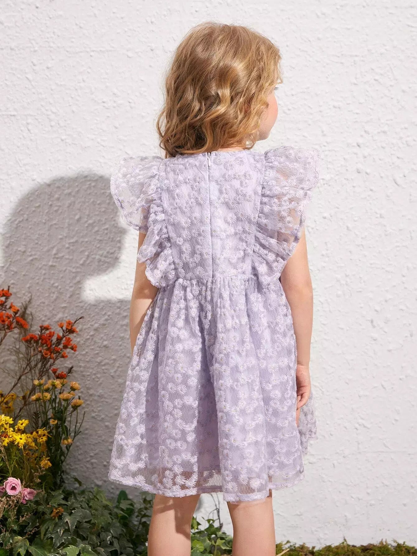 فستان بناتي صغير بطبعة زهور وأكمام فراشة وطبقة شبكية