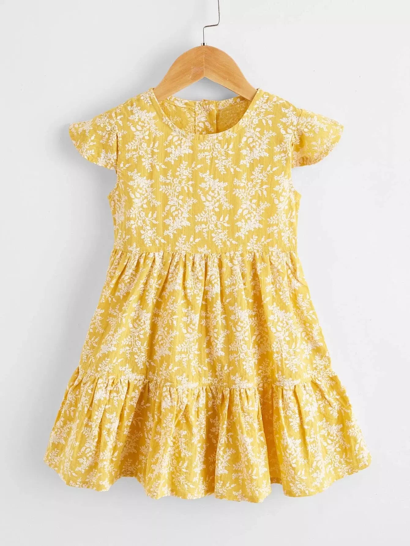 فستان بناتي صغيرات بطبعة نباتات بالكامل