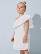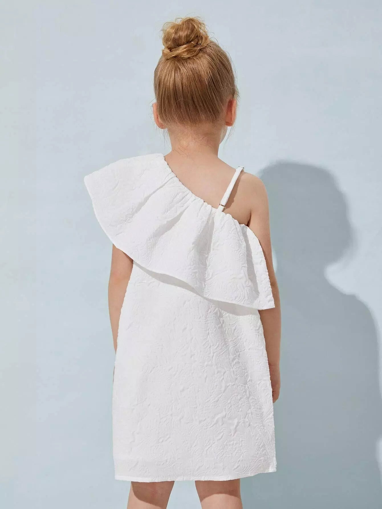 فستان جاكار بتفاصيل كشكشة ورقبة غير متماثلة للفتيات الصغيرات